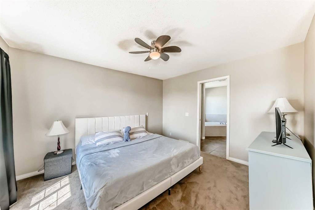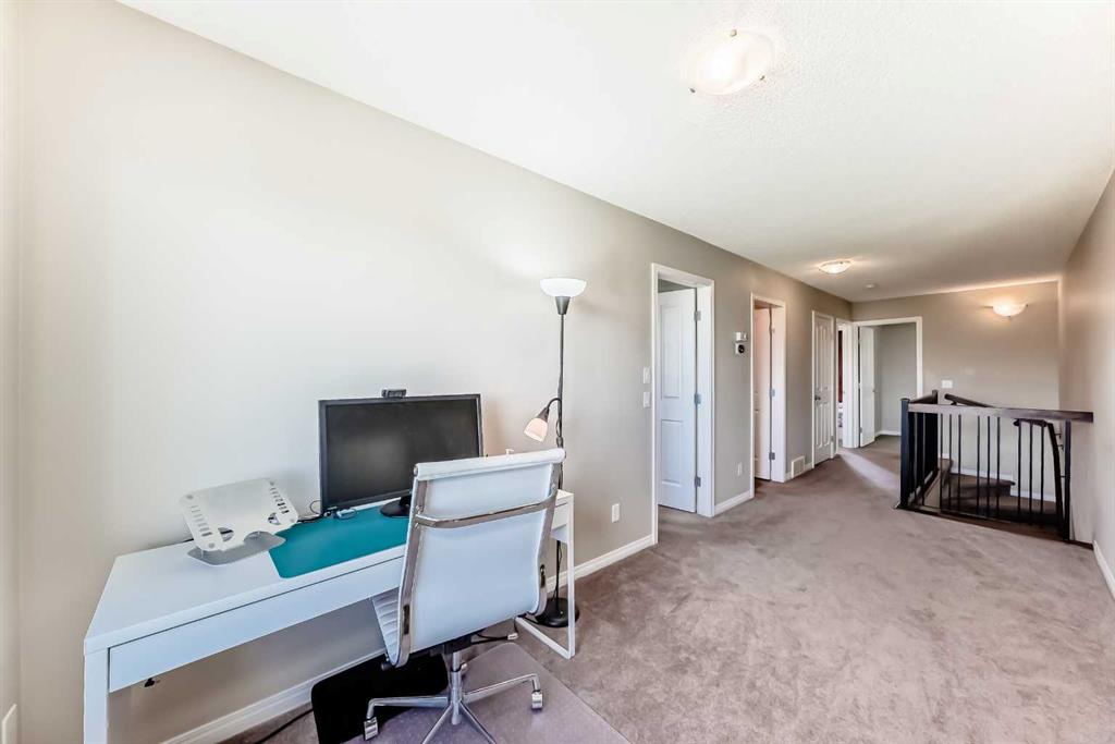 The open-to-below family room, anchored by a cozy fireplace, invites warmth and connection. Upstairs, a versatile loft and three bedrooms await, including a primary suite with walk-in closet and spa-inspired ensuite featuring a soaker tub. Newer carpet (2021) adds softness and comfort underfoot.