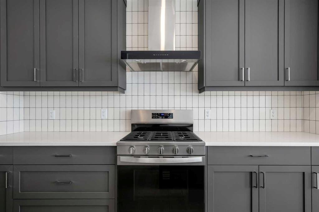 The main floor showcases an open-concept layout enhanced by expansive windows that fill the home with natural light while highlighting the carefully selected finishes throughout. The gourmet kitchen is designed to inspire culinary creativity and effortless entertaining, featuring quartz countertops, extended cabinetry with crown moulding, a built-in microwave, and a striking chimney hood fan that complements the contemporary aesthetic. The spacious dining area and great room connect beautifully, creating an inviting atmosphere ideal for hosting gatherings or enjoying quiet evenings at home.
