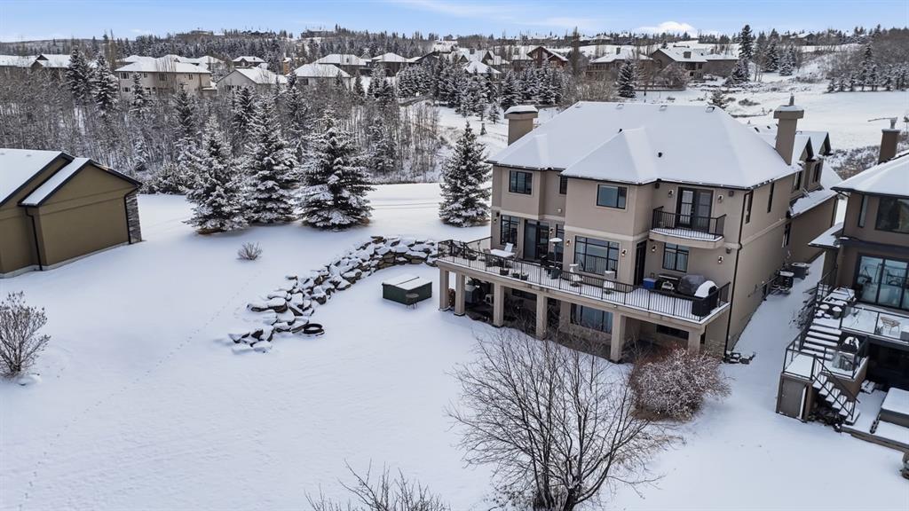 OPEN HOUSE Sunday April 5th 1-3pm! Welcome to 327 Rodeo Ridge in the prestigious golf course community of Springbank Links. This spectacular 7-bedroom estate home is nestled on a stunning private, treed lot, offering the rare combination of acreage-style privacy with significantly less upkeep, just minutes from Calgary. Thoughtfully designed across three fully finished levels, this exceptional home offers expansive and refined living space ideal for growing families and multi-generational living. The bright open-concept layout showcases rich hardwood flooring, elegant wrought iron railings, two gas fireplaces with stately mantles, and an abundance of natural light throughout. At the heart of the home is a beautifully situated gourmet kitchen featuring granite countertops, warm wood cabinetry, upgraded stainless steel appliances, and numerous built-ins. A convenient walk-through pantry connects seamlessly to the main living areas, while the bright breakfast nook overlooks the peaceful, private backyard. Entertain effortlessly in the formal dining room, gather in the inviting living spaces, or host guests at the main-floor wet bar. A main floor den provides the perfect setting for a private home office. Upstairs, the home offers four spacious bedrooms, including a luxurious primary retreat complete with a spa-inspired 4-piece ensuite featuring a jetted tub. Dual laundry areas on the upper and lower levels provide added everyday convenience. The fully developed walkout basement further enhances the home’s versatility, featuring a complete mother-in-law suite (illegal), two additional bedrooms, and generous living space—perfect for extended family, guests, or independent living arrangements. Additional highlights include a heated triple-car garage, quality craftsmanship throughout, and a mature, beautifully treed setting that offers exceptional privacy, fully landscaped with Hot Tub and Fire pit. Located in the highly sought-after Springbank Links community, residents enjoy championship golf, a pickleball court, year-round dining, and winter trail networks for walking, jogging, and cross-country skiing, all within the neighborhood. Families will appreciate the close proximity to Springbank Schools (K–12) with bus service available. Springbank High School was ranked in the top 5% of Alberta high schools by the Fraser Institute in 2024, making this an outstanding location for families focused on academic and athletic excellence. Just minutes away, Bingham Crossing offers convenient shopping, dining, and everyday services, while downtown Calgary remains an easy commute, allowing you to enjoy peaceful estate living without sacrificing city accessibility. This is a rare opportunity to own an elegant estate home in one of Springbank’s most prestigious golf course communities—where privacy, lifestyle, and convenience come together beautifully.