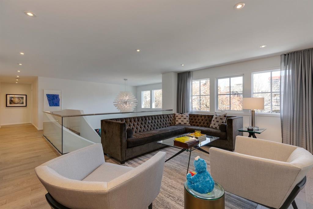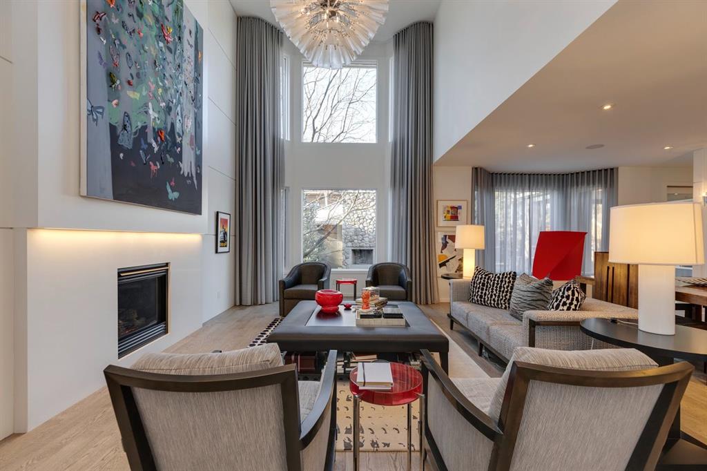 Completely renovated and carefully transformed by Paul Lavoie, this warm modern home delivers refined living on an incredible “rare find” 60′ west exposed lot that sides onto green space. Nestled in a community that feels like an inner-city village of Kensington, the residence blends masterful design with an unbeatable setting. Boasting exceptional curb appeal with a manicured landscape, paver walkway, and mature trees, this home welcomes you with a charming front porch creating an ideal spot to greet friendly neighbours and enjoy the warmth of the community. Inside, sophistication unfolds with pristine hardwood floors, soaring ceilings, and a dramatic curved staircase that sets the tone for the home’s elevated design. The living room is anchored by full-height, two storey windows and a gas fireplace, bathing the space in natural light. A private main floor office with a built-in Murphy bed adds versatility, while the expansive formal dining room is designed for gatherings large and small, and opens up to a covered patio, seamlessly blending indoor and outdoor entertaining. The well appointed kitchen is a showpiece of modern elegance, featuring sleek white cabinetry, quartz countertops, a panelled Miele fridge and dishwasher, built-in double wall ovens, Dacor gas cooktop, and a stylish backsplash. A butler’s pantry connects with the mudroom and offers added storage for culinary enthusiasts. The adjoining informal dining area and family room with a second gas fireplace create a warm, connected space for everyday living. Upstairs, the curved staircase leads to a spacious bonus room, convenient laundry, and three generous bedrooms, each with its own ensuite. The luxurious primary suite impresses with vaulted ceilings, a custom walk-in closet, and a lavish 6pc ensuite complete with a deep soaker tub and glass enclosed shower. The lower level continues the theme of comfort and style, offering plush carpeting, a striking three-way stone gas fireplace, media and games areas, a guest bedroom, full bath, and an expansive flex room perfect for a home gym. Additional utility and workshop space provides practicality without sacrificing elegance. The west facing backyard is an entertainer’s dream, featuring a sports court, massive patio with a wood burning fireplace, built-in BBQ, and abundant space to gather with friends and family. A triple-car garage completes this exceptional property. All of this is just steps away from Kensington’s vibrant shops and restaurants, the C-Train, SAIT, river pathway system, and convenient access to downtown. A rare blend of community charm, modern sophistication, and timeless elegance, this home offers an unparalleled lifestyle in one of the city’s most desirable locations.