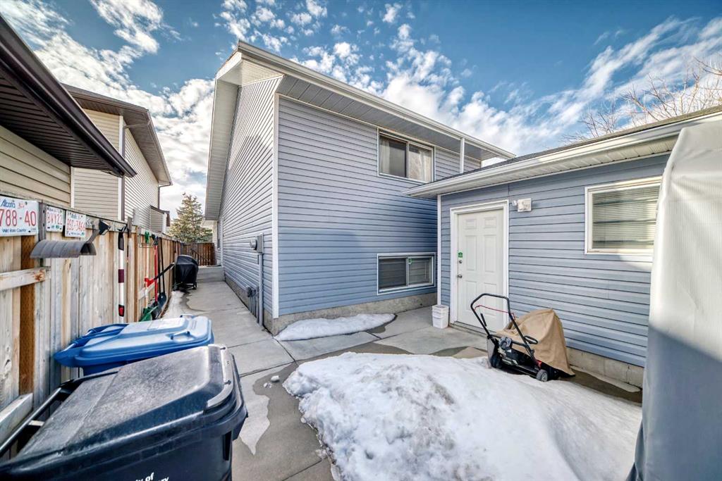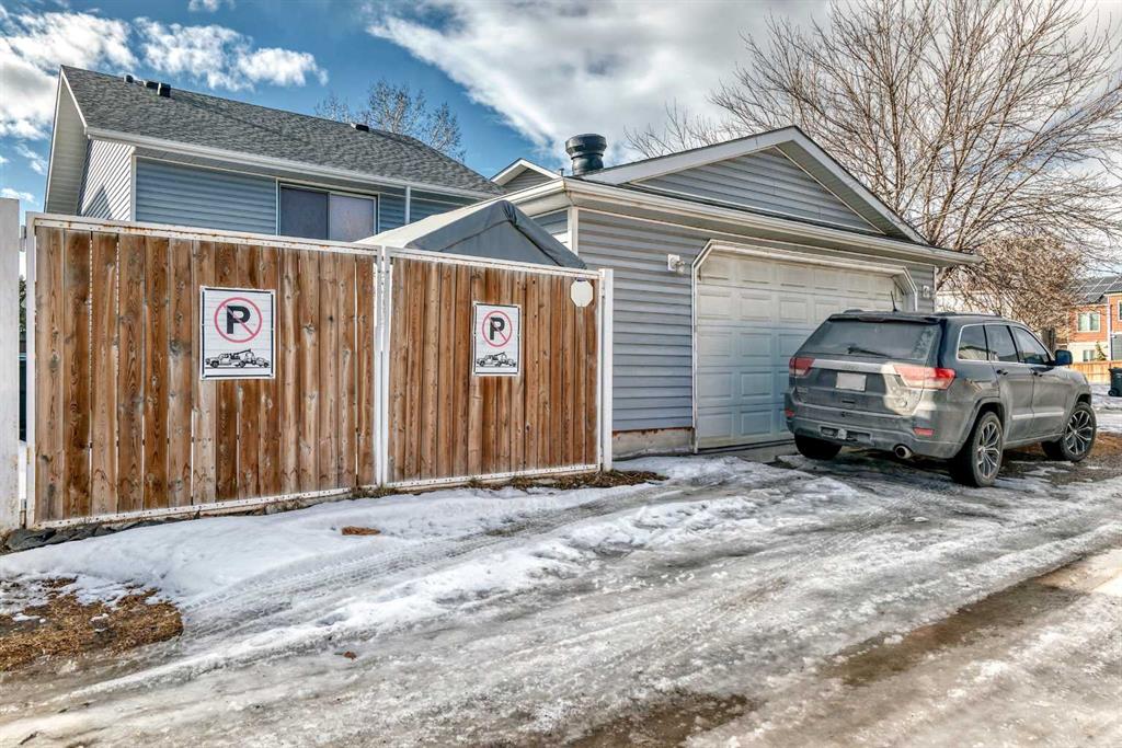 Welcome to this well-maintained 4-level split, 3 bedroom, 2.5 bath, located in the established community of Martindale and within walking distance to both the Geneisis Centre and the Dashmesh Culture Centre! 1483 of finished/liveable space on 3 levels +382 sq ft in the basement, which can easily be transitioned into a 4th bedroom. 499 sq ft of crawl space. Situated on a large pie-shaped lot with rear lane access, this property offers exceptional space, functionality, and parking options—perfect for large families, hobbyists, or anyone needing extra room for vehicles and toys. This home has seen several important updates, including central air conditioning (2017), hot water tank (2018), furnace (2020), siding (2020)and roof shingles (2020), giving buyers peace of mind and added value. There is a roughed in Central Vacuum system. New owner can take over the existing Telus Security system including a doorbell camera. The main floor features a bright and inviting living room filled with natural light, flowing into the dining area and kitchen, creating a practical layout for everyday living and entertaining. The upper level offers two comfortable bedrooms, 1 and a half bathrooms, providing a functional space for family living. The lower levels provide additional developed living space, ideal for a family room, recreation area, home office, or gym, along with a convenient 3rd bedroom and full bathroom. One of the standout features of this home is the oversized 23’4″ x 19’3″ heated detached garage, both ceiling heater and infloor heating, offering plenty of room for vehicles, storage, or a workshop. The spacious pie-shaped backyard also includes space for an RV parking pad, making it perfect for outdoor enthusiasts or those needing additional parking. Conveniently located close to schools, parks, shopping, public transit, and easy access to major routes and the Calgary International Airport, this home offers both comfort and convenience in a family-friendly neighborhood. Don’t miss this opportunity to own a spacious 4 level split home with an oversized garage and plenty of yard space in one of northeast Calgary’s most accessible communities. Book your private showing today!