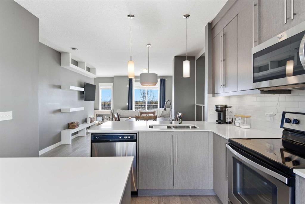 Like new townhouse condo with a smart, functional layout and high ceilings throughout. This unit offers 2 primary suites, each with its own 4-piece ensuite — ideal for roommates, guests, or shared living. The main level features a flex room that works well as a home office, gym, or additional bedroom. The second level has an open floor plan with a large centre island, quartz countertops, and plenty of cabinet and counter space. Bright and practical for everyday living and entertaining. Double attached garage provides secure parking and extra storage. Excellent location backing directly onto the canal with immediate access to the walking paths that run along the water and wrap around the south end of Chestermere Lake.