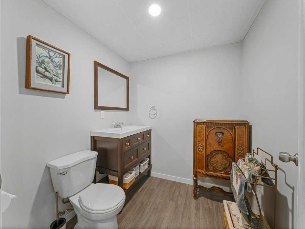 Upstairs, retreat to the spacious primary bedroom, where large south-facing windows flood the room with natural light. The spa-inspired ensuite impresses with a dual-sink vanity, deep soaker tub, walk-in shower and private water closet. Two additional nicely-sized bedrooms, a 4-piece bath, and a large linen closet round out the upper floor. The fully finished basement adds exceptional versatility with a large recreation/games/media room, an additional bedroom, abundant storage and a 3-piece bathroom—perfect for guests, teens, or a home office setup. Step outside into a sunny, fully-fenced private backyard designed for easy entertaining, featuring a deck and thoughtful landscaping. The garage is drywalled and insulated, wired for 220V (plug is behind the deep freeze), and is ready for electric or radiant heat—plus it’s deep enough to accommodate a truck. There’s also room to park a vehicle or small RV beside the garage. The high-efficiency furnace and 50-gallon hot water tank were both professionally serviced in January 2026 and carpets professionally cleaned. This well maintained, move-in ready home offers comfort, functionality, and an unbeatable park-side location—perfect for families, outdoor enthusiasts, or anyone seeking small-town living with modern conveniences. Check out the **virtual tour** and come see experience it with your favourite realtor.