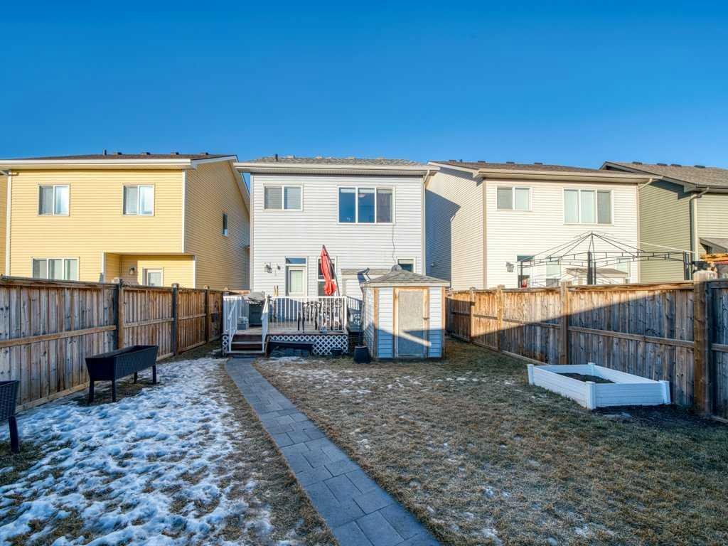 Welcome home to this charming, fully finished 2-storey with a covered front porch, perfectly situated across from Amery Park in the quiet, family-friendly town of Crossfield. Enjoy front-row access to the playground, outdoor rink (winter hockey / summer basketball), fire pit, community gardens and nearby storm-water ponds with scenic walking and cycling paths that lead into town. Inside, the open-concept main floor has a clean, contemporary palette and is bright and inviting, featuring high ceilings, durable laminate flooring, and a cozy gas fireplace anchoring the living room. The white island kitchen offers quartz countertops and stainless appliances—ideal for everyday living and entertaining alike. A convenient laundry/mudroom and 2-piece powder room complete the main level.