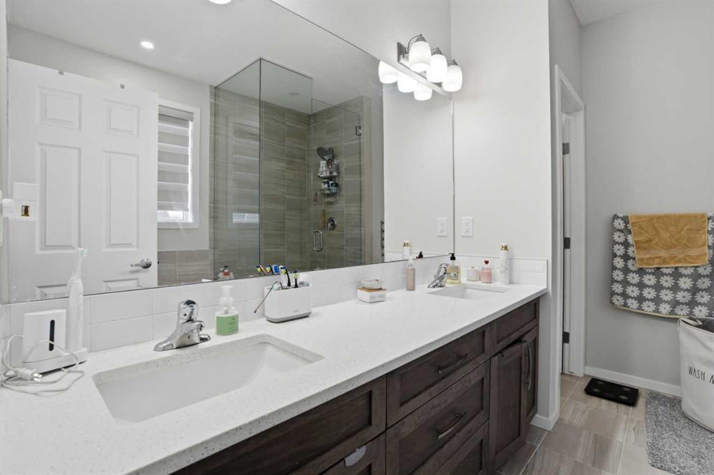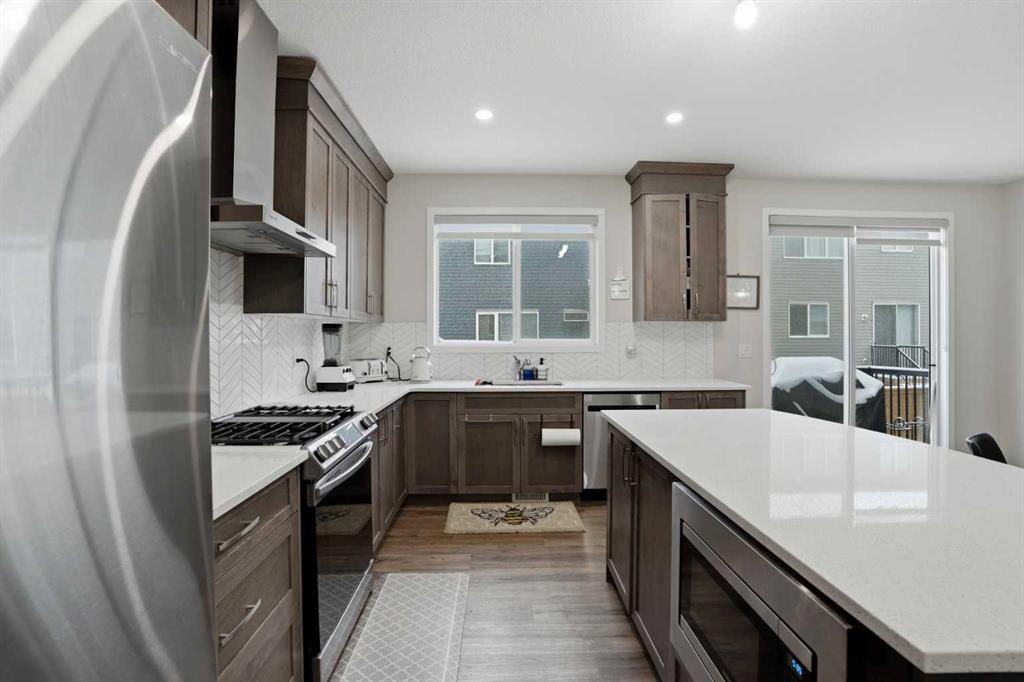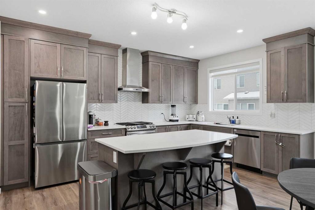 * 1 Bedroom Basement Suite(illegal) * | Gorgeous Family Home | Main Level Office | Spacious Open Floor Plan | Sparkling Kitchen | Quartz Countertops | Stainless Steel Appliances | Herringbone Backsplash | Full Height Cabinets | Kitchen Island with Barstool Seating | Pantry | Large Windows | Ample Natural Light | Gas Fireplace | Level 2 Family Room with Extended Ceiling Height | 4 Upper Level Bedrooms & 2 Bathrooms | Upper Level Laundry | Basement Open Floor Plan Kitchen & Rec Room | Sizeable Bedroom | 3pc Bath | Great Storage | West Facing Backyard | Deck | Front Attached Double Garage | Driveway | Great Location | Quick Access to Stoney Trail. Welcome to this beautifully designed family home in the desirable NW community of Carrington, offering 2,682 SqFt RMS of thoughtfully designed living space plus a fully developed basement with an illegal suite—providing flexibility for extended family or potential rental income. With a total of 5 bedrooms and 3.5 bathrooms, this home combines modern style with functional family living.
