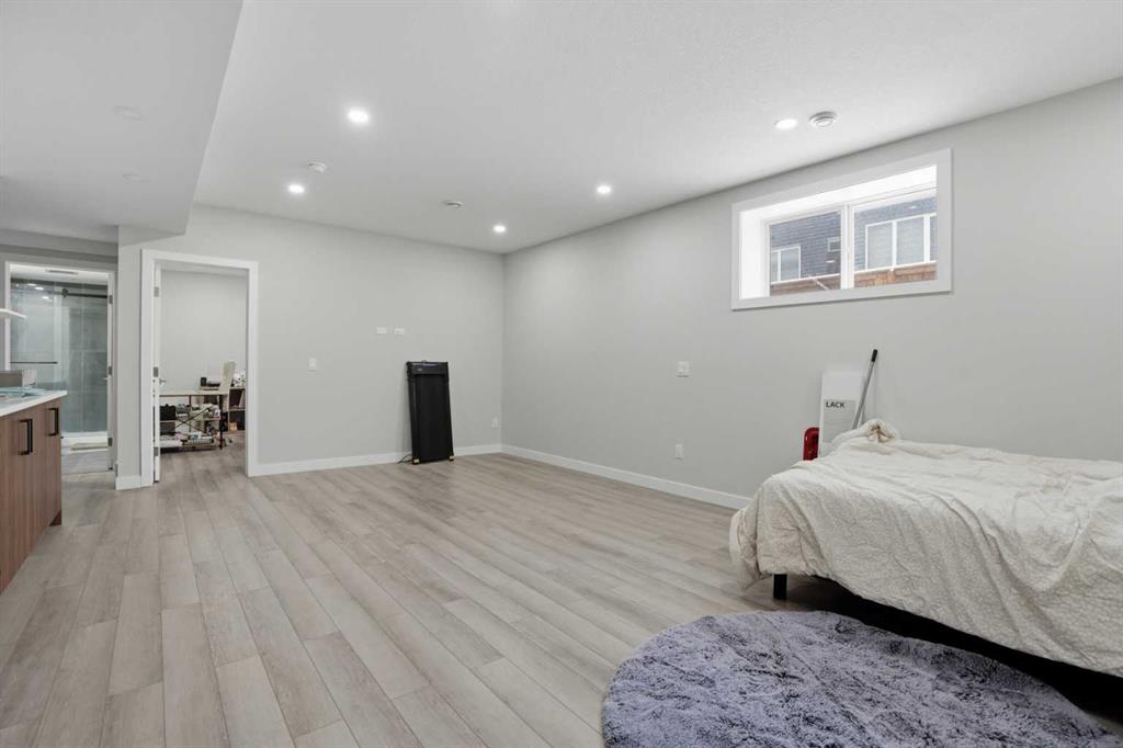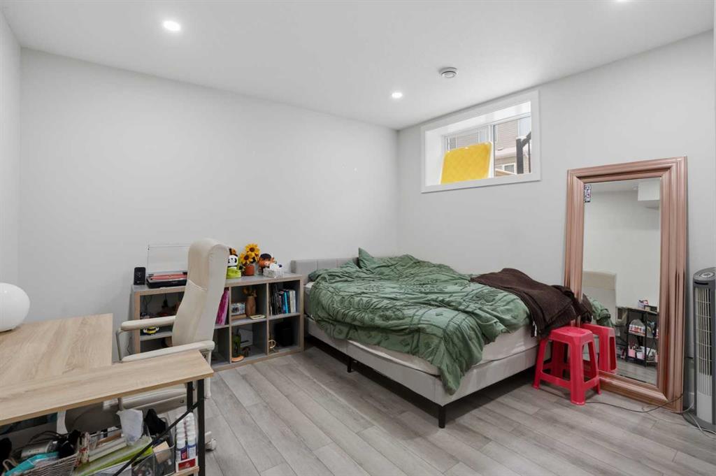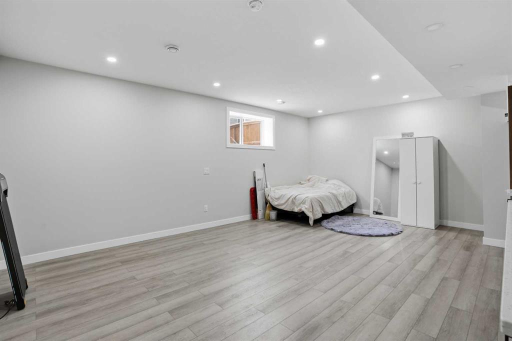 The fully developed basement features an illegal suite with an open-concept kitchen and recreation room, a sizeable bedroom, a 3-piece bathroom, and great storage, offering a comfortable and functional living area.