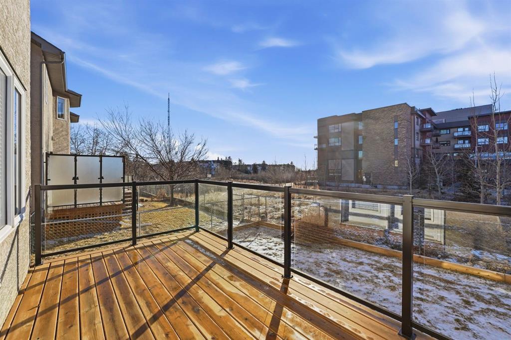 Welcome to 33 Prominence Park SW, a beautifully upgraded and fully developed attached duplex offering 2348 sq ft of luxurious living space in one of Calgary’s most desirable communities. Tucked into a quiet cul-de-sac with natural light and thoughtful renovations throughout. Step inside to a spacious front foyer that flows into an open-concept main floor featuring 9 foot ceilings, walnut hardwood flooring, recently updated throughout and a quaint corner fireplace, perfect for cozy winter evenings. The kitchen has been stylishly upgraded with maple cabinets, stainless steel appliances, quartz countertops, making it as functional as it is beautiful. The dining area opens to a private south-facing expanded cedar deck with newer railings and a privacy screen- ideal for entertaining or relaxing outdoors. Upstairs, the primary retreat showcases vaulted ceilings, a large walk-in closet with ample shelving, a luxurious ensuite complete with a large corner soaker tub and separate shower. Two additional generously sized bedrooms, a full bathroom, complete this level. The fully finished basement adds outstanding versatility with 9-foot ceilings, a spacious family and recreation room, some extra storage under the stairs, and an additional four-piece bathroom -ideal for guests, teens, or extended family. An additional feature includes a double attached insulated garage and two extra parking spaces on the front driveway. This well managed-complex features mature landscaping backing on to green space and pathways, with low cost condo fees covering exterior maintenance, snow removal, and landscaping. Quick access to downtown, major roadways, shopping, schools, and the LRT station. A rare opportunity to own a move-in-ready home offering upscale finishes, functional living, and an exceptional location. This gem has everything you are looking for in one outstanding home. Book your private showing today!