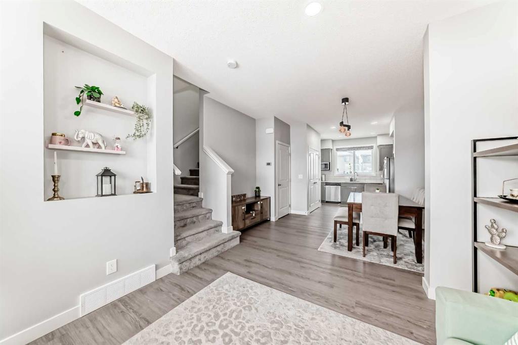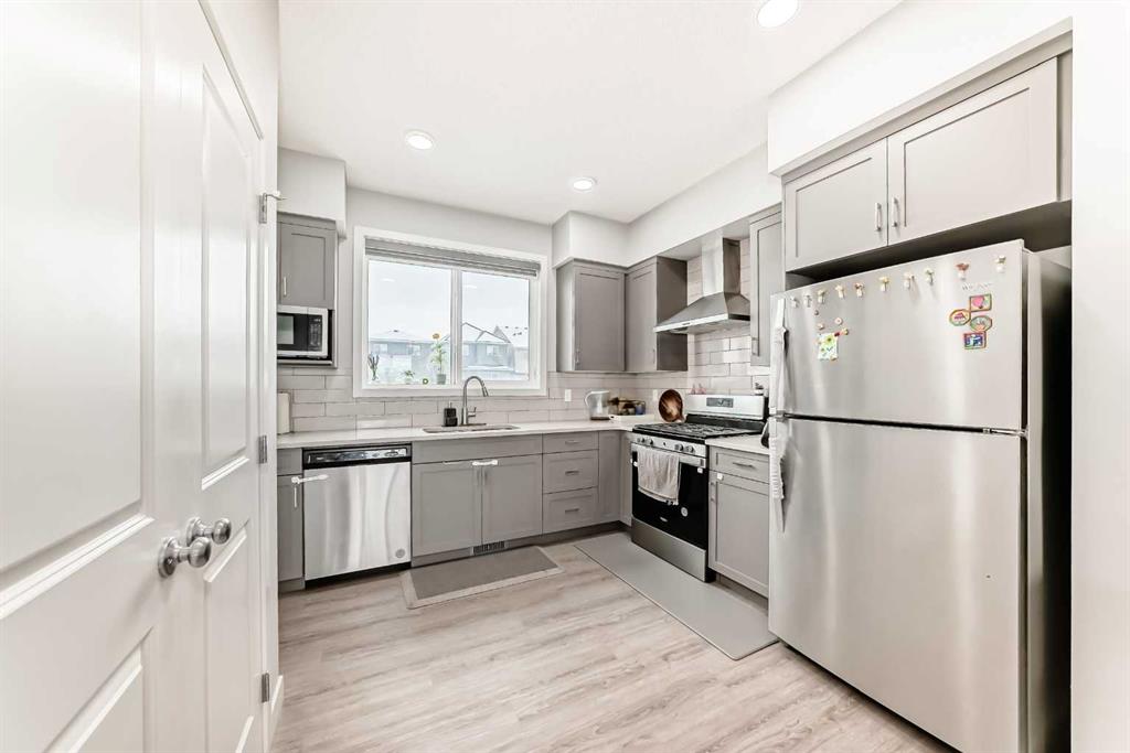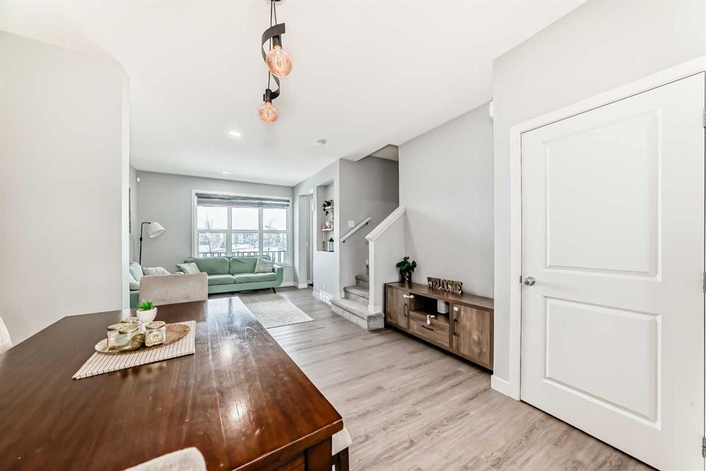 Welcome to this beautiful, well-maintained a NO CONDO fee townhouse located in the heart of Savanna. The full-width front porch overlooks the park and feels like an extension of daily life — a place to sit, connect, and take in the neighbourhood. The main floor features a bright, open-concept layout with quartz countertops, modern cabinetry, pantry, and a well-appointed kitchen with gas stove. The spacious living and dining areas are perfect for everyday living and entertaining. The upper floor offers a thoughtfully designed layout that includes a spacious PRIMARY BEDROOM WITH ENSUITE & WALK-IN CLOSET, two generous size bedrooms plus an additional 4-PIECE FULL BATHROOM. Convenient UPPER-FLOOR LAUNDRY adds everyday functionality, while large windows throughout provide excellent natural light. The property is steps away from Savanna Bazaar, transit stop, schools and shopping center. This townhome is ideal for first-time buyers or investors looking for a move-in-ready property. Schedule your private showing today!