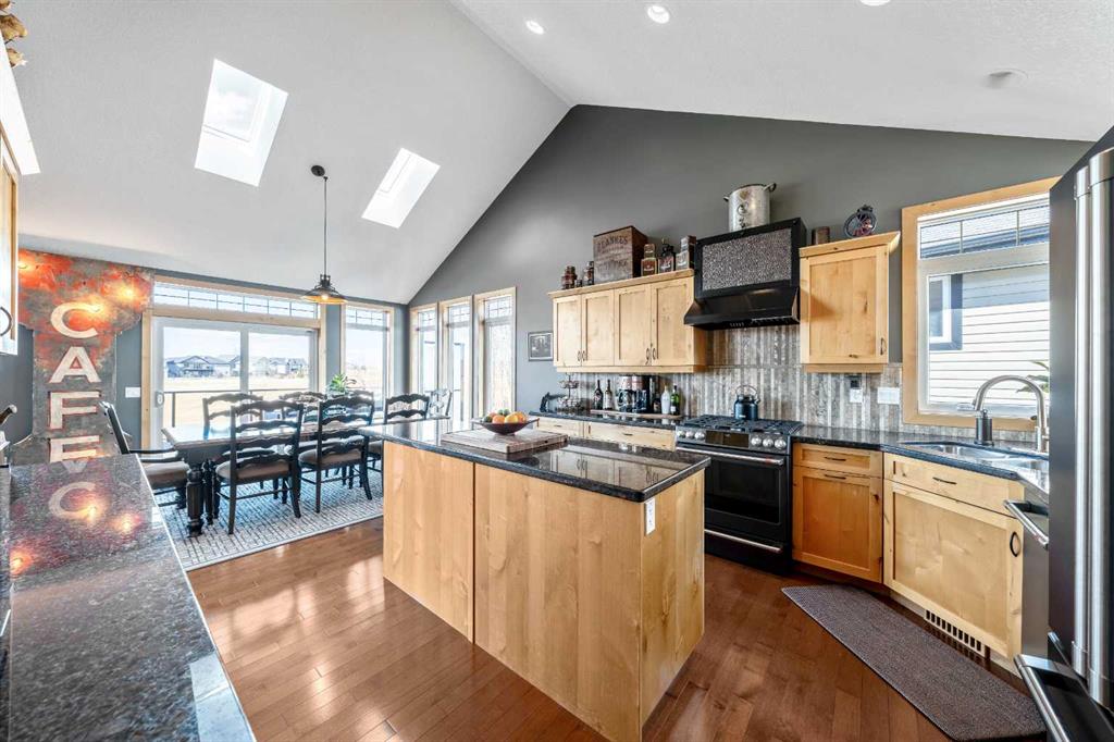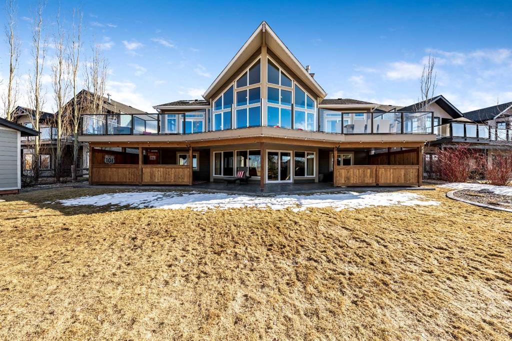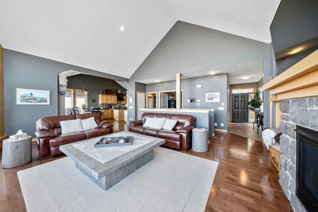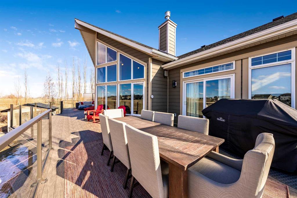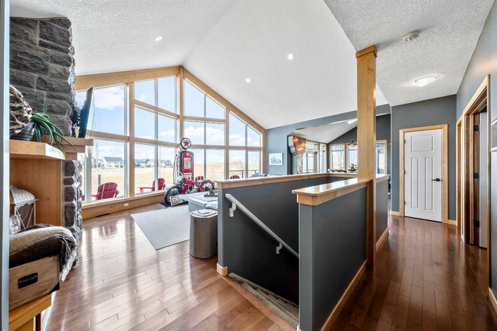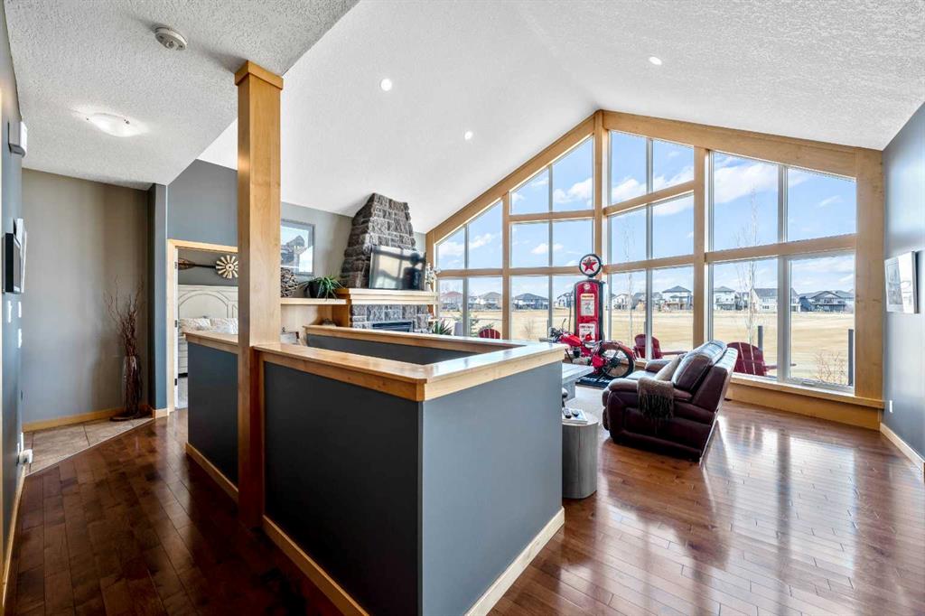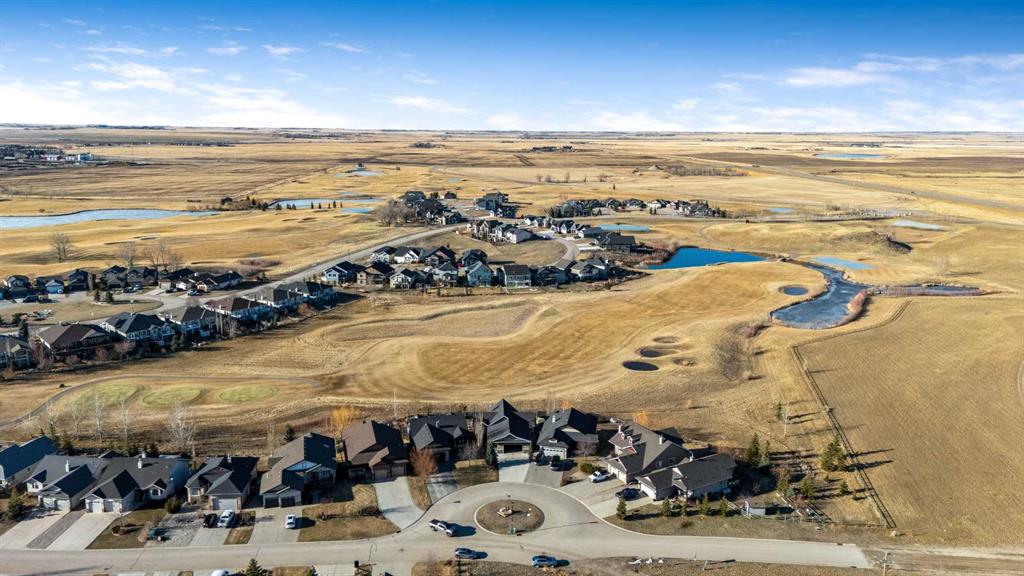 33 Wyndham Park Way Speargrass Golf Course Living! Backing the 10th fairway of the Speargrass Golf Course and just steps from the Bow River, this beautifully upgraded bungalow offers peaceful views, stunning sunsets, and over $200,000 in thoughtful upgrades… Welcome to this beautifully maintained bungalow located along the 10th fairway of the Speargrass Golf Course, offering peaceful views, stunning sunsets, and a relaxed lifestyle in one of Wheatland County’s most charming communities. Just steps from the Bow River, this home combines scenic surroundings with a bright and spacious interior designed for comfortable living. The main floor features an open-concept layout with soaring vaulted ceilings, skylights, and expansive windows that fill the home with natural light while capturing the surrounding golf course views. The impressive stone fireplace anchors the great room, creating a warm and inviting space for gathering. The kitchen is well appointed with granite countertops, a large island, and generous cabinetry, flowing seamlessly into the dining area with patio doors that open onto the upper deck—perfect for morning coffee or evening sunsets overlooking the fairway.
