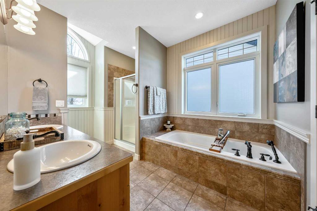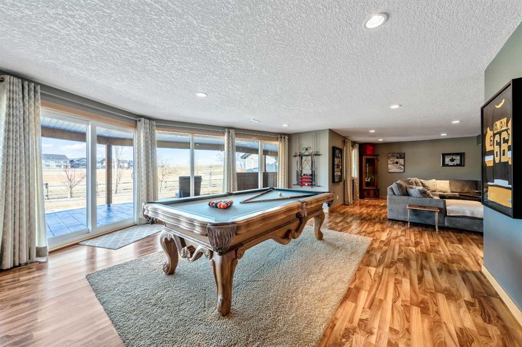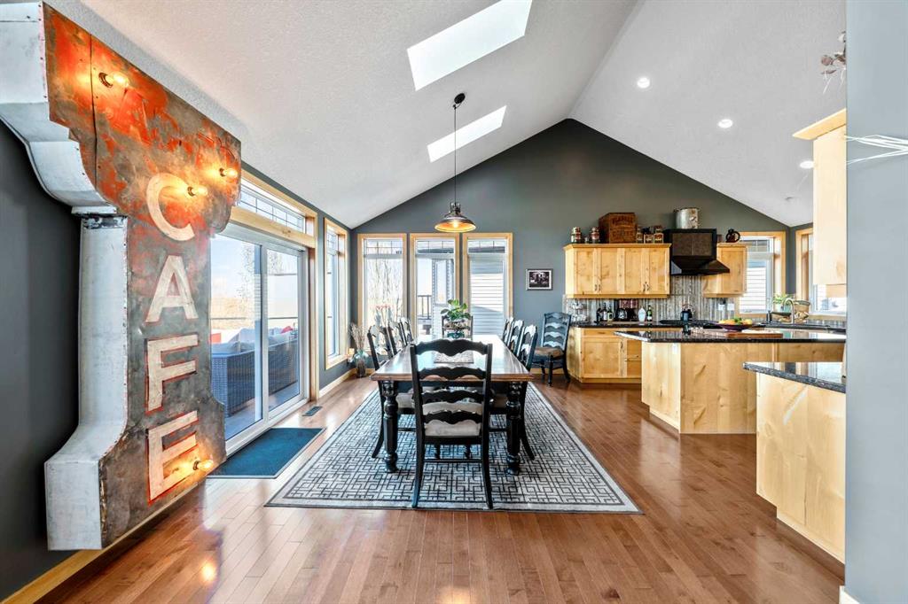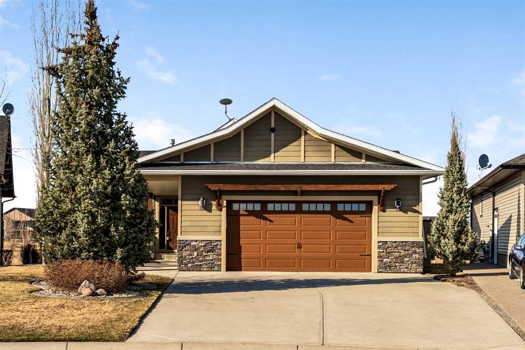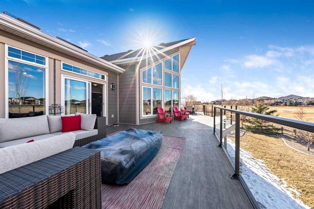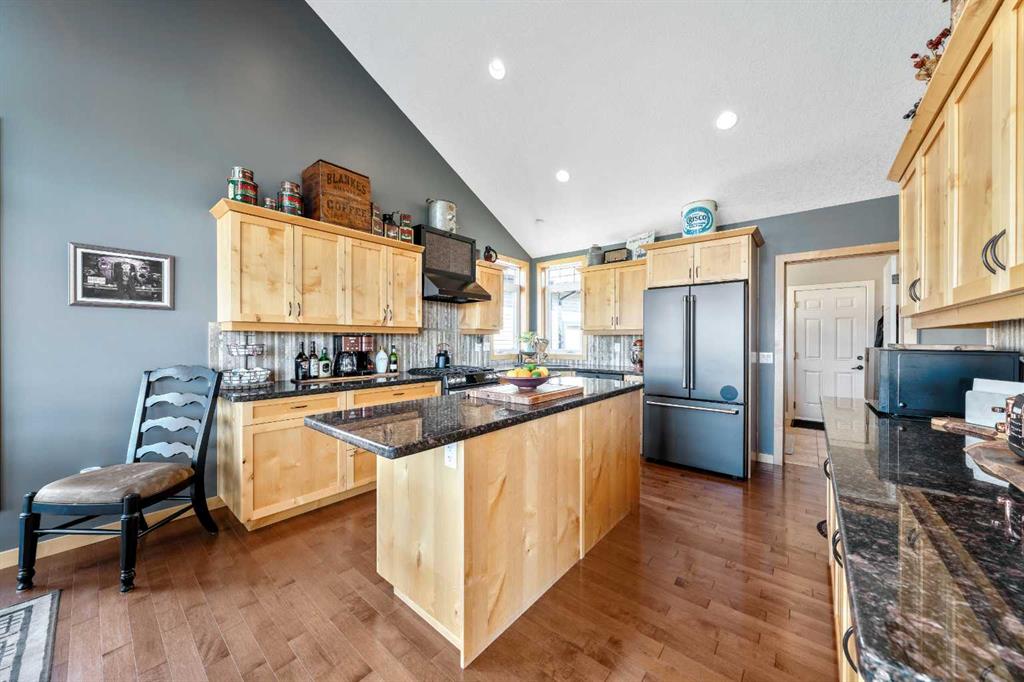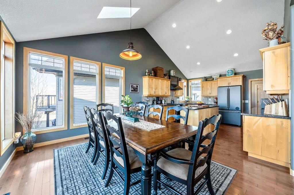 33 Wyndham Park Way Speargrass Golf Course Living! Backing the 10th fairway of the Speargrass Golf Course and just steps from the Bow River, this beautifully upgraded bungalow offers peaceful views, stunning sunsets, and over $200,000 in thoughtful upgrades… Welcome to this beautifully maintained bungalow located along the 10th fairway of the Speargrass Golf Course, offering peaceful views, stunning sunsets, and a relaxed lifestyle in one of Wheatland County’s most charming communities. Just steps from the Bow River, this home combines scenic surroundings with a bright and spacious interior designed for comfortable living. The main floor features an open-concept layout with soaring vaulted ceilings, skylights, and expansive windows that fill the home with natural light while capturing the surrounding golf course views. The impressive stone fireplace anchors the great room, creating a warm and inviting space for gathering. The kitchen is well appointed with granite countertops, a large island, and generous cabinetry, flowing seamlessly into the dining area with patio doors that open onto the upper deck—perfect for morning coffee or evening sunsets overlooking the fairway.