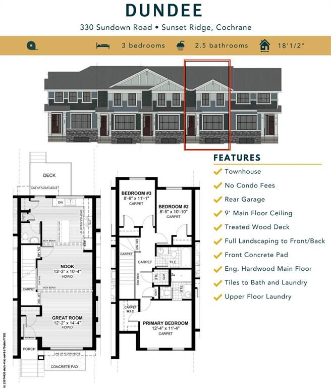 Excellent Value in Sunset Ridge… Introducing the Dundee by Douglas Homes Master Builder… a beautifully designed west-facing townhouse offering 3 bedrooms, 2.5 bathrooms, a full basement, and a double detached garage. With no condo fees and complete front-and-back landscaping, this home blends modern comfort with practical, low-maintenance living.