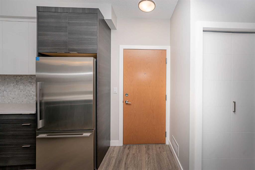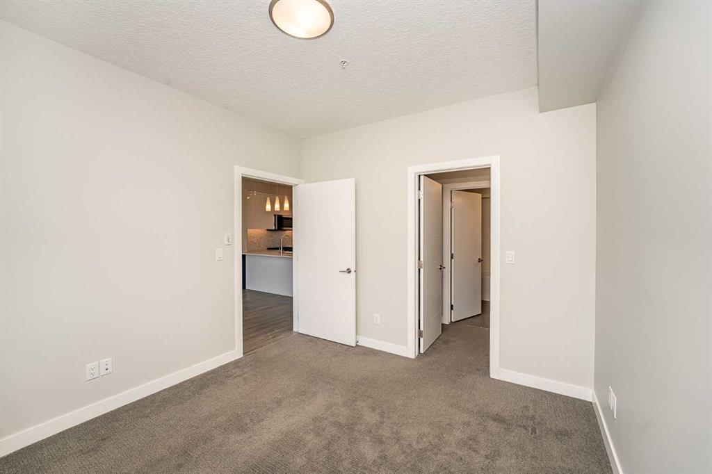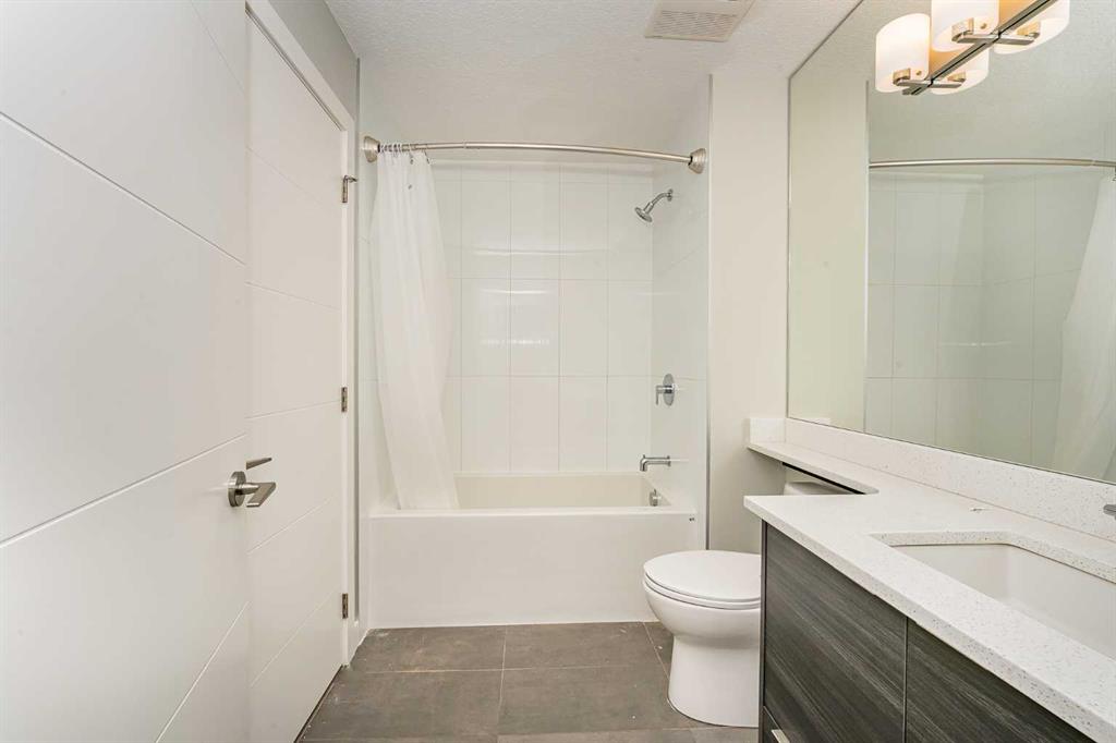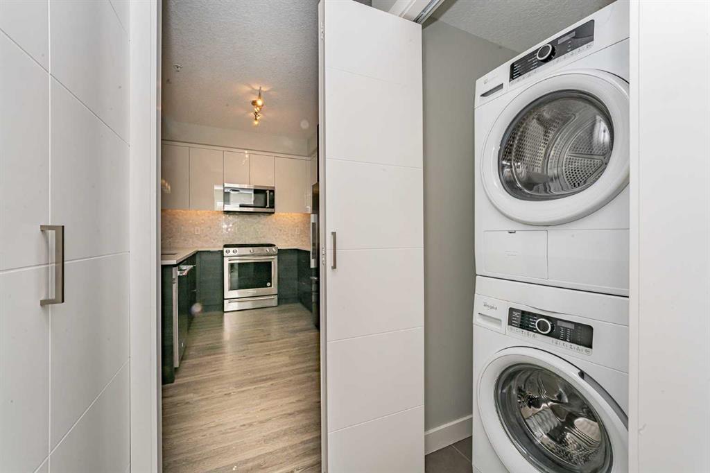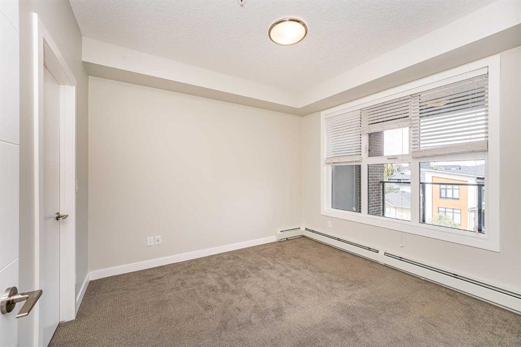 BUILDER SALE! Looking for upgrades in a spec unit? This might be the one. Welcome to the Axess building, located in the heart of the historic Currie Barracks community! This beautifully upgraded 1-bedroom unit features soaring 9-foot ceilings. Step inside to find luxury vinyl plank flooring and an abundance of natural light streaming through oversized windows. The stylish kitchen showcases a modern blend of crisp white and dark cabinetry, upgraded stainless steel appliances including a gas stove, quartz countertops, and a designer tile backsplash. An open counter connects seamlessly to the dining area, perfect for entertaining. The spacious living room leads to a top-floor balcony with a gas BBQ line and unobstructed southern views—the perfect place to relax and enjoy breathtaking sunsets. The generously sized primary bedroom features a walk-through closet with direct access to the elegant 4-piece bathroom, complete with tile flooring, quartz countertops, and a soaker tub. Just off the kitchen is a versatile nook—ideal for extra storage or a small home office setup. Additional highlights include in-suite laundry, underground parking with a car wash, and a private storage locker located directly in front of your parking stall. All this in a prime location—steps from Mount Royal University, walking paths, parks, shopping, and with easy access via Crowchild Trail to Marda Loop and downtown Calgary. A truly exceptional opportunity to own in one of Calgary’s most desirable communities.
