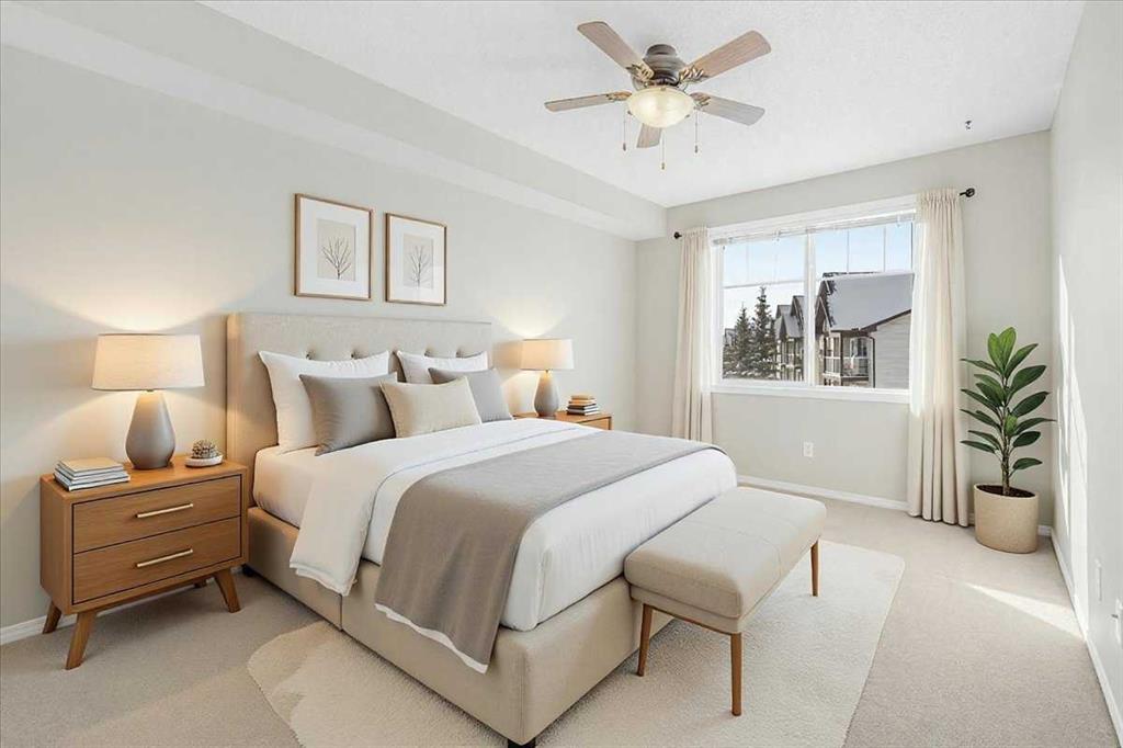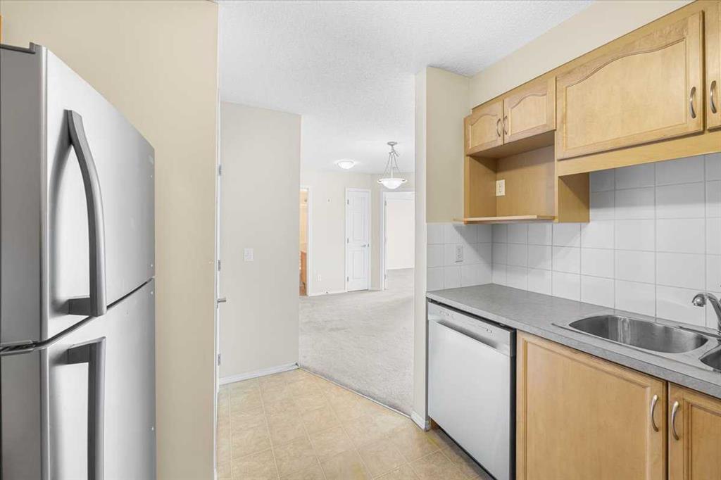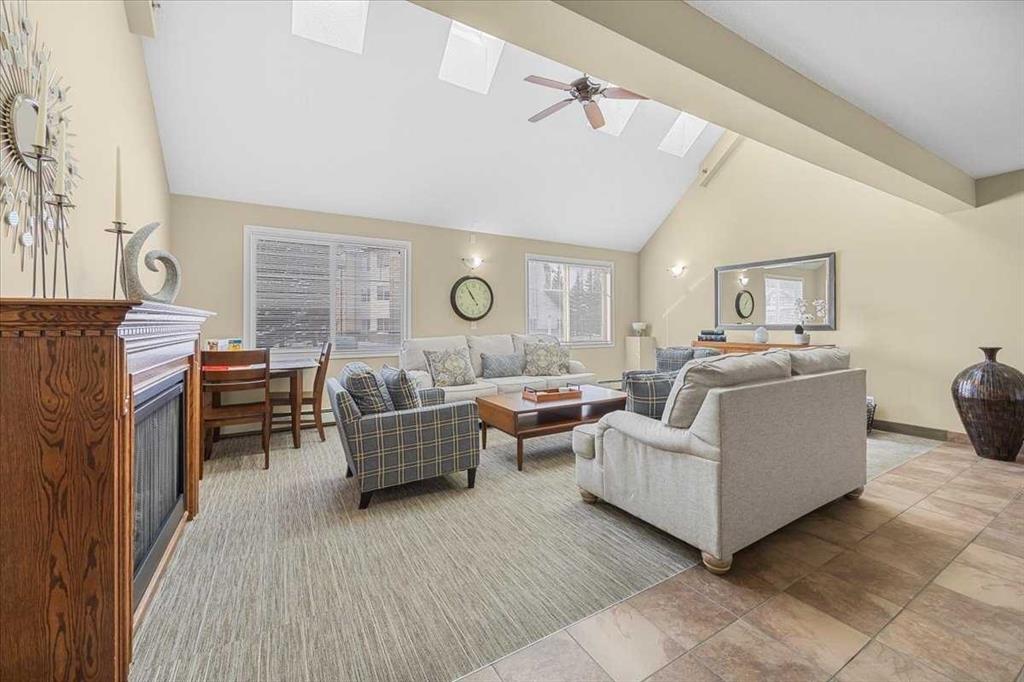 Welcome to Calvanna Village, a highly desirable 55+ community in the heart of Okotoks—perfect for those seeking a relaxed, low-maintenance lifestyle with a strong sense of community. This bright, south-facing one-bedroom condo is sure to impress! The spacious living and dining area is perfect for entertaining or enjoying quiet evenings, while large windows flood the home with natural light. The separate kitchen offers plenty of cabinet and counter space, and the convenience of in the suite laundry makes everyday living easy. The versatile Den is ideal for a home office, hobbies, or storage. Step out onto your private balcony with gas hookup—perfect for summer BBQs and soaking up the sunshine. Enjoy the peace of mind of secure underground parking with extra storage, plus there is lots of outdoor parking for guests. The clubhouse is a true highlight, featuring a social room, games room with pool tables, library, and exercise equipment—ideal for staying active and connecting with neighbours. Excellent location – walk to shopping, dining, and essential services. This well-managed complex offers everything you need right at your doorstep. Quick possession is available—come see for yourself why this could be your next home!