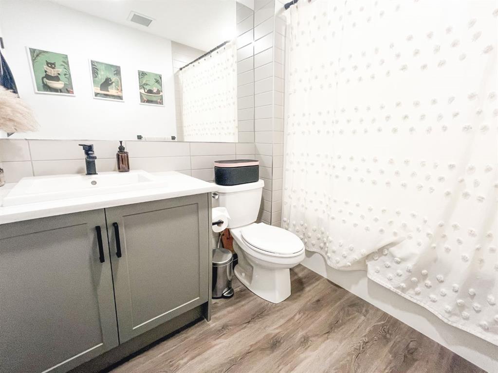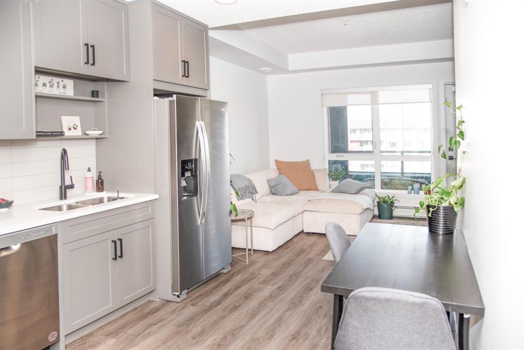 Welcome to your new home in the thriving community of Livingston, where style, comfort, and convenience come together effortlessly. This top-floor condo offers the best of both worlds — a peaceful, elevated living space with easy access to major highways, making commutes and city adventures a breeze. Step inside to discover a thoughtfully designed layout featuring a spacious primary bedroom, and a modern 4-piece bathroom. The open-concept living area is enhanced by contemporary finishes, including sleek wood-style cabinetry, gleaming stainless steel appliances, and the added convenience of in-suite laundry. Natural light floods the space, giving it a warm and inviting feel — ideal for both relaxing evenings and entertaining guests. Beyond your unit, the building impresses with a stylish, modern lobby that sets the tone from the moment you arrive. Pet lovers will appreciate the outdoor dog park, offering a perfect spot for your furry companion to stretch and socialize.