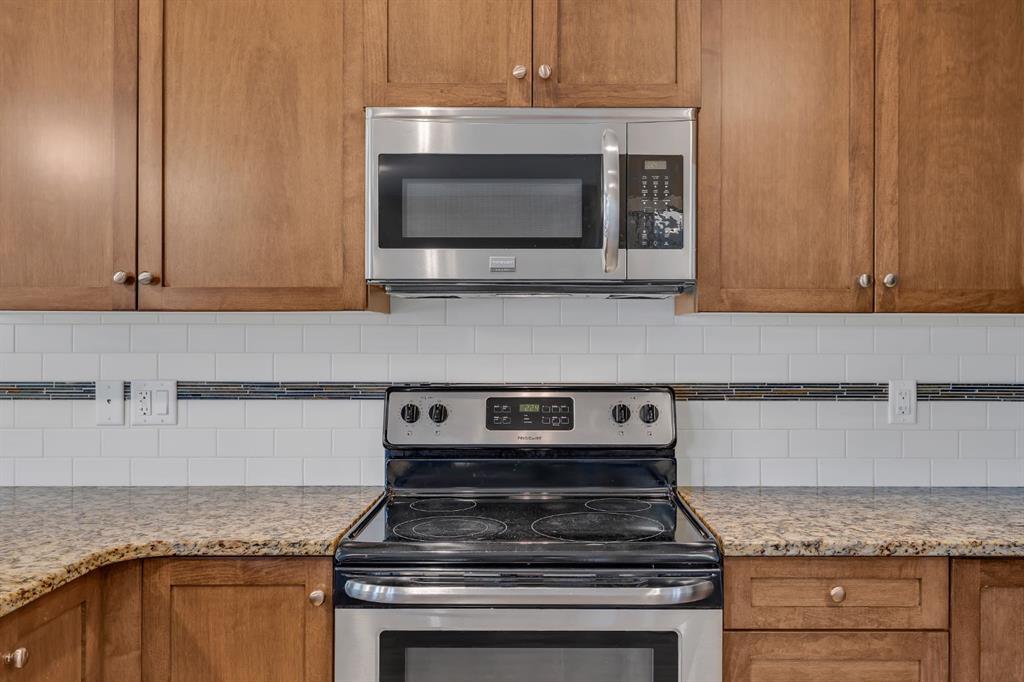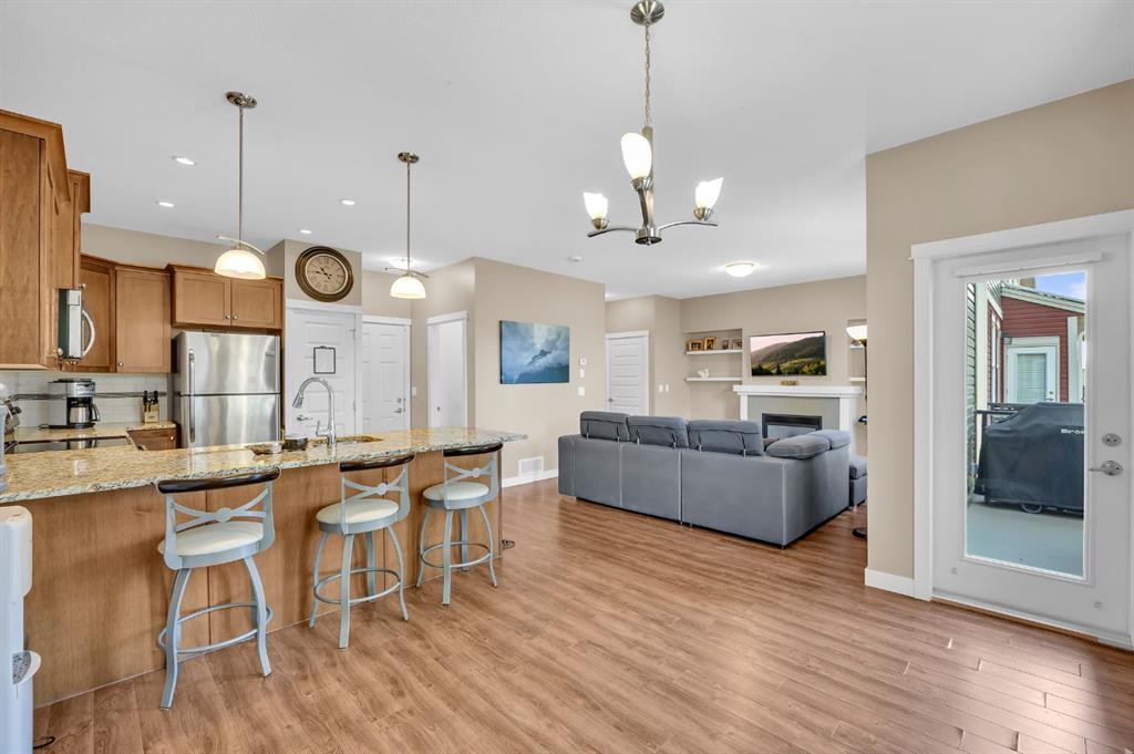 PRICE ADJUSTED! Welcome to this bright and spacious home featuring an open-concept main floor, perfect for both everyday living and entertaining. The kitchen boasts rich wood cabinetry, sleek stainless steel appliances, and upgraded granite countertops. Enjoy seamless indoor–outdoor living with a private deck, gas BBQ hookup, and a fully fenced backyard. The inviting family room is centered around a cozy gas fireplace with custom shelving.