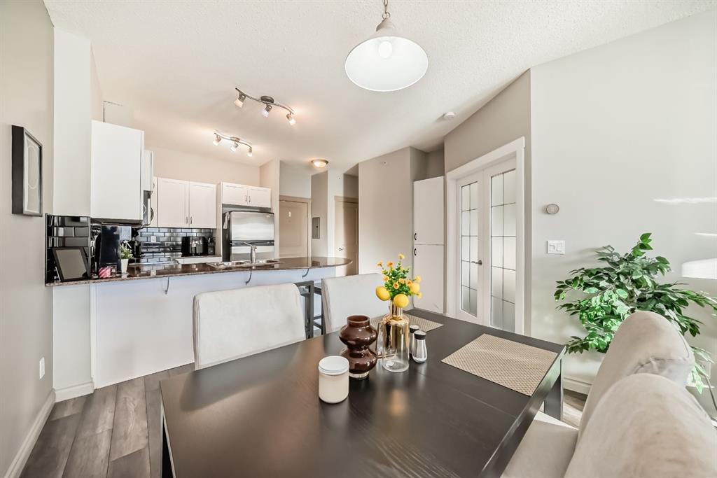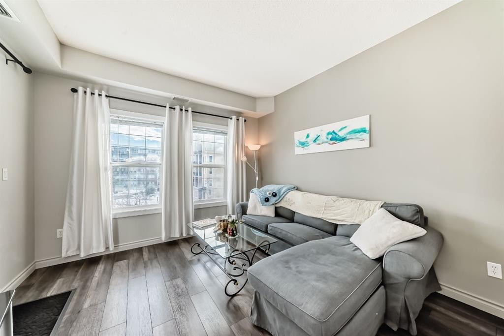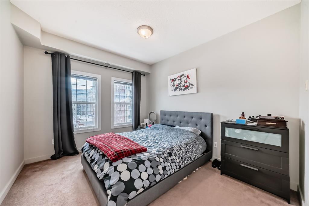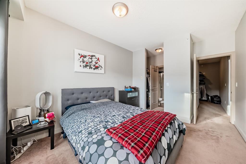 Welcome to this bright and well maintained 2 bedroom, 2 bathroom + den condo, located on the third floor of the award-winning Gateway SouthCentre, proudly named 2025 Condominium of the Year by the Canadian Condominium Institute (CCI), Southern Alberta. This sun-filled, south-facing unit overlooks the peaceful courtyard and green space and is set within a solid concrete, soundproof building. The open-concept layout showcases true pride of ownership, featuring a gourmet kitchen with stainless steel appliances, ample cabinetry, and a functional design ideal for everyday living and entertaining. The den has been thoughtfully converted into a walk-in closet, offering exceptional storage, while a separate laundry closet adds everyday convenience. Step outside to your private balcony with a gas line, perfect for a BBQ or cozy fire table, extending your living space for year-round enjoyment. This single-level home includes one titled, heated underground parking stall with a storage cage conveniently located directly in front of the stall. Residents enjoy outstanding amenities including a fitness centre, party rooms, and guest suites. Ideally located with shopping, restaurants, Fish Creek Park, bus service right outside the complex, and LRT Station nearby, this home offers an exceptional blend of comfort, quality, and convenience.