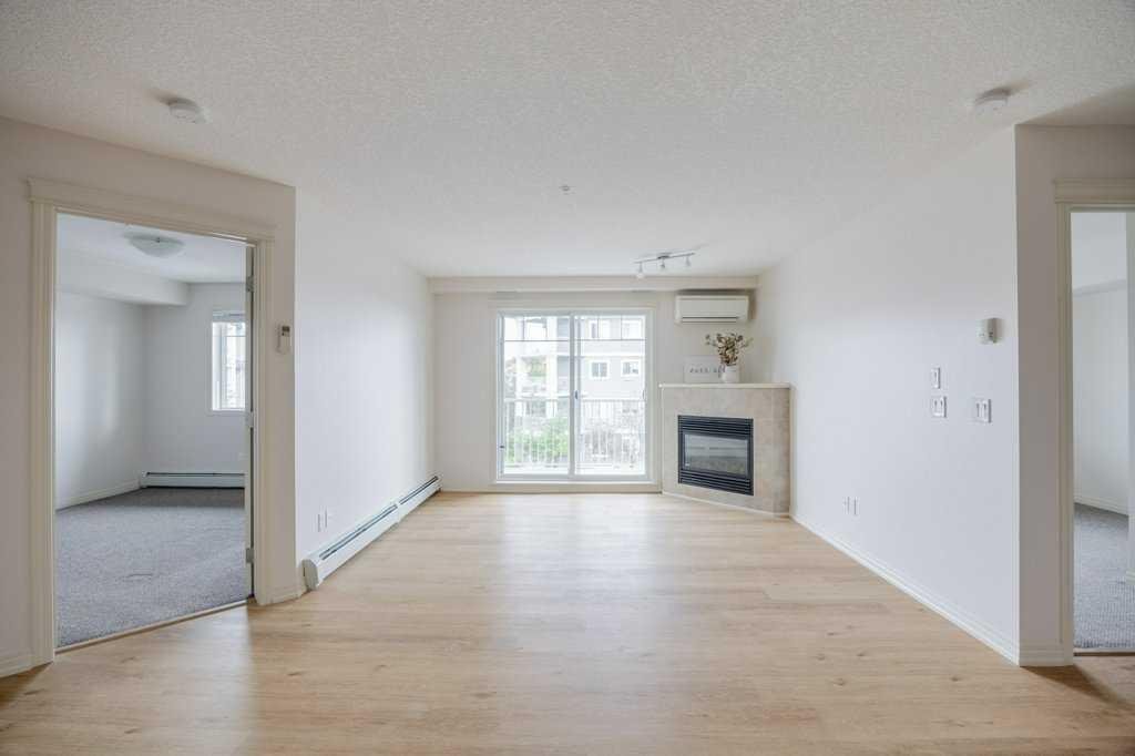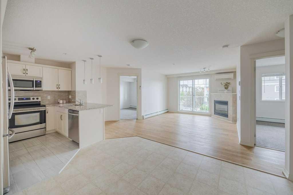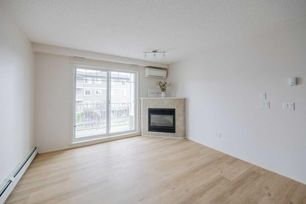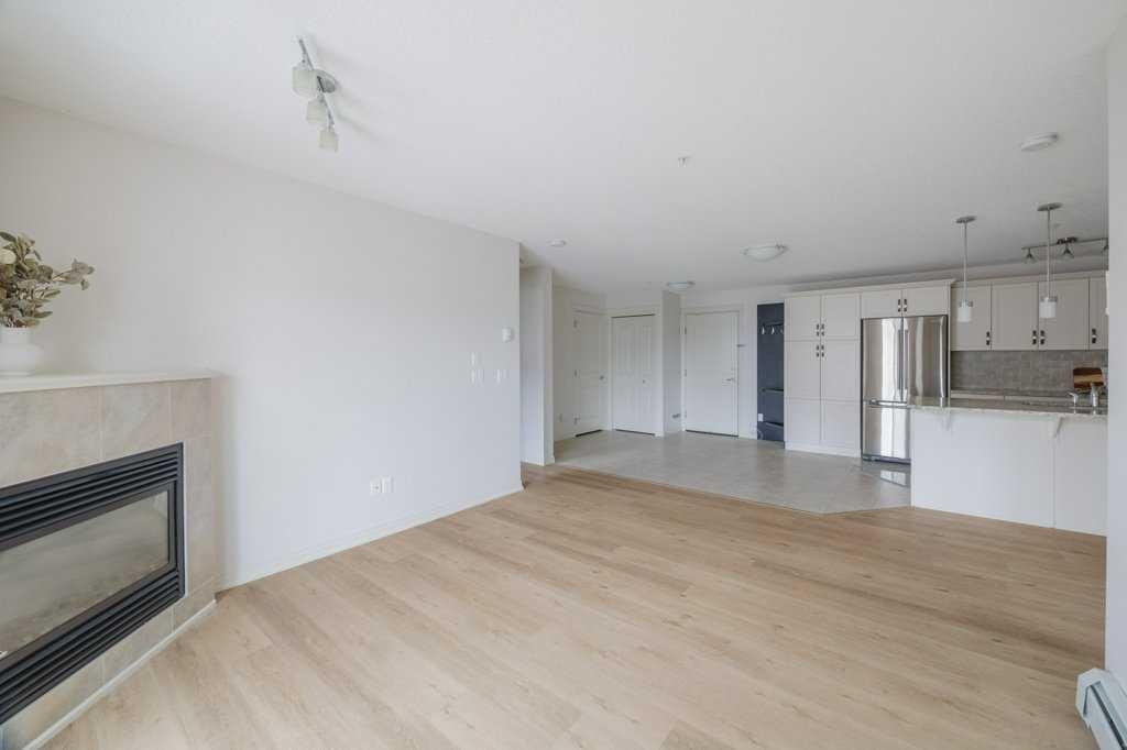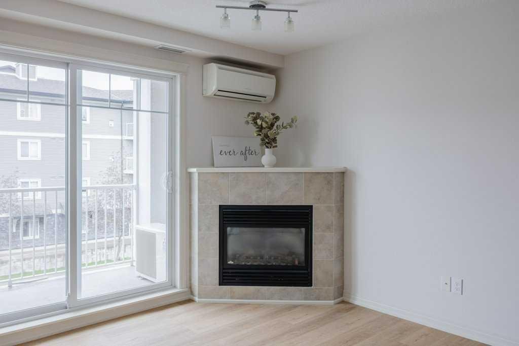 Welcome to one of the most complete and stylish units in the complex! This move-in ready, upgraded 2-bedroom, 2-bathroom condo offers a rare combination of features that are hard to find all in one place: wall-mounted AC, a corner fireplace, and a titled underground parking stall making it a true full-package home. Situated on the 3rd floor with beautiful morning light, this thoughtfully designed unit features soundproof, water-resistant vinyl plank flooring in the living room, brand-new carpet in the bedrooms, and tile flooring in the kitchen and bathrooms. Freshly painted in a soft, neutral tone, it offers a bright and welcoming atmosphere throughout. The kitchen includes stainless steel appliances, granite countertops, crisp off-white cabinets, and a bonus pantry cupboard. Step onto your private balcony – ideal for morning coffee or evening relaxation. You’ll enjoy comfort year-round with central heating, wall-mounted AC, and a cozy fireplace. There’s also in-suite laundry with extra shelving – great for added storage or hanging clothes.