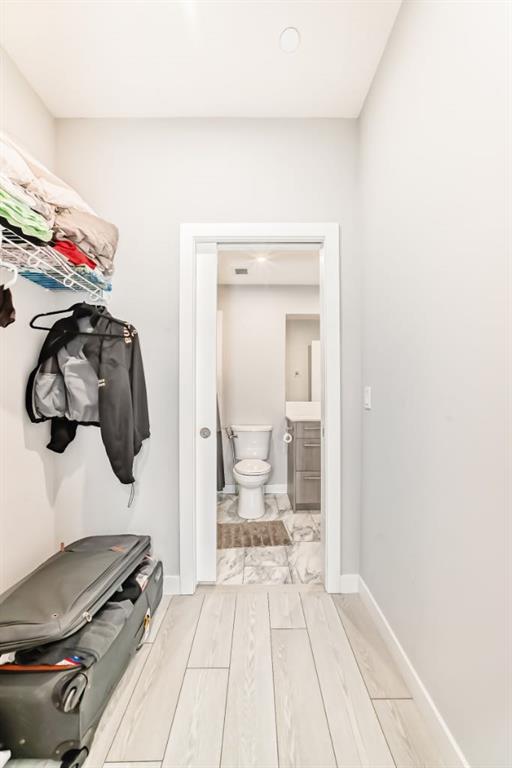 The TWO BEDROOMS are thoughtfully sepatated for privacy and functionality. The PRIMARY MASTER BEDROOM features LARGE WINDOWS overlooking the HUGE BALCONY with the views of the GREEN SPACE. The WALK-THROUGH closet leads you to a STUNNING 4-PIECE ENSUITE complete with TALL CABINETS, DOUBLE SINKS, GORGEOUS QUARTZ COUNTERTOPS, & WALK-IN SHOWER- your personal spa at home!