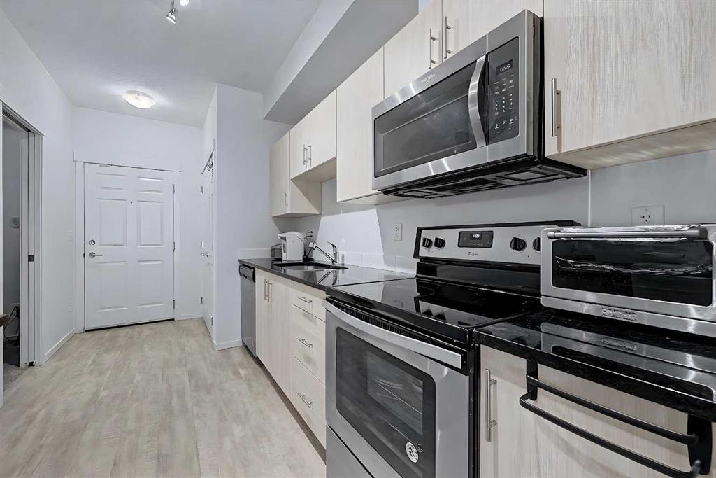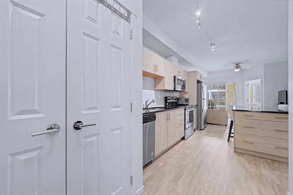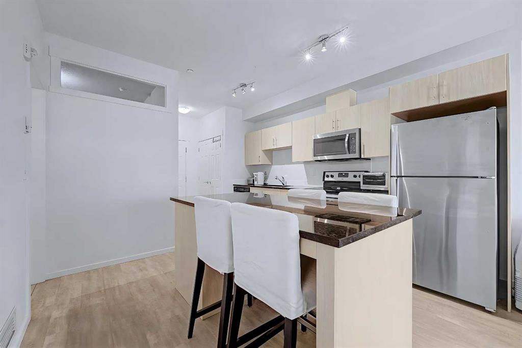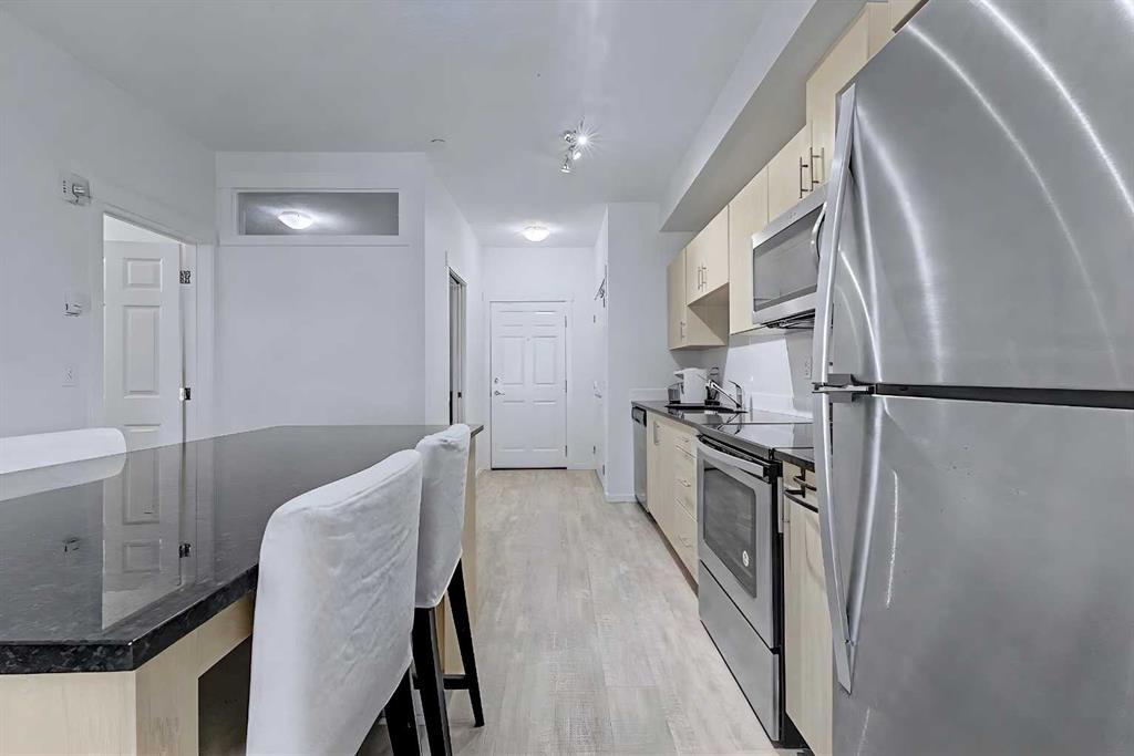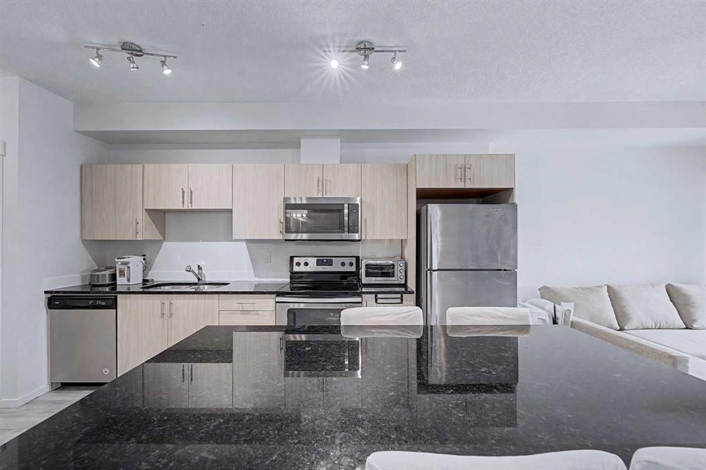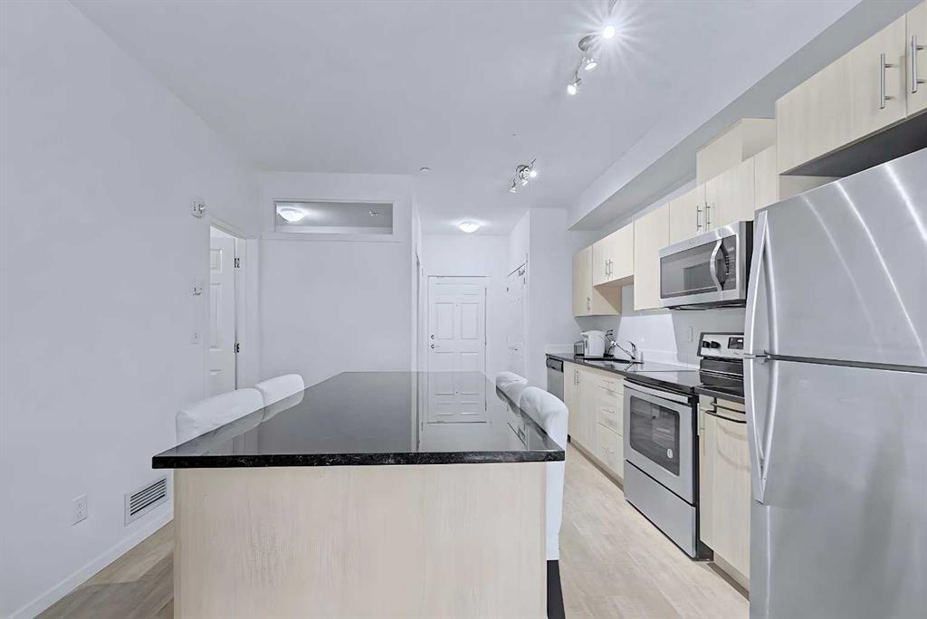 Welcome to Legacy Blvd, in the award-winning community of Legacy. This well-designed 2-bedroom, 1.5-bathroom condo offers a bright, open-concept layout that is both functional and inviting. The kitchen features quartz countertops, stainless steel appliances, modern cabinetry, and a large island that flows easily into the living and dining areas, creating a comfortable space for everyday living.