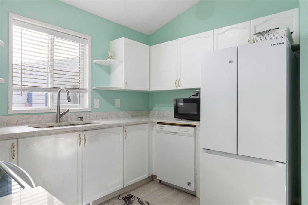 Step inside through the welcoming foyer with large closets, leading directly to a comfortable living room featuring vaulted ceilings for an open, airy feel — perfect for relaxing or entertaining. From there, flow into the updated kitchen with modern appliances, ample storage, quartz counters, and a bright dining area ideal for gatherings. Upstairs, discover two generous bedrooms and an updated four-piece bathroom.