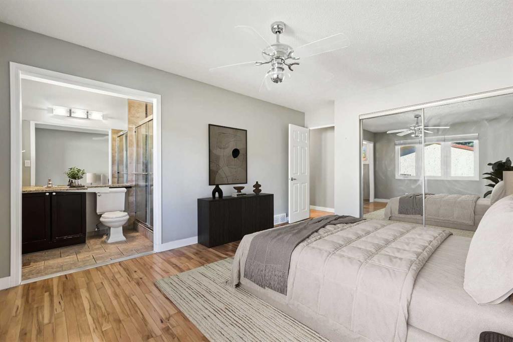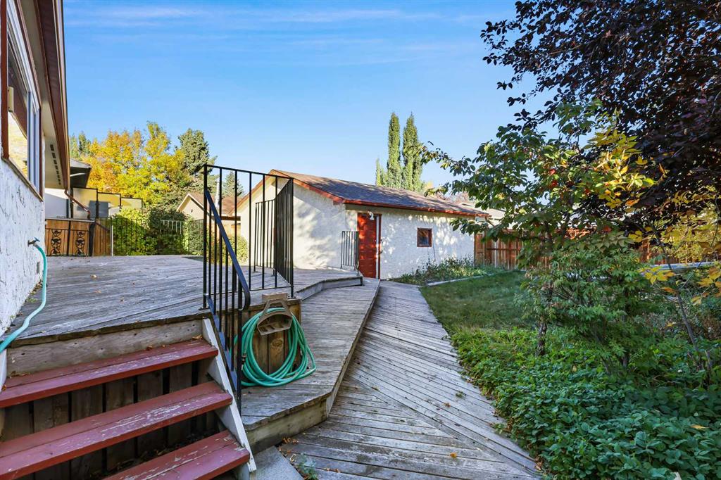 Wonderful Bungalow in one of the Best Locations in Highly Sought-After Parkland. Homes very Rarely come on the market in this Lovely, Quiet Green! Access to Fish Creek Park with miles and miles of scenic biking and walking trails is just steps away.. Spacious Rooms throughout! The main level features Hardwood and Beautiful Cork Flooring. Light & Bright Living Room allows for so many options for Furniture Placement. Great functional White Kitchen with Eating Nook is ideally situated between the Main Floor Family Room and Dining Room. The cozy Family Room is showcased by a Brick-Faced, Wood-Burning Fireplace and Patio Doors leading to a Multi-Level Deck – the Perfect Spot for Family Get-Togethers in and out! Large Primary Bedroom with Lovely Updated Ensuite, 2 Secondary Bedroom and Main Bathroom complete this level. The Lower Level offers so many opportunities to develop into the space you need and put you own Special Touches on it. Huge Rec Room/Games Room with Beautiful Brick Wood-burning Fireplace, Large Wet Bar and still ample room to develop a Den, Bedroom and Bathroom as well – Plumbing for Bathroom is already in place.. The Backyard features the multi-level deck and an Over-Sizes Double Garage. Parkland Residents have access to the community’s private Park 96 with Tennis Courts, Skating Rink, Disc Golf and more! Excellent Location with easy access to Major Roadways, Shopping – just minutes away. This Great Home is Waiting for You!