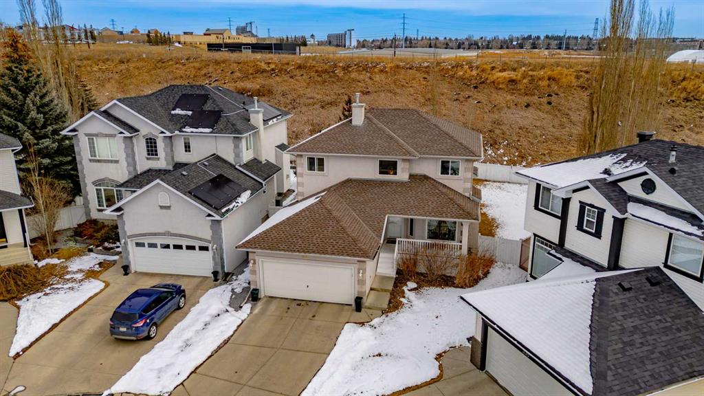 Prime Location in Signal Hill – Backing onto Green Space! Tucked away at the end of a quiet cul-de-sac, this well-maintained and upgraded 2-storey home offers over 2,900 sq. ft. of developed living space, exceptional privacy, and direct backing onto green space. Ideally located close to Westhills Towne Centre, schools, the recreation centre, downtown, and with easy access to major routes, this home combines convenience with a peaceful setting. The functional main floor, spanning over 1,100 sq. ft., features a fully upgraded kitchen with quartz countertops and stainless steel appliances, along with a formal dining room, den, breakfast nook, and a bright living room with vaulted ceilings and a cozy gas fireplace. An external solar screen blind enhances comfort and efficiency by covering the large windows. A laundry room and powder room complete this level. Step outside to a newly built deck overlooking a large, well-maintained pie-shaped lot—perfect for outdoor activities and entertaining. The charming front porch offers the ideal spot to relax and enjoy evening sunsets. Upstairs, the spacious primary suite includes a large ensuite with a corner soaker jetted tub, separate shower, and double vanity. Two additional generously sized bedrooms and a full bathroom complete the upper level. The fully finished basement provides even more living space with a massive recreation area featuring built-in desk and shelving, a fourth bedroom with an egress window, and a full bathroom. Recent updates such as fresh paint throughout, triple-pane windows, quartz countertops, and stainless steel appliances further showcase the pride of ownership in this exceptional home. Please click the Virtual Tours for more details!