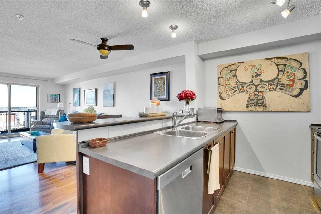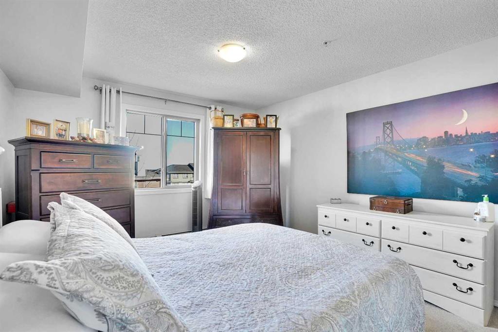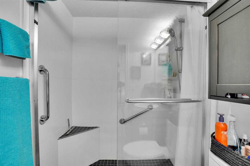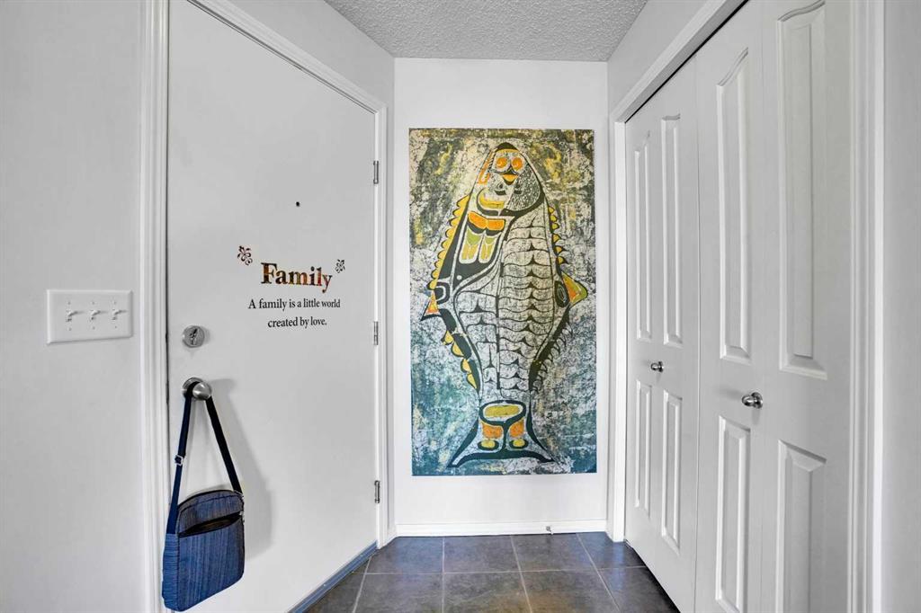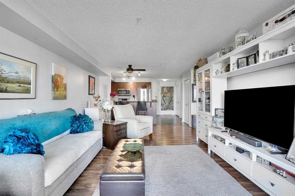 Welcome Home! This sweet condo is absolutely perfect for those who want a peaceful place to call their own. You can feel it as soon as you step into the suite. This corner suite overlooks walking paths, community spaces and greenery and the east exposure guarantees bright mornings. A generous size balcony is accessed through sliding patio doors from the living room: add some patio furniture, then sit back and enjoy the view. Tastefully decorated and well kept with dark stained wooden cabinetry, ceramic floor in the entry, kitchen and bathroom, laminate flooring in the living room and dining area, raised breakfast/casual/dining counter and upgraded appliances. The corner electric fireplace adds to the ambiance of this home. When it’s cold outside, the heater fan can be turned on to gently warm the living area. Can you say “cozy”…?? There is abundant storage in the closets with built in shelving and space savers. An oversized, tiled, walk in shower in the main bath is both beautiful and functional. Care and thought was absolutely put into its design. Pride of ownership is both felt and seen in every part of this delightful condo. Walking distance to shopping complex with Shopper’s Drug Mart, Save-On-Foods, banks, restaurants and… of course…. a Timmy’s. A short drive will take you to the full Country Hills Shopping complex boasting a theatre, flower shops and the Calgary Public Library at Country Hills! CrossIron Mills is 15 minutes away. If you don’t drive, Calgary Transit offers good service with connections at the North Pointe Terminal that’s beside the Country Hills Complex. Check out the Panorama Pointe Community Centre, an active and expansive recreation facility for the area. A golf course is close by. Your designated parking stall #15 with power is right in front of the building. Condo fees include all utilities, even electricity. This home offers affordable, low maintenance living in a lovely area of Calgary. Contact your realtor to see it today!!