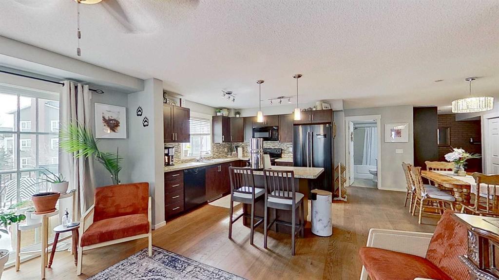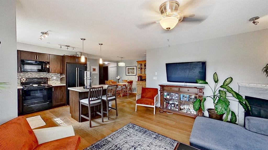 A large, open-concept kitchen seamlessly integrates with the dining and living areas, creating an ideal environment for comfortable living and entertaining guests. In addition to two inviting bedrooms, the condo offers one three-piece bathroom and one four-piece bathroom.