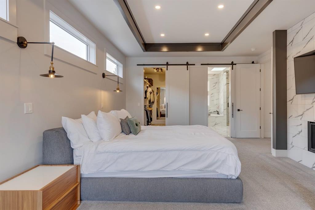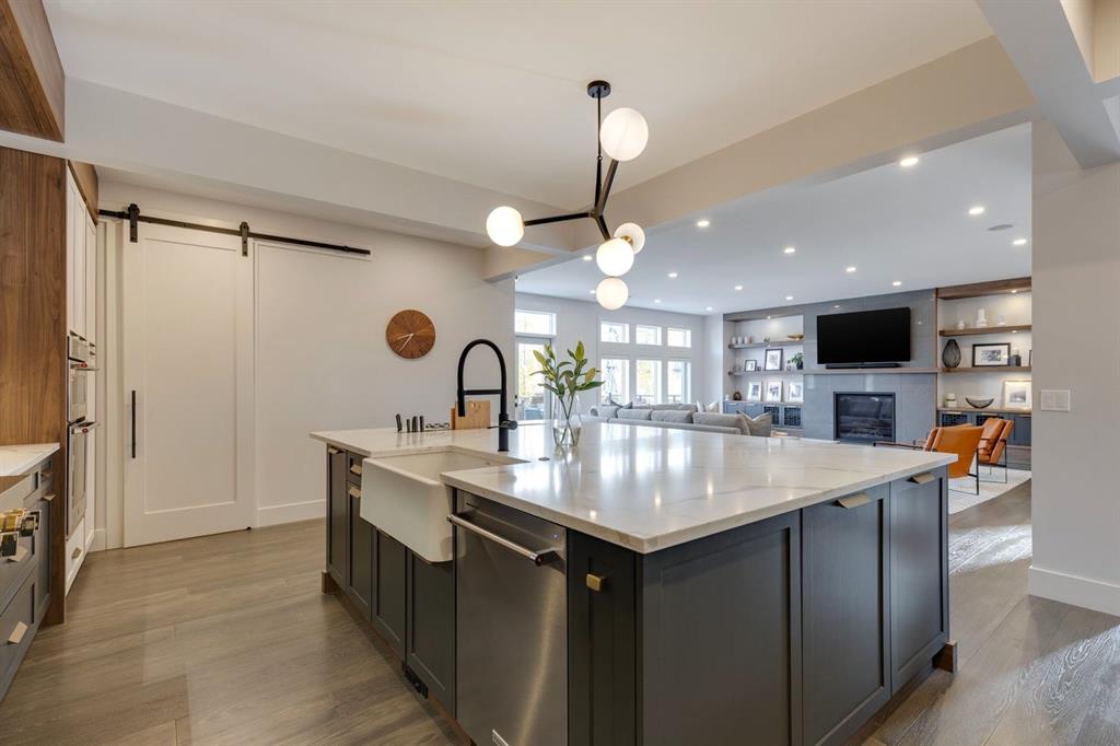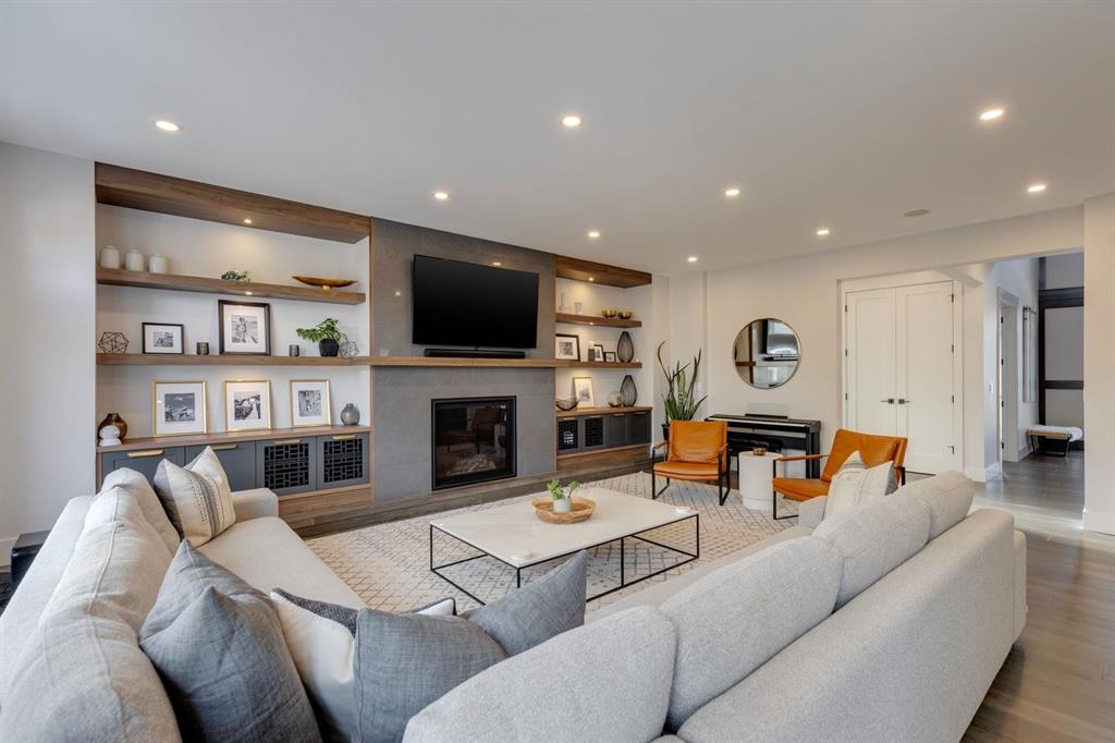 Discover modern elegance and refined living in this custom built architectural showpiece. Designed for families and entertainers alike, every element of this residence blends cutting edge technology, timeless craftsmanship, and a warm, luxurious ambiance that instantly feels like home. From the moment you arrive, you’ll be captivated by the exquisite curb appeal and inviting front porch where you can unwind with a glass of wine and wave to passing neighbours. Step inside to a warm, contemporary interior accented with rich walnut finishes throughout. A culinary enthusiasts dream kitchen is a true centrepiece, featuring an expansive eat-up island, a walk-in pantry, custom cabinetry, built-in appliances, and a massive island with a Zomodo prep sink that transforms seamlessly for entertaining. Designed to impress and inspire, this kitchen effortlessly blends functionality with sophistication, making it ideal for both intimate family meals and lavish entertaining. The open concept main floor invites connection, whether you’re hosting elegant dinner parties or cozy family nights by the fireplace. Extend your living outdoors to a spectacular, multi-tiered deck and beautifully landscaped rear yard, ideal for summer gatherings or peaceful evenings under the stars. Upstairs, the primary suite redefines luxury with a gas fireplace, coffee station with beverage fridge, and large windows framing tranquil views. The lavish ensuite pampers with a large skylight, heated floors, deep soaker tub, steam shower with body sprays, double vanity, and even a heated towel rack for ultimate comfort. Two additional spacious bedrooms, a full bath, and a large laundry room complete the upper level. The lower level presents plush carpets and exceptional versatility with two additional bedrooms (or home gym), a family room and games area, a gorgeous wet bar, and a spacious wine cellar for the wine collecting enthusiast. Located on a quiet, tree-lined street just steps from Confederation Park and the golf course, and moments from the Calgary Winter Club, this home offers an unmatched lifestyle balancing recreation, relaxation, and urban convenience. A true smart home built with integrated voice-controlled Lutron lighting, Nest thermostats, Ring Pro security cameras, and smart irrigation, allowing you to manage your environment from anywhere. Even the triple-car heated garage features belt-drive smart openers for ease and convenience. Built with uncompromising quality and integrity, every element of this home showcases expert craftsmanship, premium materials, and enduring design crafted for families who value beauty, function, and comfort. Make your dreams a reality in a home built to create memories for generations.