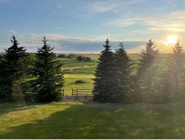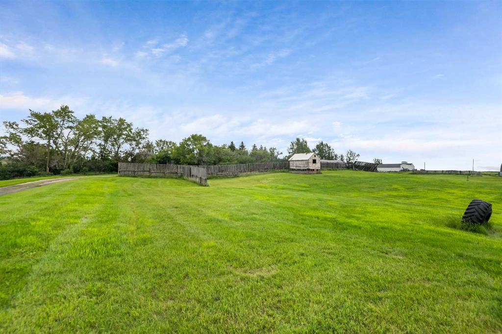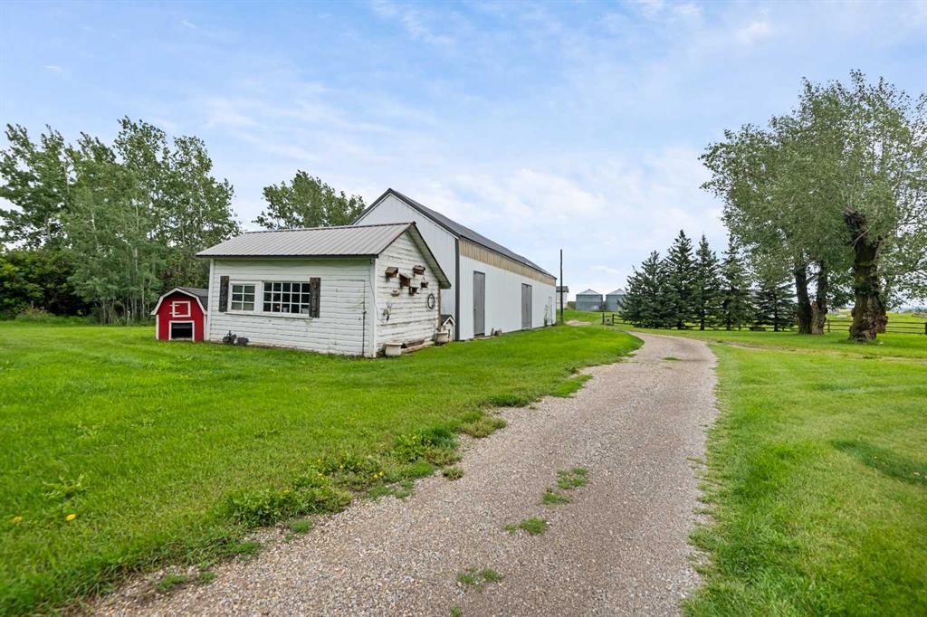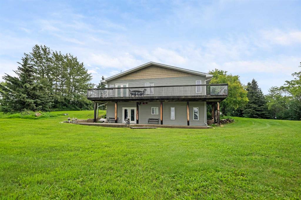 43 Acres – Madden Acreage – FOR SALE! Located just west of Madden and just 30 minutes to Calgary! This property is a serious contender for those wanting a private, upgraded property with close commuting to all major routes and communities surrounding Calgary! This gem has great mature trees and yard, and a clean and well-maintained home. The 4000 plus sq. ft walkout bungalow offers features like 5 bedroom’s, 4 baths, large mud room & laundry on the main, just off the triple attached heated garage! Vaulted ceilings, skylights, granite counter tops, modern appliances thru-out. This country home boasts of added bonuses, like Central Air Conditioning, additional laundry hook-ups downstairs, tons of storage in and out of the house. There is approx. 20 acres under cultivation, and easy to upgrade to your choice of hay. The pasture has a seasonal creek running thru it and a dugout(pond) was licensed for fish! This property has been part of the 100 year old family farm and was a purebred cattle operation at one time. So, there are remnants of old corrals and automatic livestock waterer’s still in place. There are 2 water wells on the property, one for the house and the other for livestock (although not hooked up at this time). This would make an ideal horse operation or any kind of livestock facility. Come have a look as there’s not many like this around today!