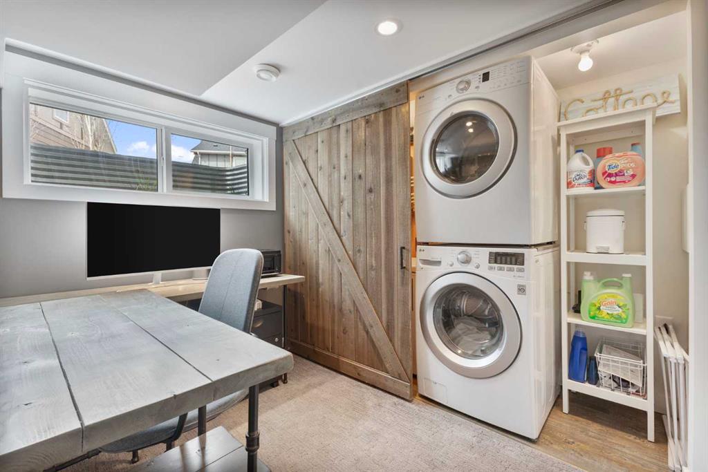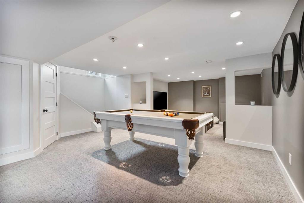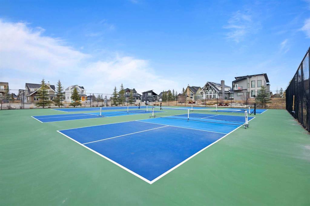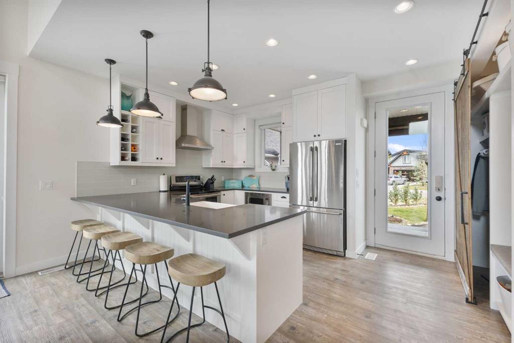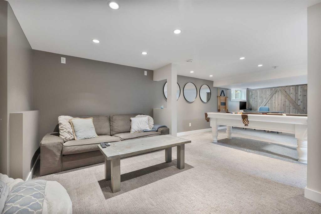 Upstairs, you’ll find a cozy bunk room that sleeps four, perfect for kids or guests, alongside the primary bedroom and a 3-piece bathroom. The fully finished basement extends your living space with a generous recreation room and hosts the laundry area, offering both comfort and practicality. The magic continues outdoors where a wraparound deck invites you to host unforgettable gatherings under the stars. Lounge by the second wood-burning fireplace, unwind in the inflatable hot tub, or simply soak in the peaceful surroundings of this dark sky community. A separate carriage house offers even more flexibility, featuring its own coffee bar, queen sized bunk beds, and another 3-piece bathroom – perfect for hosting extended family, guests, or creating a private retreat space. As part of this exclusive lakeside community, you’ll enjoy unmatched amenities including lake access, an indoor pool, hot tub, tennis courts, fitness facility, community dock, kitchen, and beach volleyball courts – all set against the stunning backdrop of the Rocky Mountains.