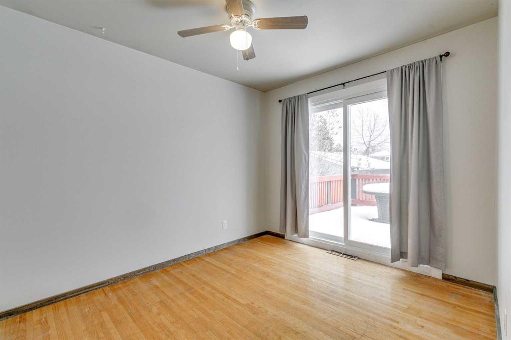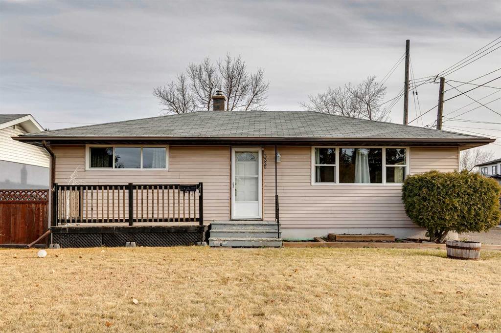 Welcome to a solid bungalow on a fantastic corner lot in Glenbrook—perfectly positioned with paved lanes on two sides and just steps from the community centre. This home offers a practical layout that feels open and comfortable the moment you step inside, while fresh paint provides a clean slate for any new homeowner. A small entry area keeps jackets and shoes organized before you move into the bright living room, where large windows, a detailed ceiling design, and a wraparound flow toward the dining area help the space feel connected and social. The dining room includes a built-in cabinet for added function, and the kitchen features a pass-through opening to the living room plus extra storage. Down the hallway, the primary bedroom provides plenty of room and closet space, while the second bedroom features sliding doors leading directly to the back deck—great for airflow and easy outdoor access. A shared 4-piece bathroom completes the main floor.