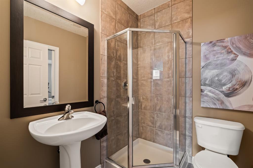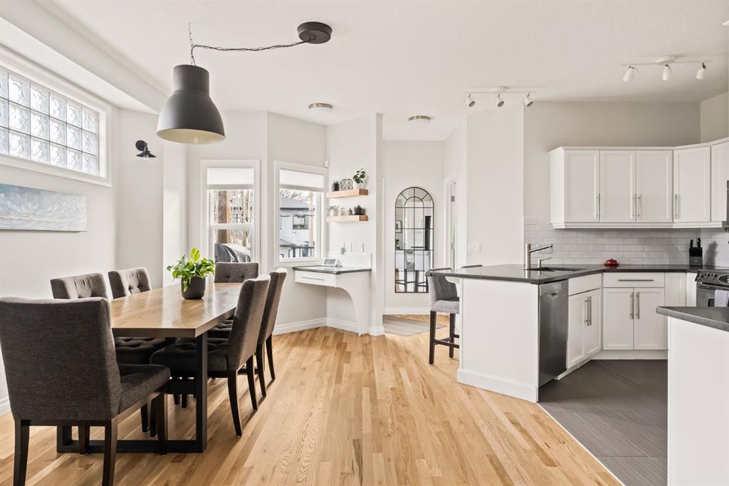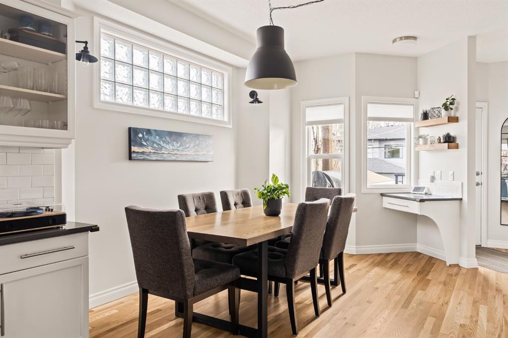 **OPEN HOUSE SATURDAY APRIL 25 12-2pm.** Tired of seeing the same infill over and over again? This might be the one for you! Offering nearly 2,400 square feet of thoughtfully designed living space across three levels, this 4-bedroom, 3.5-bathroom home blends charm with modern upgrades that make it truly move-in ready. Step through the welcoming covered front entry and into a bright, open main floor where freshly refinished hardwood floors are the standout feature. The heart of the home is an open-concept kitchen, dining, and living area flooded with natural light and a 3 sided fireplace dividing the dining and living area. The kitchen features white cabinetry, dark quartz countertops, subway tile backsplash, an extended counter area with breakfast bar seating, stainless steel appliances and a good size corner pantry. The adjacent dining area easily accommodates a large family table, while the spacious living room offers glass block windows for added natural light without sacrificing privacy, and room for everyone to gather. The main floor also features a powder room and laundry area with a newer washer/dryer (2024). Upstairs, the primary suite is a true retreat with french doors, a bold designer accent wall, generous walk in closet space, and a private ensuite that was completely renovated in May 2025 with a double vanity and a glass-enclosed shower and new window. Two additional well-sized bedrooms both with ample closet space, large windows and a shared 4 piece bath complete the upper level. The fully finished basement doesn’t feel like a basement with large windows looking out to the backyard. The basement adds valuable living space with a fourth bedroom and an additional full bathroom, perfect for guests, teenagers, or a home office setup. There is additional storage in the utility room and under the stairs. Outside, enjoy a private, fully fenced east facing backyard with low maintenance turf (August 2020), a newer composite deck with modern black railing (October 2020), ideal for summer entertaining. The deck is accessible directly from the main floor and offers views of the neighbourhood. Fresh paint throughout the home, refinished hardwood floors, and a welcoming curb appeal with a charming covered front porch and upper balcony make this infill stand out amongst the rest. All of this in Glenbrook, one of Calgary’s most family-friendly inner-west communities. Just minutes to the Glenbrook Community Association, 20 minute walk to the c-train, and close proximity to schools, parks, Westbrook Mall, and with quick access to downtown and the mountains this home is not to be missed!