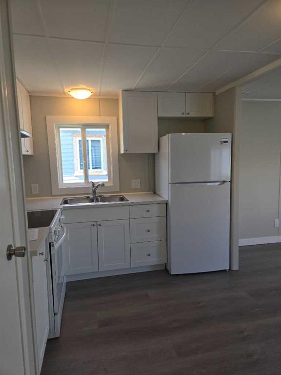 Fully renovated! Available immediately! Just 15% down will put you in this lovely, updated home. This single wide unit has been completely refurbished with stylish vinyl plank flooring throughout and completely repainted. The bright kitchen has 2 new appliances – fridge, stove. The exterior has been reclad in maintenance free vinyl siding. Newer, double paned vinyl windows add to the comfort. The yard offers room for kids or pets to run. There is a large shed for additional storage, a workshop, etc. Calgary Village is a quiet, family friendly community. Financing available upon approval. Lot fee is $1,348 permonth which includes water, sewer, garbage removal and clubhouse amenities. The clubhouse features a community gathering area with kitchen, a modern exercise room, an 8-ball pool table and games room plus common area playground and bbq area.