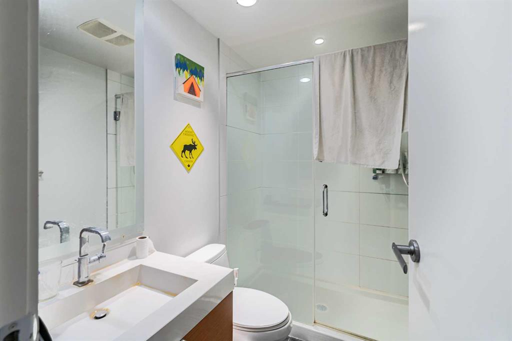 Fully furnished modern 1 bed/1bath condo unit on the “Flats Tower” of The Prestigious Waterfront Condo, Calgary’s upscale Downtown neighborhood. Open concept floor plan, 9′ ceilings, floor to ceiling windows. End unit & balcony is exposed to the view of the beautiful courtyard. Kitchen is fully equipped with high-end stainless steel appliances. Quartz central island & countertop. Full heights cabinetry. Bedroom has built-in head board, double bed-frame & 2 night tables. In-suite laundry & air conditioned. Unit includes an assigned parking stall & a storage locker. Enjoy living in a resort style building with superior amenities : concierge service, fitness facilities, hot tub, sauna, movie theatre, social lounge, outdoor garden patio, visitor parking & car wash. Move in & enjoy the lifestyle of a waterfront community along the Bow River & Princess Island Park. Walking distance to Downtown, Chinatown, East Village & Eau Claire Market, shops & restaurants. Bike or walk along the water path. Perfect for first time buyers or as an investment property. A great property to consider.