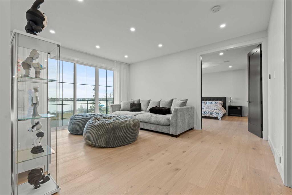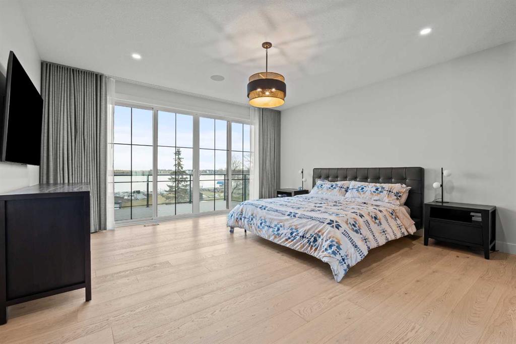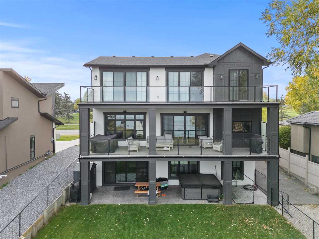 Discover the perfect blend of luxury and lakeside living at 336 West Chestermere Drive. This lakeside gem offers the ultimate retreat with stunning lake views and an array of premium upgrades throughout. Perfectly designed one of a kind home for those who love to entertain or simply savor serene lake living on one of the largest lots on the lake. This home will WOW you from the moment you walk in offering 4200 sqft of luxurious finishing. The main floor plan offers an open concept with 10’0 ceilings that gives you an unobstructed view of the 750 acre lake. Gourmet kitchen equipped with state-of-the-art appliances, custom cabinetry ,10’0 Island and a massive pantry not to forget the pot filling faucet. The mud room comes with built in cabinetry and coat racks leading you to a 4 Car garage with epoxy flooring (23×42) with a mezzanine for additional storage. There is also room to park 4 vehicles in the driveway. Enjoy the views of the golf course while working from the main floor den. Upstairs you will find a total of 4 bedrooms, 2 of which are primary suites with 2 more in the basement. The Grand Primary suite has in floor heating, a free standing tub, steam shower and a heated towel holder. Custom walk in in closets for every bedroom. There is a collection of 4.5 elegantly appointed bathrooms in this home. You will definitely want to take advantage of the upper and lower East Facing wrap around decks with gas hookups for heaters and barbecues. Enjoy listening to music from both the interior and exterior speakers. Laundry is conveniently located upstairs along with a bonus room with access to upper balcony. Downstairs you will find another recreation room with wet bar , 2 more bedrooms and 9 foot ceilings. Enjoy the natural light from all the windows on all 3 levels. and the high end blinds throughout. The walkout basement takes you to the fully landscaped yard with an irrigation system with mature trees and a new hot tub. There is a brand new dock and boat lift with a storage shed with electricity to store your summer toys. This truly is one of the best walkout lots on the lake that is turn-key move in ready and enjoy lake living. There is both a sea doo lift and a boat lift with remote to accommodate larger boats and keep them covered from the elements. This home is still covered under New Home Warranty. Call your Favourite realtor to view this amazing lakefront property as this one will not last!