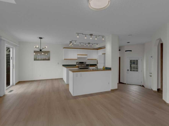 Welcome to 338 Georgian Villas, an adorable three-bedroom bi-level, that offers more than 1400 square feet of developed living space! This turnkey property is the perfect live-in or rent-out investment as it is beautifully updated, is in a well-managed complex with low condo fees and is located next to a plethora of amenities, parks, schools and the LRT station. This desirable residence is an end unit, which means it has no neighbours on one side! If you are an empty nester or are looking to downsize, this property offers ‘one level’ living. For a first-time buyer or those with growing families you will love the three spacious bedrooms, two full bathrooms and two separate living areas offered in this configuration! Plus, you do not have to compromise on your wish list as this residence has a fully fenced backyard, a gorgeous, developed basement, and two parking stalls with plug ins right at your front step! From the moment you enter, you will be impressed by the plethora of natural light and airy ambiance offered on the main. The care and pride of ownership is evident throughout the space. Walk through to the kitchen, which is timeless in design, featuring granite countertops, professional appliances, ample cabinet space, and an informal island perfect for cooking or entertaining! The kitchen, dining, and family room are open concept creating an unforgettable ambiance for friends and family! The main is completed by two generous bedrooms, both with spacious closets, and a beautiful four-piece bath with an extended granite vanity for your storage needs. Descend to your lower level which does not feel like a basement at all with its impressive ceiling height! You will love your expansive, open concept recreational room – perfect as a family room, gym, or games room. This level features a third bedroom that is remarkable in size – (illegal due to non-conforming window size) and guests have a private three-piece bath offered here too! The lower is completed with additional storage and laundry. Back upstairs, you can dream of summer nights with your loved ones in your private outdoor retreat. It is rare to find a townhome with a private fenced area, and this is perfect for those of you with furry friends or little ones (yes, this complex is pet friendly with board approval too). Just steps from your front door are your two private parking stalls and the area offers plenty of visitor parking for guests. This complex has had extensive updates in recent years – meaning a lot of the big-ticket items are done! The complex has newer Hardie board siding, roof, insulation, eavestroughs, and fences. This home is conveniently located near shopping and public transportation, with easy access to Stoney Trail. Four schools are within 400 meters, including CBE K-5, K-6, Junior High, and CCSB K-9, along with a community center. This townhome offers exceptional value and is perfect for those looking to right-size!