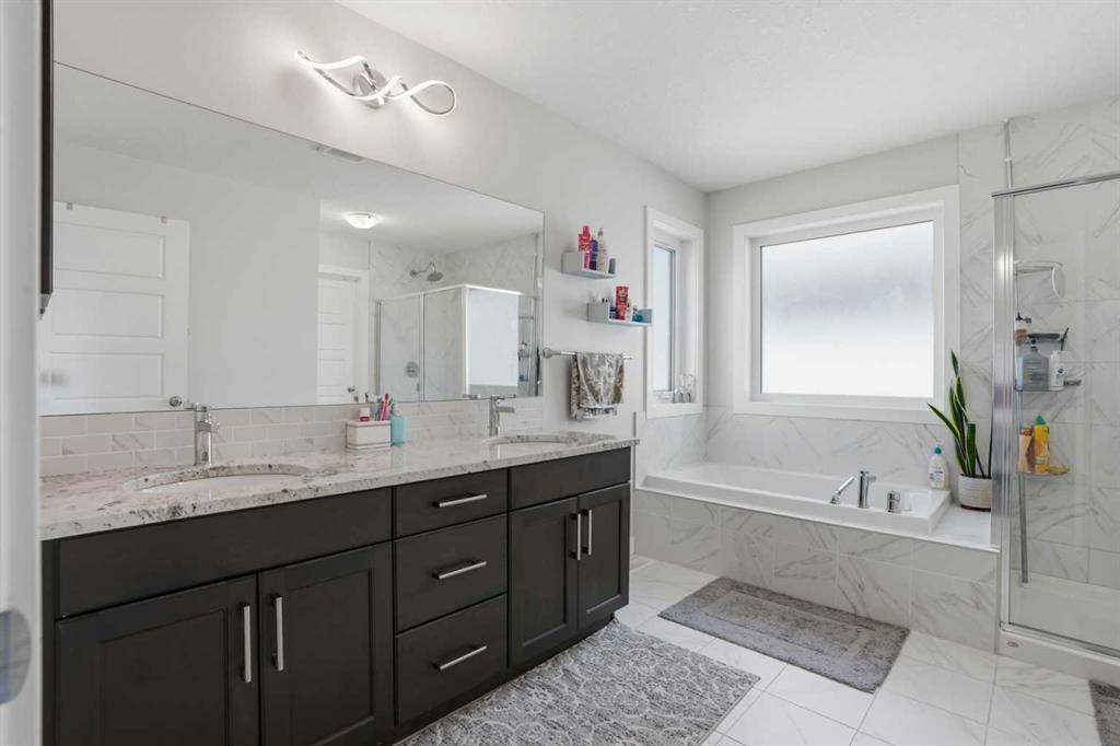 Upstairs, the well-designed layout continues with three generously sized bedrooms, including a comfortable primary bedroom with a deep walk-in closet and 5pc ensuite bath. The ensuite has dual vanities, a deep soaking tub, walk-in shower and private washing closet. Bedrooms 2 & 3 share the main 4pc bath with a tub/shower combo. A versatile bonus room ideal for a media space or playroom, and a conveniently located laundry room. This level is thoughtfully separated to provide both privacy and functionality for families.