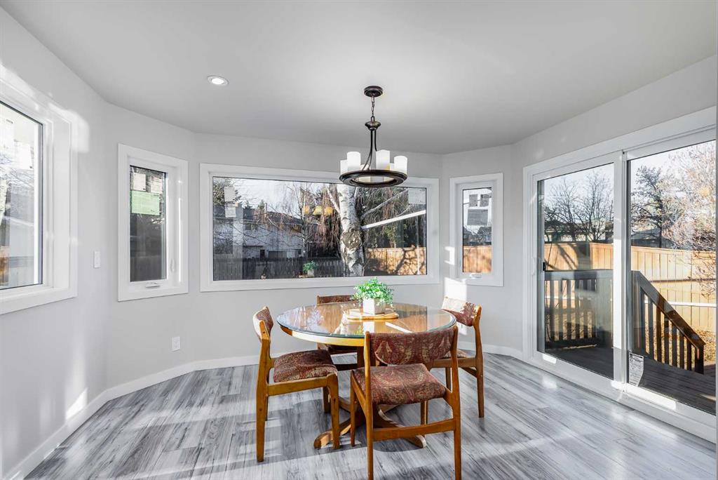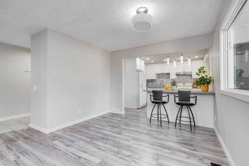 Located in the highly desirable community of Brentwood, this well-maintained bungalow sits on a pie-shaped lot and offers over 2,600 sq ft of developed living space. It features four bedrooms, three bathrooms, a single detached garage, and thoughtful updates throughout. The functional layout is complemented by a location known for both convenience and long-term value. A spacious entryway welcomes you inside, opening to vinyl plank flooring and an open-concept kitchen, living, and dining area. Large windows draw in natural light, creating a bright and comfortable setting for everyday living. The living room is anchored by a wood-burning fireplace, adding warmth and character. The kitchen is finished with white cabinetry, a modern backsplash, ample cupboard and counter space, and an island with seating that encourages casual meals and conversation. Adjacent to the main dining area, a second formal dining space offers flexibility for gatherings and features sliding doors that lead directly to the back deck. The primary bedroom includes a bay window and a private four-piece ensuite. A pocket door separates the tub and shower from the toilet and sink area, providing added privacy and function. Two additional bedrooms and a three-piece bathroom with a shower complete the main level, offering practical accommodation for family members or guests. Downstairs, the fully developed basement expands the living space with a large recreation room suited for movie nights, hobbies, or a play area. An additional bedroom provides options for guests, a home office, or a gym. A three-piece bathroom with a shower, dedicated laundry area, and a massive storage room with an attached cold room add to the home’s usability. The backyard includes a deck, brick patio, grassy area, and mature trees and shrubs that provide privacy. At the front of the home, the single detached garage is paired with a driveway for convenient off-street parking. Significant updates include renovations completed in 2021, along with new windows installed throughout the home in 2025. Air conditioning ensures comfort during the summer months. Brentwood is known for its established streets, convenient amenities, and proximity to nature. This home is steps to Nose Hill Park and close to schools, parks, and playgrounds, including Dr. E.W. Coffin School. Shopping and services are nearby at Northland Mall, Brentwood Village Shopping Centre, University District, and Dalhousie Station. With easy access to Crowchild Trail, transit options, and quick connections to the University of Calgary, SAIT, hospitals, and downtown, the location supports both daily commuting and long-term investment value. Take advantage of your opportunity to see this incredible property in person, book your showing today! Be sure to check out the floor plans and 3D tour for a closer look before your visit.