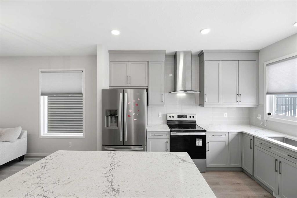 Introducing a distinguished, design-forward residence in the prestigious community of Glacier Ridge NW, Calgary, offering over 2,400 sq ft of impeccably curated living space. This 6-bedroom, 4-bathroom estate seamlessly blends architectural sophistication with modern functionality, complete with a fully legal 2-bedroom private suite—an exceptional opportunity for refined multi-generational living or executive-level income potential. The main level is a statement in elegance, defined by soaring 9’ ceilings, expansive light-filled windows, and flawless luxury vinyl plank flooring. At its heart, a chef’s designer kitchen showcases premium countertops, bespoke cabinetry with crown detailing, and a suite of stainless steel appliances, all flowing effortlessly into a warm, inviting living space. A main floor bedroom and full bath offer versatility with elevated comfort. Upstairs, the home reveals a serene primary retreat, complete with a spa-caliber ensuite featuring a walk-in shower and dual vanity, accompanied by generously proportioned 2 secondary bedrooms, laundry Room, main bathroom and a sophisticated bonus lounge designed for relaxation or entertainment. The private legal suite is thoughtfully appointed with its own custom kitchen, separate laundry, full bath, and two bedrooms, delivering a turnkey, income-generating experience without compromise. Outdoors, a sun-drenched east-facing backyard and elegant deck create a tranquil setting for morning light and refined outdoor living, complemented by double detached garage. Perfectly positioned with effortless connectivity via Stoney Trail, Deerfoot Trail, Shaganappi Trail, and Sarcee Trail, and moments from premier retail destinations including CrossIron Mills and Beacon Hill Shopping Centre.