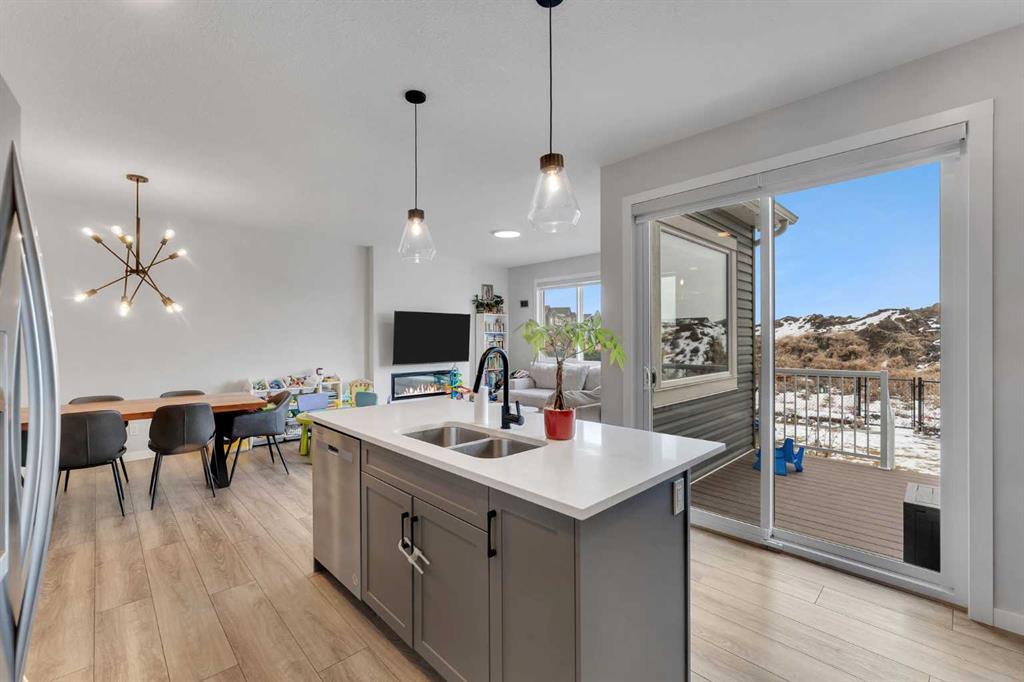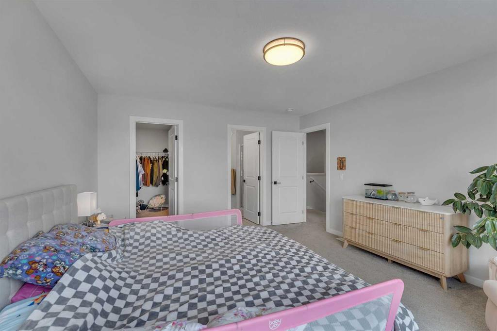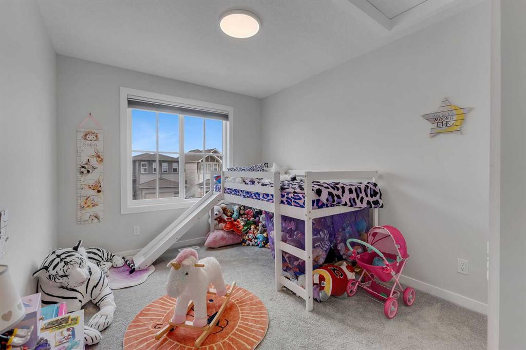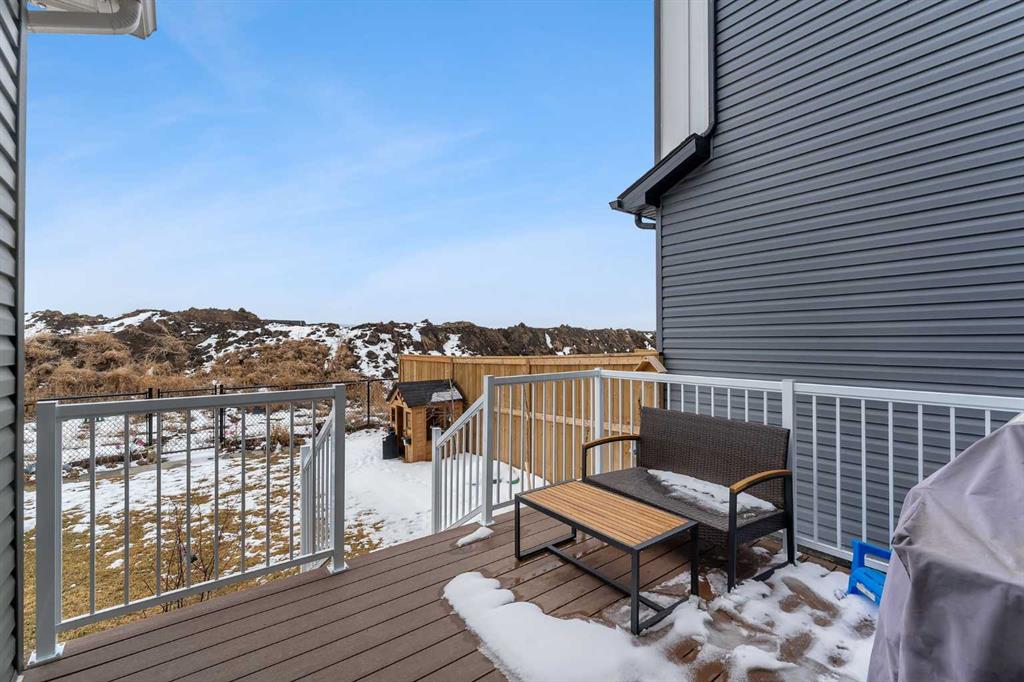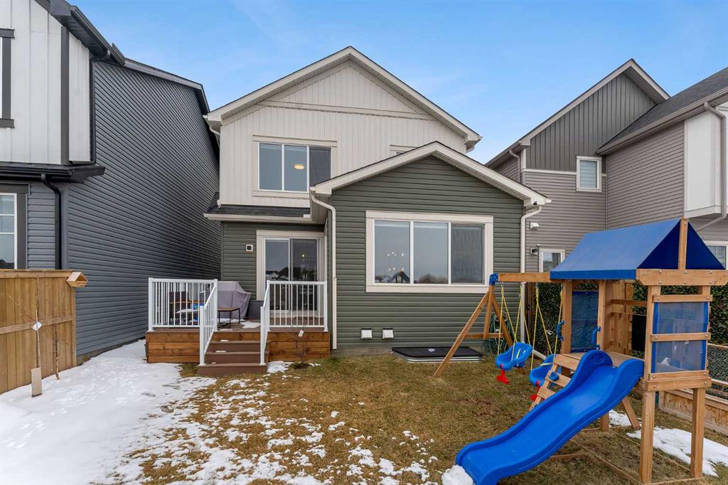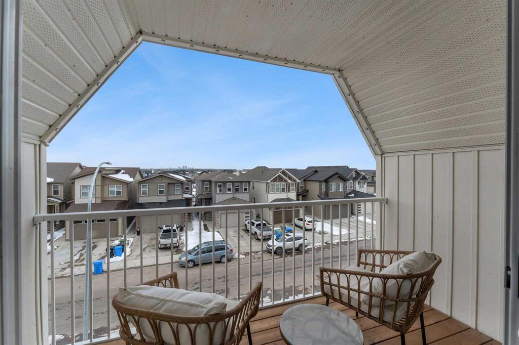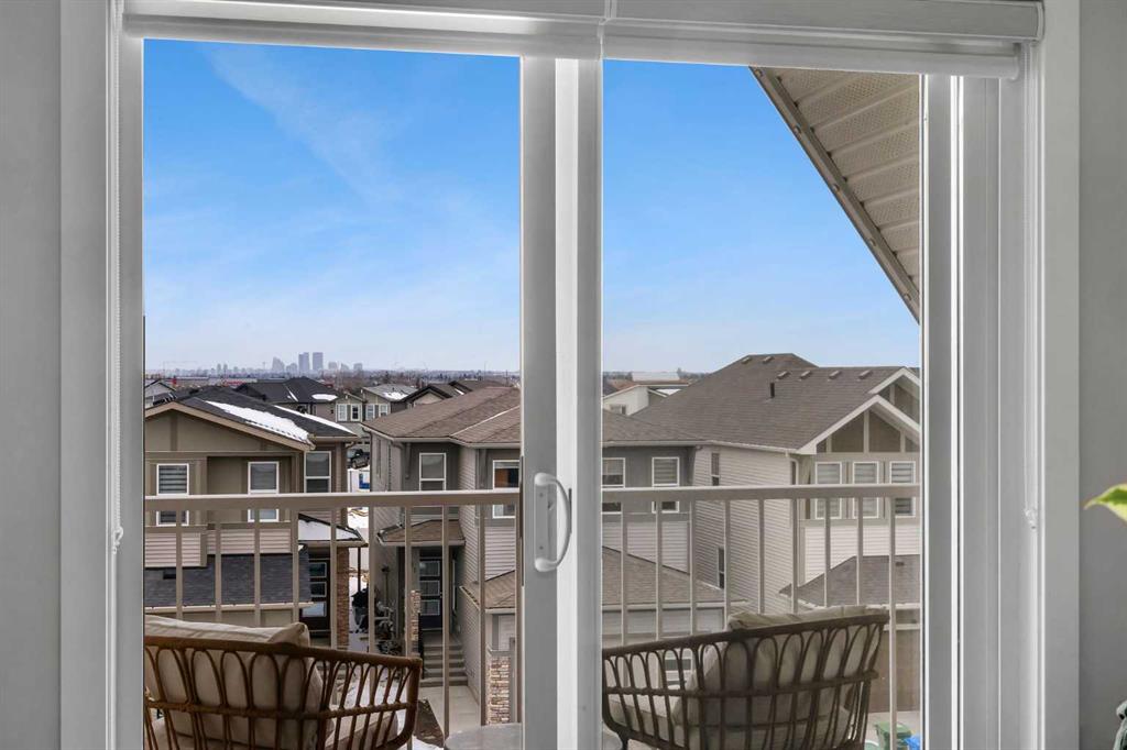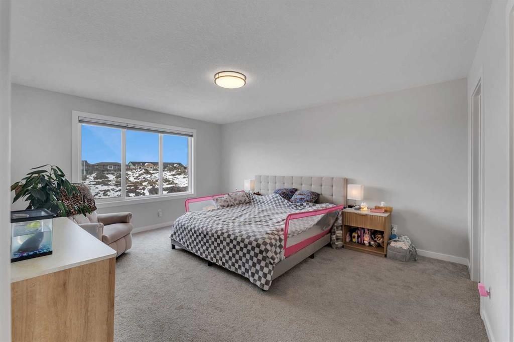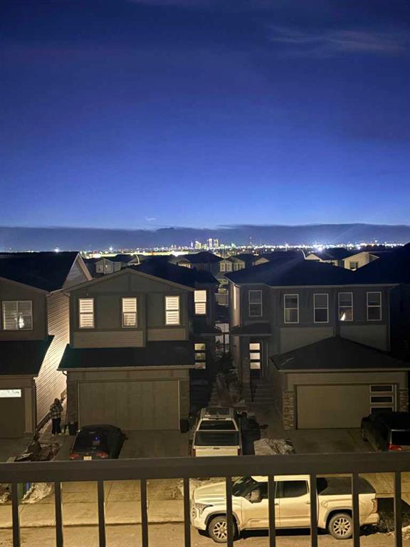 BACKING ONTO GREEN SPACE!! OVERSIZED HEATED DOUBLE ATTACHED GARAGE!! CITY SKYLINE VIEWS FROM THIRD-FLOOR BALCONY!! EXTENDED CONCRETE DRIVEWAY!! FULLY LANDSCAPED & FENCED!! IRRIGATION SYSTEM!! 5 BEDROOMS!! 3.5 BATHS!! 2688+ SQFT OF LIVING SPACE!! Beautifully maintained and thoughtfully upgraded, this home in Belvedere offers a perfect blend of space, comfort, and modern features. The main floor features an open-concept layout with a bright living area, spacious dining, and a well-appointed kitchen complete with a central island, pantry, and direct access to the COMPOSITE DECK. The deck area has been enhanced with a fully enclosed and stained lower section, adding both function and a clean finished look. A 2-piece bath completes this level. Upstairs, you will find 4 well-sized bedrooms, 2 full bathrooms, and convenient upper-floor laundry. The PRIMARY BEDROOM features a walk-in closet and a 4-piece ensuite with DOUBLE VANITY. All bedrooms include BLACKOUT BLINDS, while the main floor is upgraded with REMOTE-CONTROLLED ZEBRA BLINDS for added comfort and privacy. The top level offers a versatile bonus area, a full bathroom, and a 5th bedroom (currently used as an office). Step out onto the PRIVATE BALCONY and enjoy stunning CITY SKYLINE VIEWS — including seasonal fireworks during Stampede and GlobalFest. The loft patio has also been professionally stained, enhancing durability and aesthetics. This property is fully landscaped and fenced, complete with a LOCKING GATE, irrigation system (WiFi-controlled), and a beautifully finished side pathway. Additional upgrades include WINDOW WELL COVERS, PERMANENT EXTERIOR LED LIGHTING (app-controlled with multiple colour modes), CENTRAL A/C, and built-in GARAGE SHELVING. Backing directly onto green space and located just minutes from a future school site, this home combines location, upgrades, and lifestyle in one exceptional offering. RARE OPPORTUNITY IN BELVEDERE WITH PREMIUM UPGRADES, VIEWS, AND GREEN SPACE BACKING!!