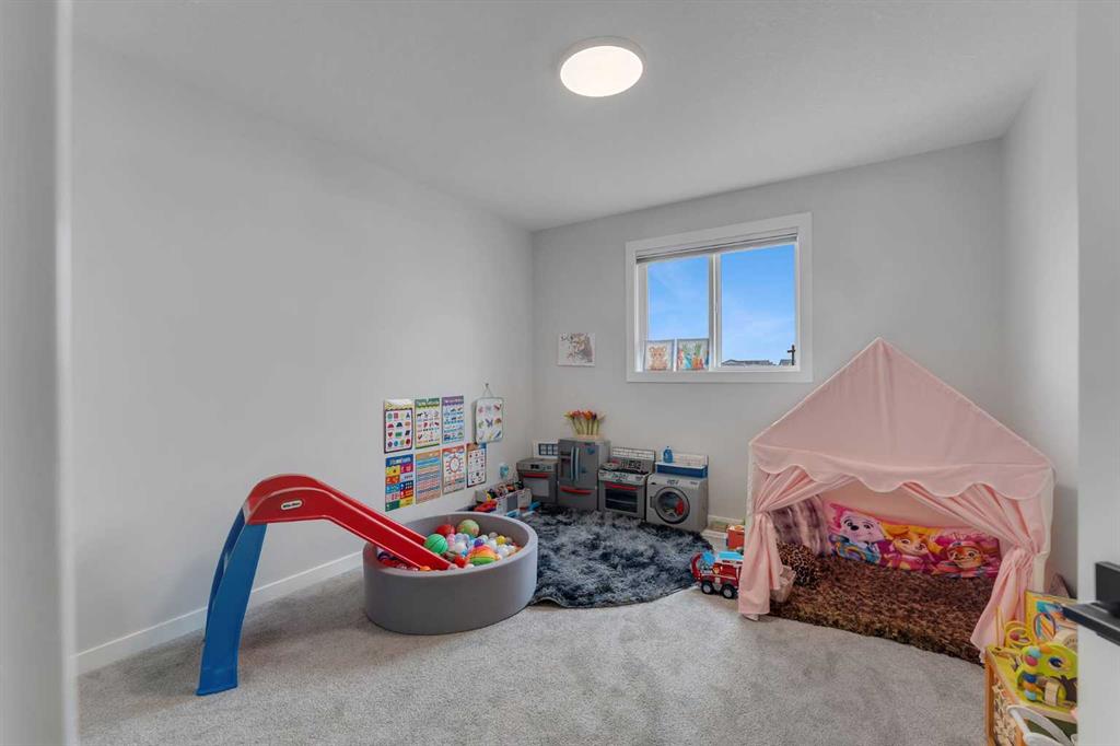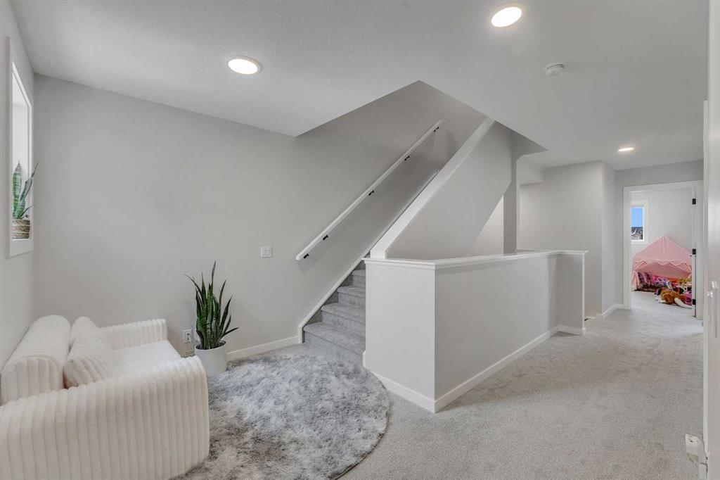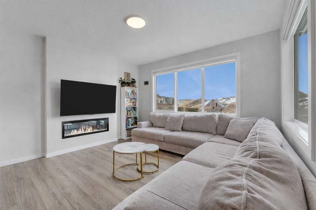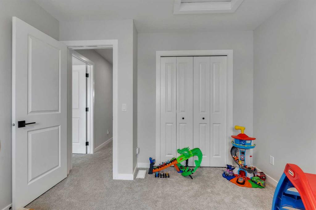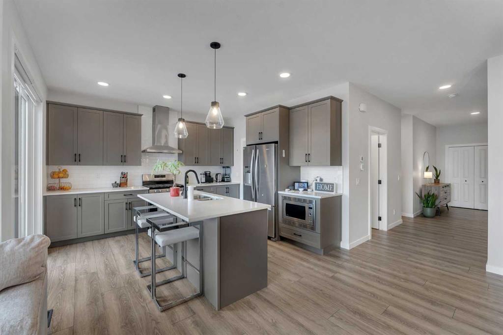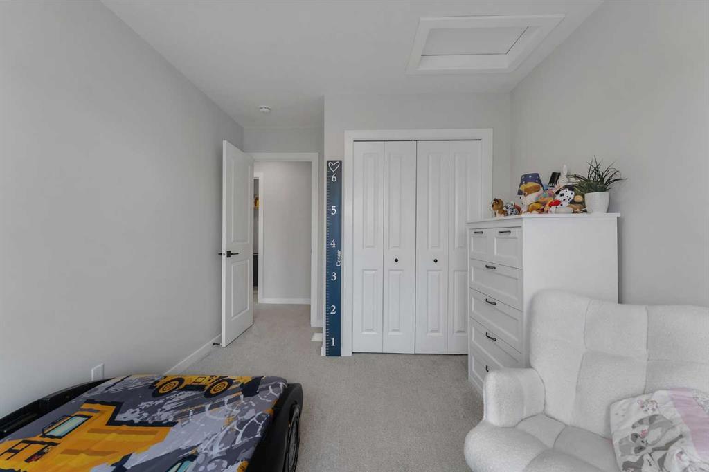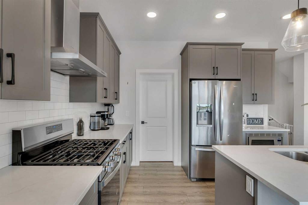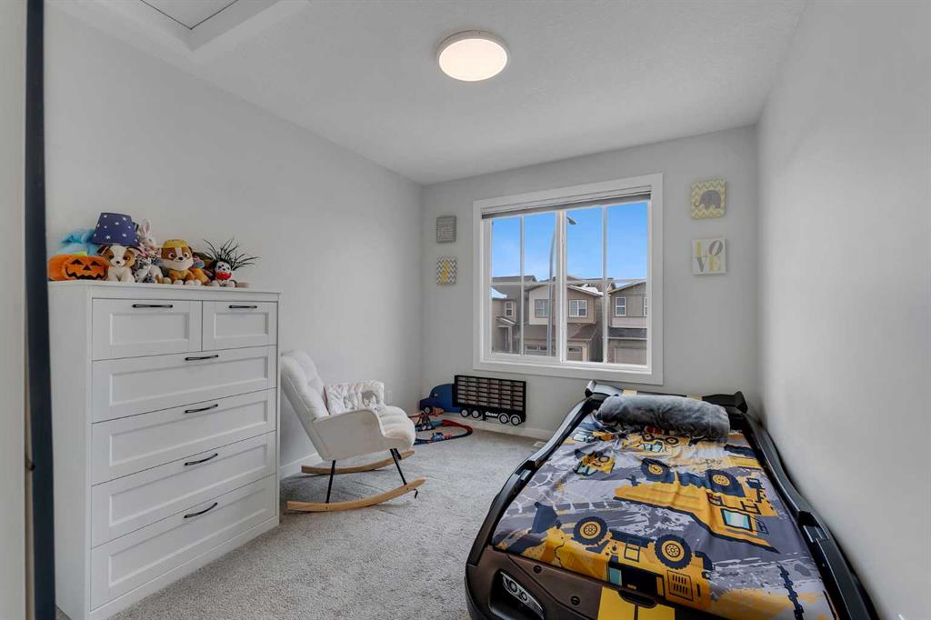 BACKING ONTO GREEN SPACE!! OVERSIZED HEATED DOUBLE ATTACHED GARAGE!! CITY SKYLINE VIEWS FROM THIRD-FLOOR BALCONY!! EXTENDED CONCRETE DRIVEWAY!! FULLY LANDSCAPED & FENCED!! IRRIGATION SYSTEM!! 5 BEDROOMS!! 3.5 BATHS!! 2688+ SQFT OF LIVING SPACE!! Beautifully maintained and thoughtfully upgraded, this home in Belvedere offers a perfect blend of space, comfort, and modern features. The main floor features an open-concept layout with a bright living area, spacious dining, and a well-appointed kitchen complete with a central island, pantry, and direct access to the COMPOSITE DECK. The deck area has been enhanced with a fully enclosed and stained lower section, adding both function and a clean finished look. A 2-piece bath completes this level. Upstairs, you will find 4 well-sized bedrooms, 2 full bathrooms, and convenient upper-floor laundry. The PRIMARY BEDROOM features a walk-in closet and a 4-piece ensuite with DOUBLE VANITY. All bedrooms include BLACKOUT BLINDS, while the main floor is upgraded with REMOTE-CONTROLLED ZEBRA BLINDS for added comfort and privacy. The top level offers a versatile bonus area, a full bathroom, and a 5th bedroom (currently used as an office). Step out onto the PRIVATE BALCONY and enjoy stunning CITY SKYLINE VIEWS — including seasonal fireworks during Stampede and GlobalFest. The loft patio has also been professionally stained, enhancing durability and aesthetics. This property is fully landscaped and fenced, complete with a LOCKING GATE, irrigation system (WiFi-controlled), and a beautifully finished side pathway. Additional upgrades include WINDOW WELL COVERS, PERMANENT EXTERIOR LED LIGHTING (app-controlled with multiple colour modes), CENTRAL A/C, and built-in GARAGE SHELVING. Backing directly onto green space and located just minutes from a future school site, this home combines location, upgrades, and lifestyle in one exceptional offering. RARE OPPORTUNITY IN BELVEDERE WITH PREMIUM UPGRADES, VIEWS, AND GREEN SPACE BACKING!!