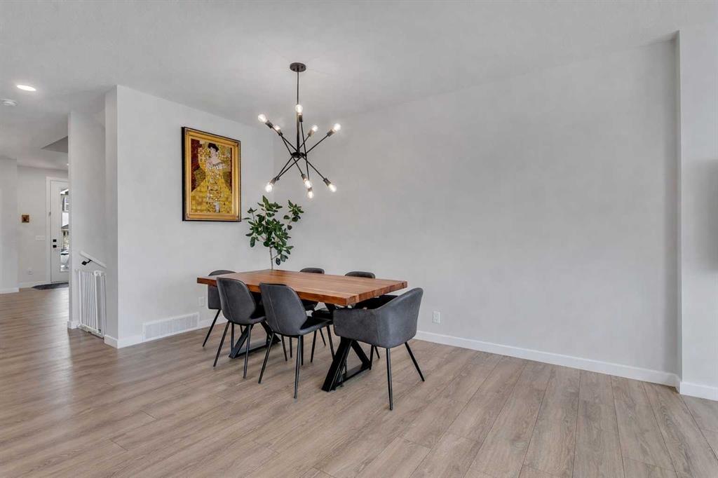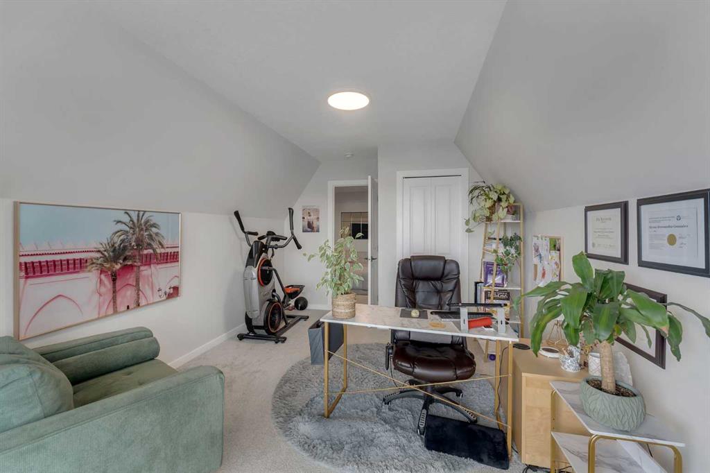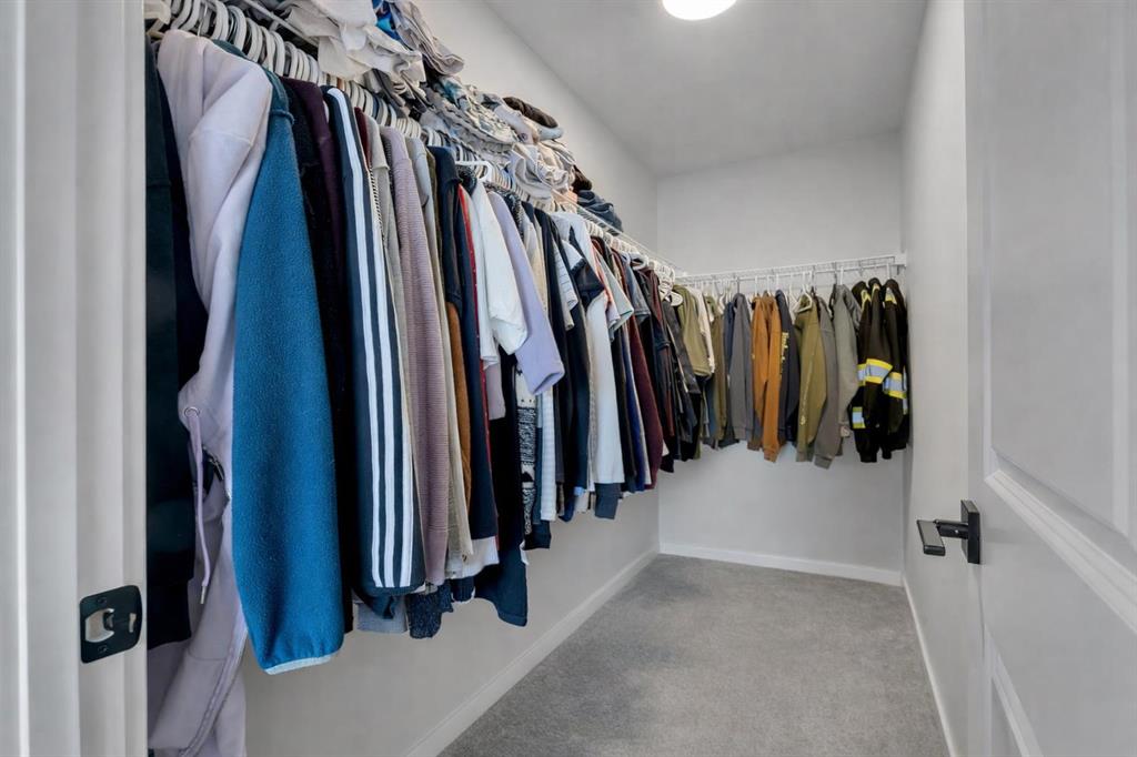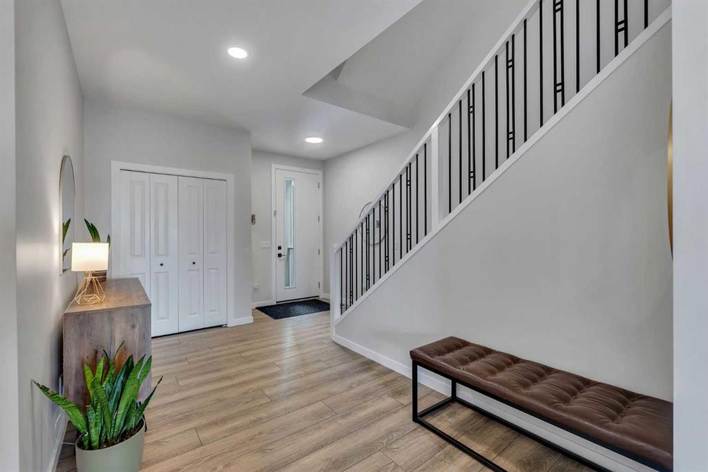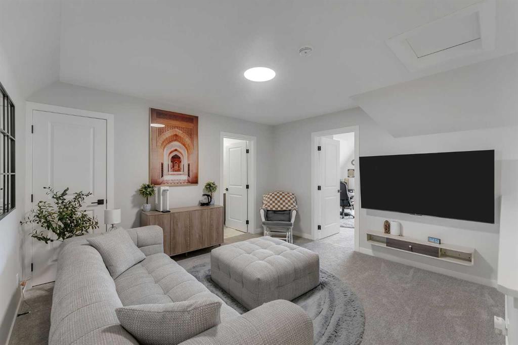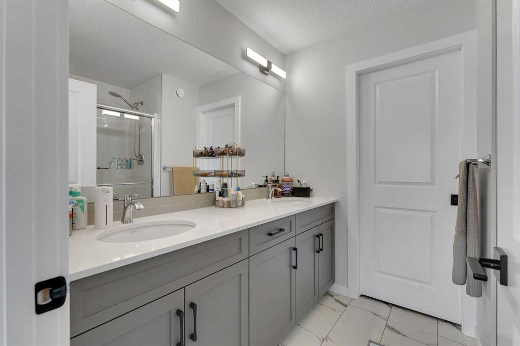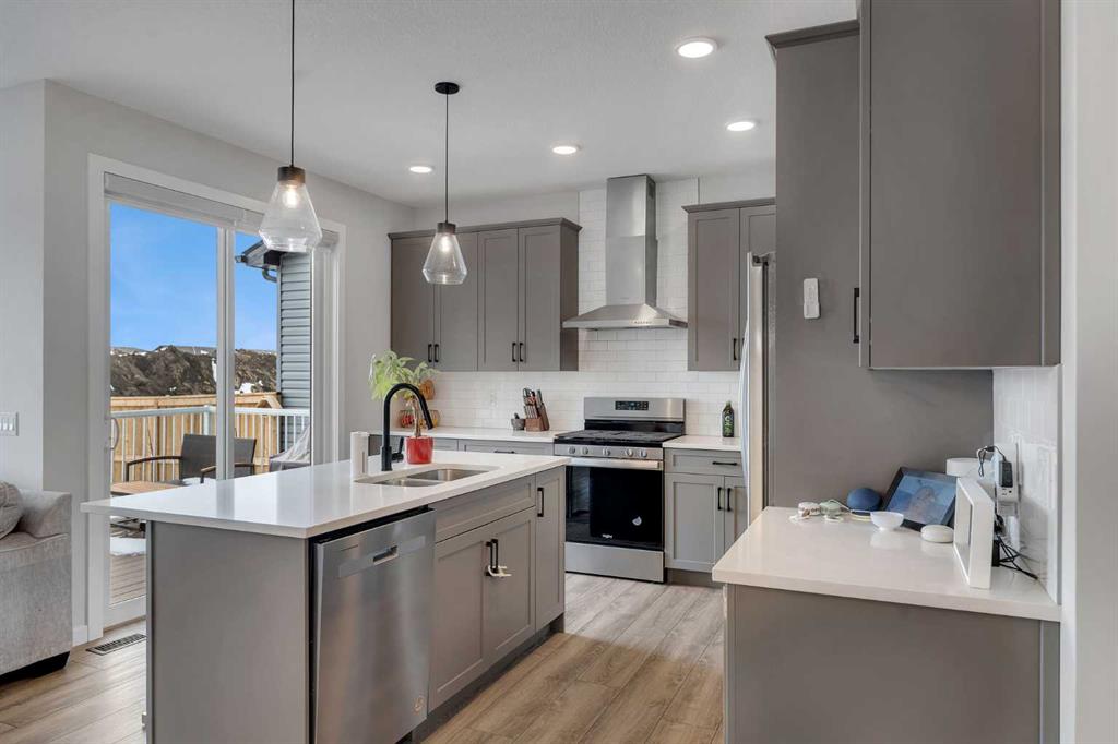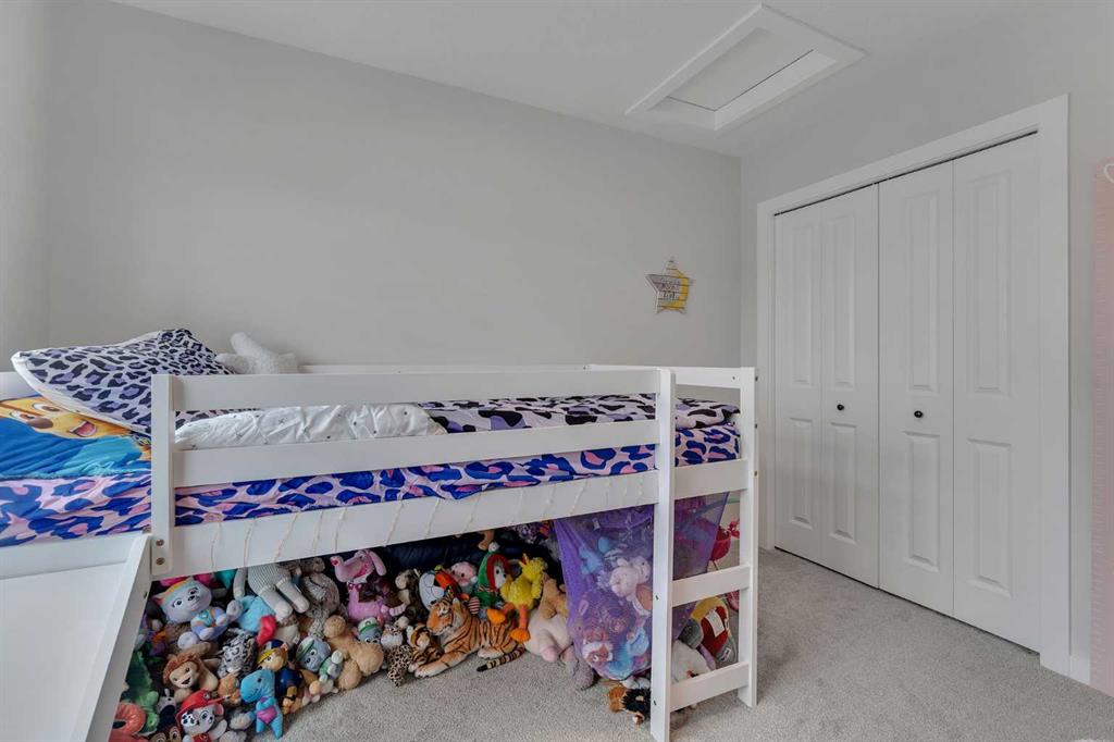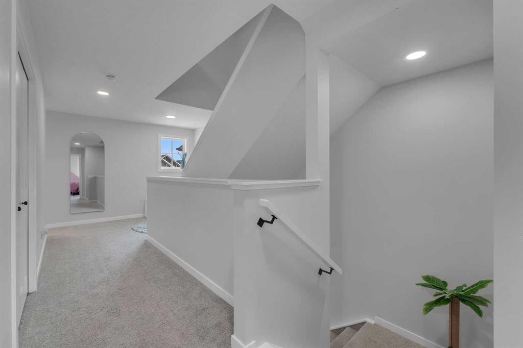 BACKING ONTO GREEN SPACE!! OVERSIZED HEATED DOUBLE ATTACHED GARAGE!! CITY SKYLINE VIEWS FROM THIRD-FLOOR BALCONY!! EXTENDED CONCRETE DRIVEWAY!! FULLY LANDSCAPED & FENCED!! IRRIGATION SYSTEM!! 5 BEDROOMS!! 3.5 BATHS!! 2688+ SQFT OF LIVING SPACE!! Beautifully maintained and thoughtfully upgraded, this home in Belvedere offers a perfect blend of space, comfort, and modern features. The main floor features an open-concept layout with a bright living area, spacious dining, and a well-appointed kitchen complete with a central island, pantry, and direct access to the COMPOSITE DECK. The deck area has been enhanced with a fully enclosed and stained lower section, adding both function and a clean finished look. A 2-piece bath completes this level. Upstairs, you will find 4 well-sized bedrooms, 2 full bathrooms, and convenient upper-floor laundry. The PRIMARY BEDROOM features a walk-in closet and a 4-piece ensuite with DOUBLE VANITY. All bedrooms include BLACKOUT BLINDS, while the main floor is upgraded with REMOTE-CONTROLLED ZEBRA BLINDS for added comfort and privacy. The top level offers a versatile bonus area, a full bathroom, and a 5th bedroom (currently used as an office). Step out onto the PRIVATE BALCONY and enjoy stunning CITY SKYLINE VIEWS — including seasonal fireworks during Stampede and GlobalFest. The loft patio has also been professionally stained, enhancing durability and aesthetics. This property is fully landscaped and fenced, complete with a LOCKING GATE, irrigation system (WiFi-controlled), and a beautifully finished side pathway. Additional upgrades include WINDOW WELL COVERS, PERMANENT EXTERIOR LED LIGHTING (app-controlled with multiple colour modes), CENTRAL A/C, and built-in GARAGE SHELVING. Backing directly onto green space and located just minutes from a future school site, this home combines location, upgrades, and lifestyle in one exceptional offering. RARE OPPORTUNITY IN BELVEDERE WITH PREMIUM UPGRADES, VIEWS, AND GREEN SPACE BACKING!!