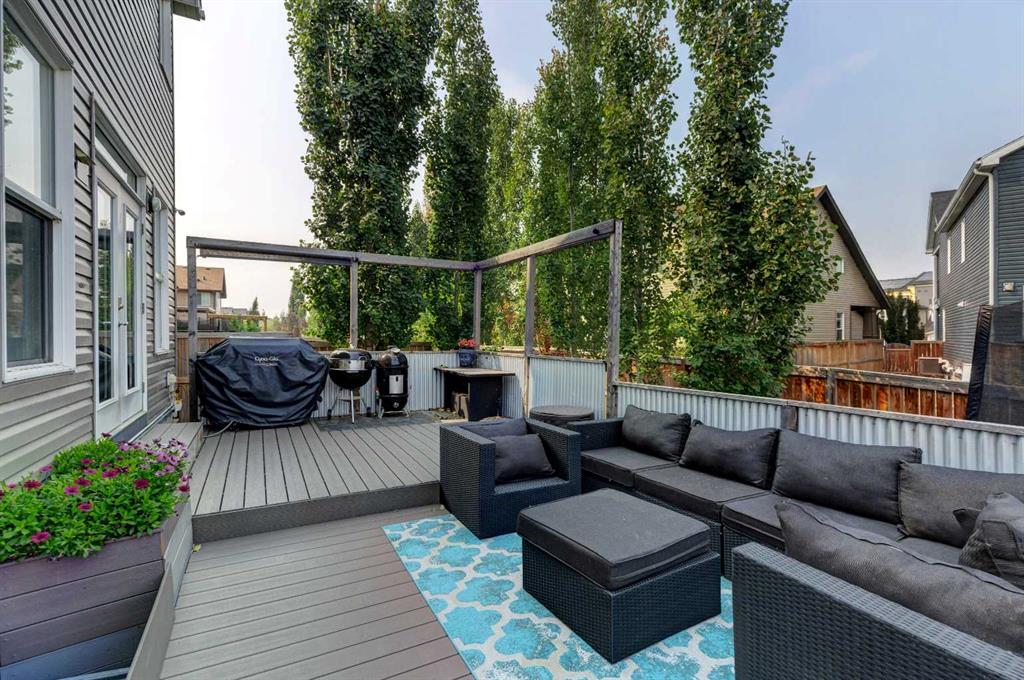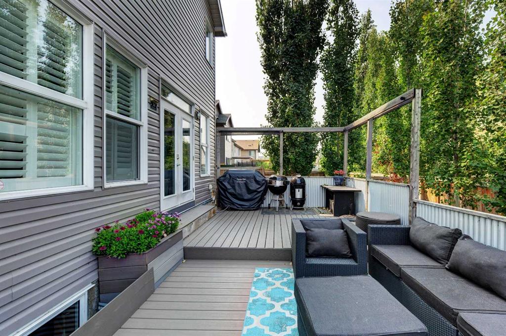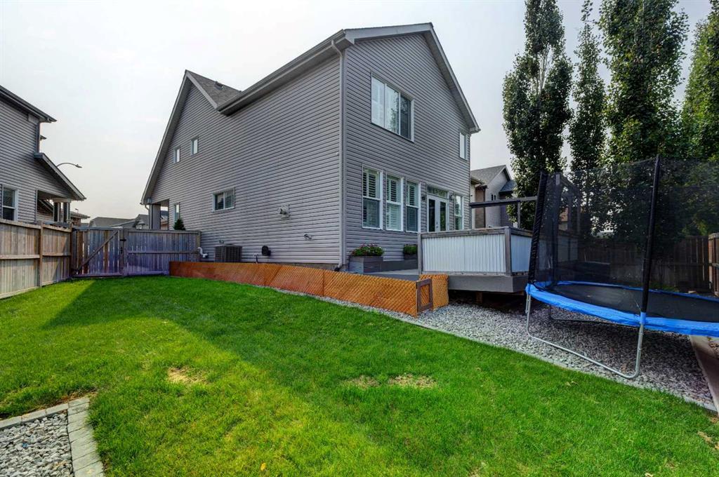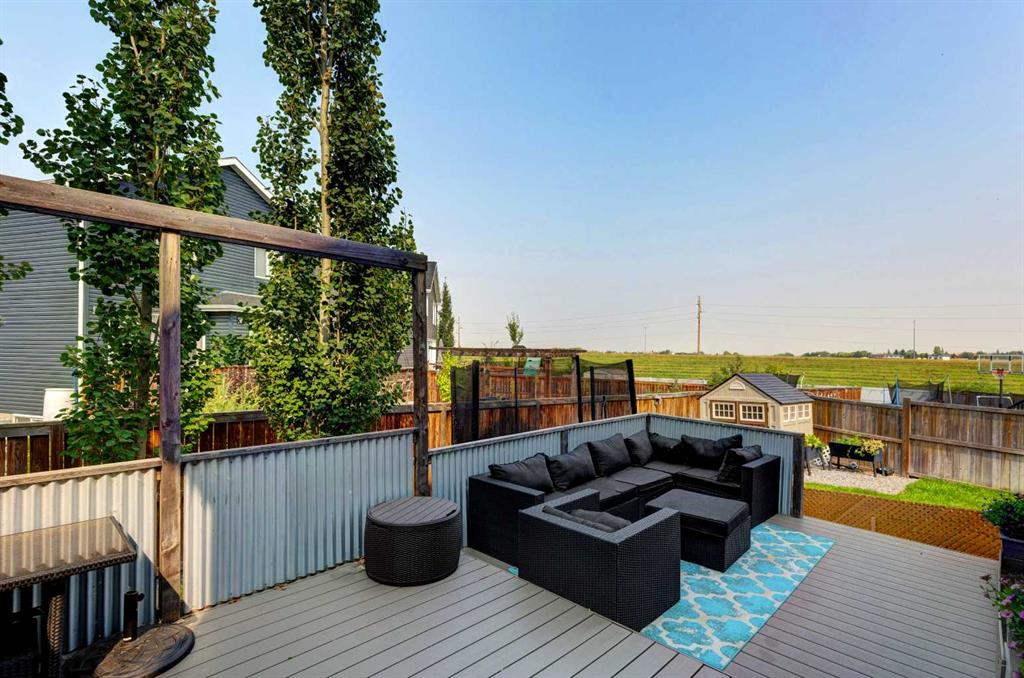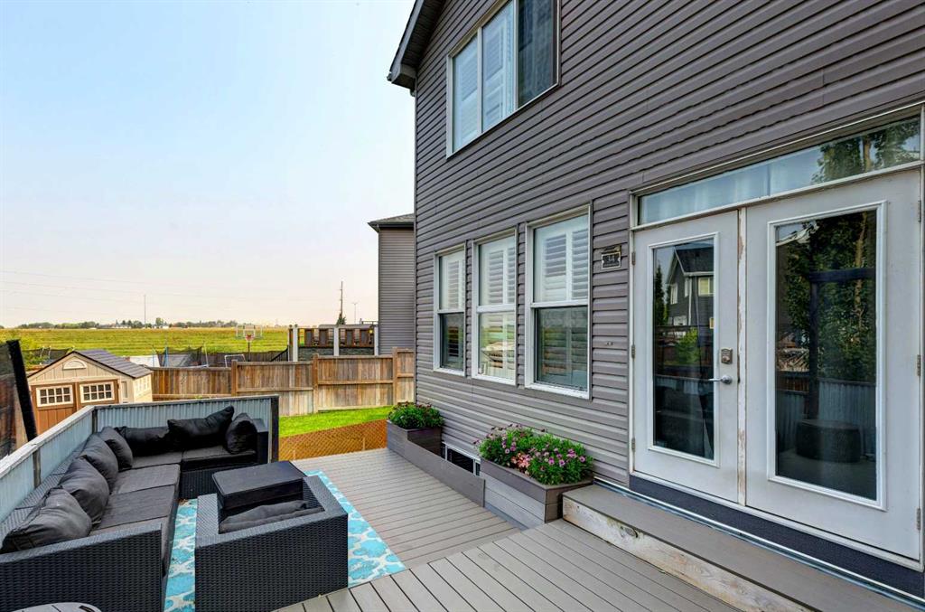 Wake up to stunning sunrises near the countryside in this beautifully upgraded, custom-built Stepper home in Copperfield. Filled with natural light throughout, the 2,356 sq ft home offers 4 bedrooms, a huge versatile bonus room, quartz countertops throughout, central air conditioning, and a heated oversized 24×20 garage. Step outside to a well designed and fully landscaped oversized pie-shaped lot with full irrigation, a large two level vinyl deck, and shed for extra storage. Move-in ready and thoughtfully upgraded, the open-concept main level features rich espresso hardwood and tile flooring, soft-close cabinetry throughout, and elegant custom shutters throughout the home. At the center is a chef’s kitchen with a large island, dual wall ovens, induction cooktop, built-in microwave, ultra-quiet Bosch dishwasher, built-in wine fridge, and quartz countertops—ideal for everyday cooking and entertaining. A beautiful great room with a modern fireplace is perfect to unwind at the end of the day. A private den with french doors, a perfect space for those who work from home. An elegant recently renovated powder room. The mudroom features a quartz countertop, a built-in providing storage and hooks, along with a large capacity Samsung steam laundry pair. Upstairs, the oversized bonus room provides a fantastic theatre space which is big enough for multi-use. The spacious master retreat at the back features large sleeping quarters, built-in his-and-her closet, his-and-her sinks, a soaker tub, and a separate shower, creating a luxurious private sanctuary. Three additional generously sized bedrooms, including one with its own walk-in closet share a well-appointed bathroom. The thoughtful upstairs layout provides privacy, comfort, and plenty of room for everyone, making this home perfect for families of all sizes. Additional upgrades among others include: a brand-new 50G John Wood hot water tank, Kinetico water softener, enhanced lighting with extra pot lights, and smart Nest thermostats. Ideally located close to schools, parks, and major roadways like Deerfoot Trail and Stoney Trail, this turnkey home blends comfort, style, and convenience in a vibrant, family-friendly community. With so much to offer at such a great price, it will not last so call today!