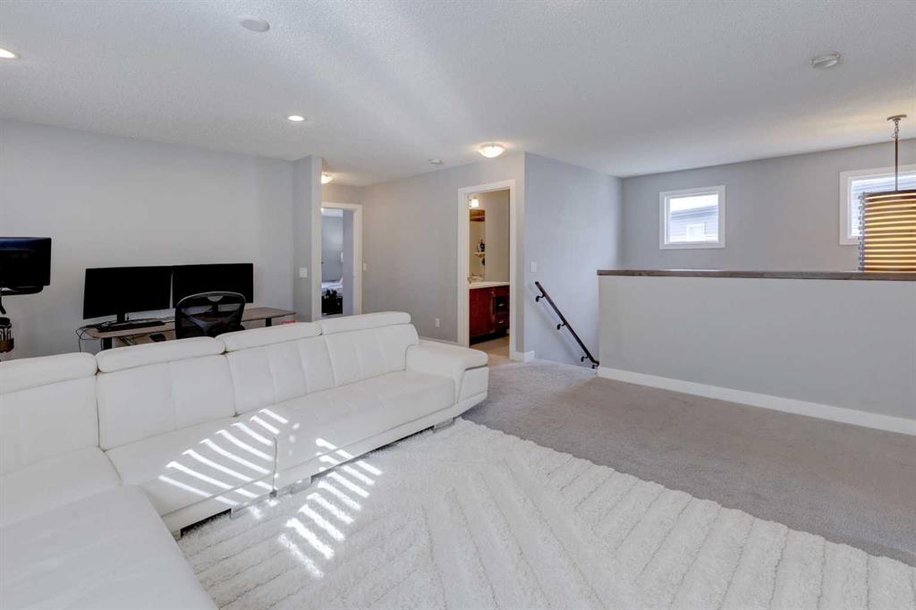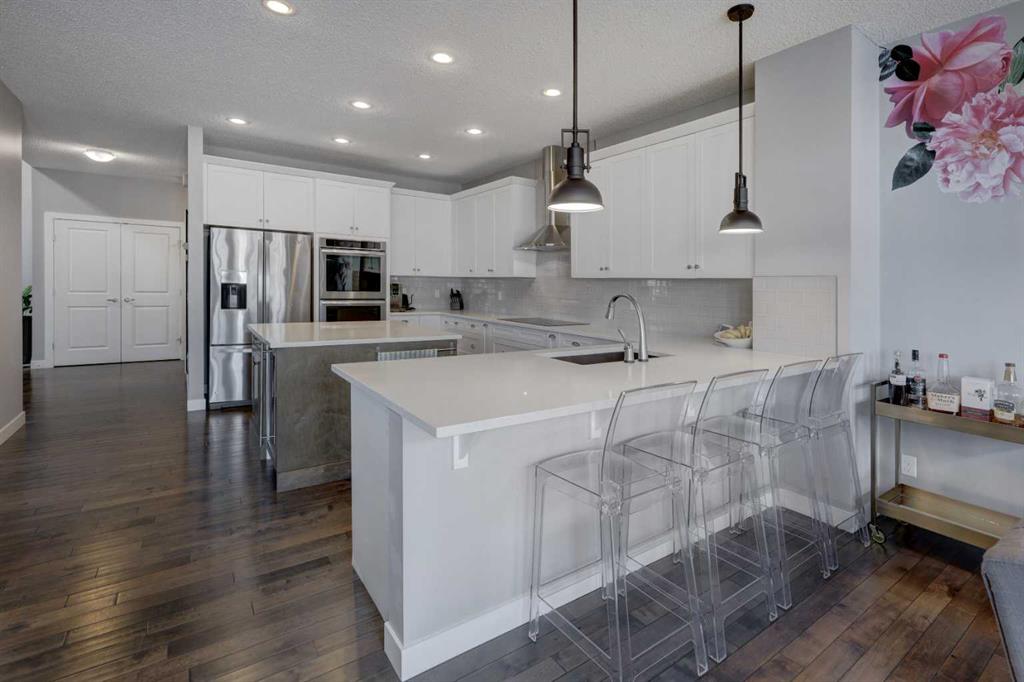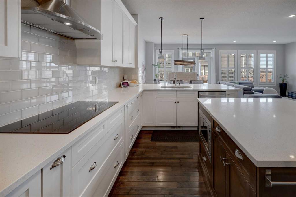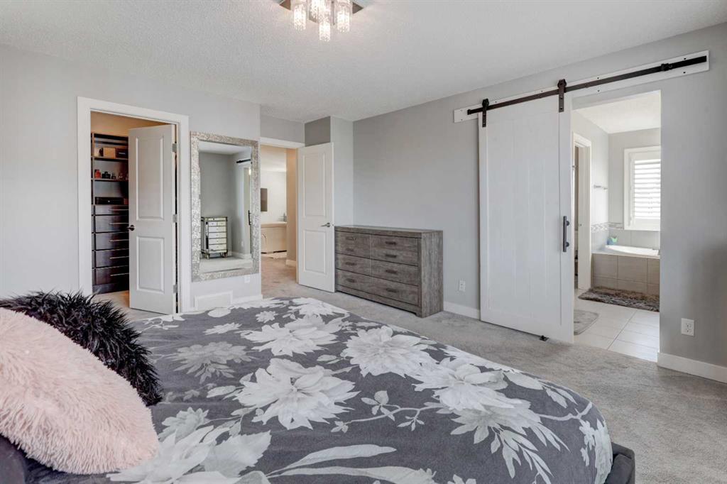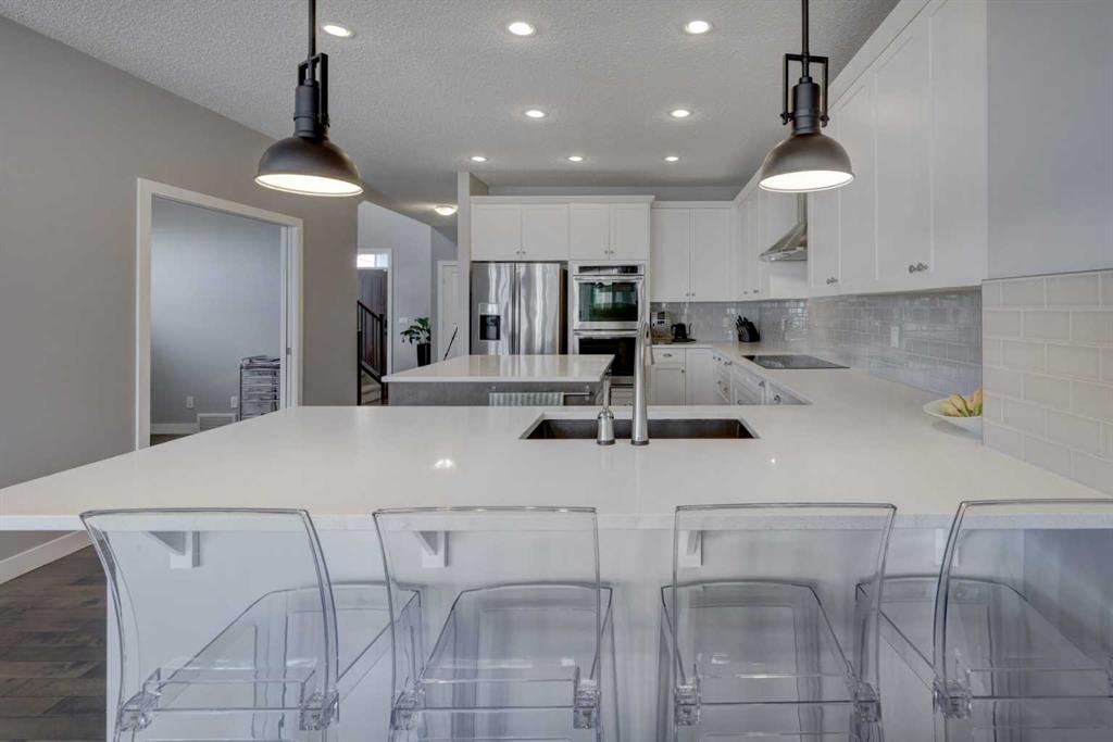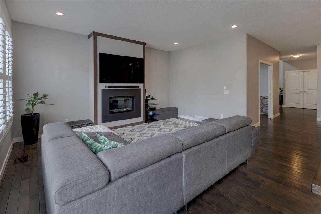 Wake up to stunning sunrises near the countryside in this beautifully upgraded, custom-built Stepper home in Copperfield. Filled with natural light throughout, the 2,356 sq ft home offers 4 bedrooms, a huge versatile bonus room, quartz countertops throughout, central air conditioning, and a heated oversized 24×20 garage. Step outside to a well designed and fully landscaped oversized pie-shaped lot with full irrigation, a large two level vinyl deck, and shed for extra storage. Move-in ready and thoughtfully upgraded, the open-concept main level features rich espresso hardwood and tile flooring, soft-close cabinetry throughout, and elegant custom shutters throughout the home. At the center is a chef’s kitchen with a large island, dual wall ovens, induction cooktop, built-in microwave, ultra-quiet Bosch dishwasher, built-in wine fridge, and quartz countertops—ideal for everyday cooking and entertaining. A beautiful great room with a modern fireplace is perfect to unwind at the end of the day. A private den with french doors, a perfect space for those who work from home. An elegant recently renovated powder room. The mudroom features a quartz countertop, a built-in providing storage and hooks, along with a large capacity Samsung steam laundry pair. Upstairs, the oversized bonus room provides a fantastic theatre space which is big enough for multi-use. The spacious master retreat at the back features large sleeping quarters, built-in his-and-her closet, his-and-her sinks, a soaker tub, and a separate shower, creating a luxurious private sanctuary. Three additional generously sized bedrooms, including one with its own walk-in closet share a well-appointed bathroom. The thoughtful upstairs layout provides privacy, comfort, and plenty of room for everyone, making this home perfect for families of all sizes. Additional upgrades among others include: a brand-new 50G John Wood hot water tank, Kinetico water softener, enhanced lighting with extra pot lights, and smart Nest thermostats. Ideally located close to schools, parks, and major roadways like Deerfoot Trail and Stoney Trail, this turnkey home blends comfort, style, and convenience in a vibrant, family-friendly community. With so much to offer at such a great price, it will not last so call today!