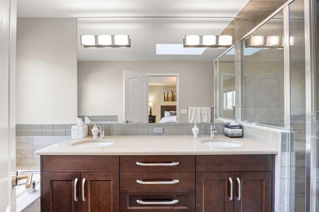 Upstairs offers 4 well-sized bedrooms, including a spacious Primary suite with walk-in closet and 5-piece ensuite that are newly renovated featuring double vanity, soaking tub, separate shower, and skylight. Three additional well sized Bedrooms and a 4-piece bath complete the upper level. All bathrooms feature quartz countertops.