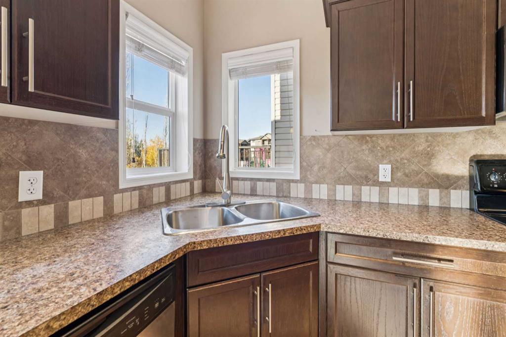 Welcome to 34 Kingsland Close! A bright and inviting, move-in ready, detached two-storey home, ideally situated just one door down from a playground and surrounded by a variety of Airdrie’s best outdoor amenities. Just steps from scenic walking and biking paths, tranquil ponds, the off-leash dog park, and the King’s Heights Elementary School. Spend your weekends exploring Chinook Winds Park with its splash park and sports fields, Sharp Hill Park’s rolling trails, or enjoying family recreation at Genesis Place. With over 1,955 sq. ft. of living space plus an 824 sq. ft. undeveloped walkout basement, this home offers space to grow and thrive in one of Airdrie’s most connected, family-friendly neighbourhoods. Plus, you’re only minutes from Highway 2 for an easy commute or quick trips into Calgary. The sun-filled south-facing backyard is fully fenced and beautifully landscaped with mature fruit trees that create your own private retreat. All the decks and patios have been recently refinished and are ready to be enjoyed! Inside, you’ll find a thoughtful layout designed for modern living featuring brand-new carpet, three spacious bedrooms, and 2.5 bathrooms. The main floor includes a spacious foyer, a large living room, and a separate dining area that could also function as a home office or playroom. The breakfast nook overlooks the beautifully treed yard, while separating the space between the kitchen and main living room. Upstairs, you will find a clever built-in desk adjacent to the large family room perfectly suited for a fun movie room or play area for little ones. The primary bedroom and ensuite are separated from the main hallway by a conveniently placed laundry room and large storage closet. Tucked away from the family room and primary, are two well-sized bedrooms that share a 4-piece ensuite. The undeveloped walkout basement offers endless potential for a future recreation room, guest suite, or home gym, while the front-attached double garage adds everyday convenience. Move-in ready with immediate possession available, come see why Kings Heights continues to be one of Airdrie’s most sought-after neighbourhoods. This is a home that’s ready to welcome its next chapter.