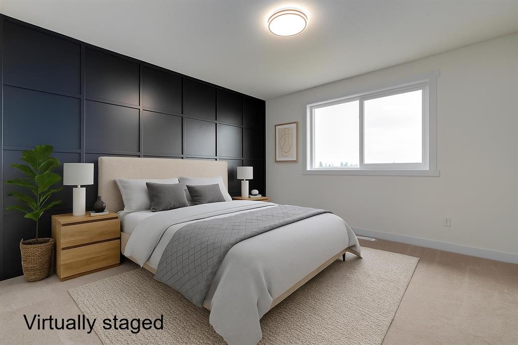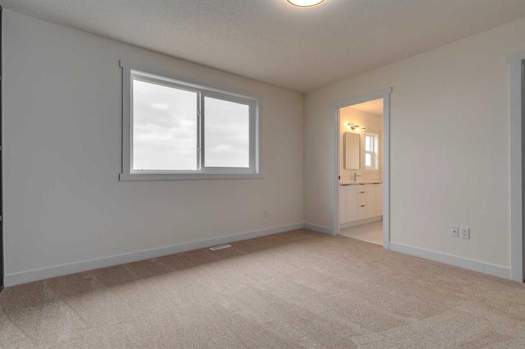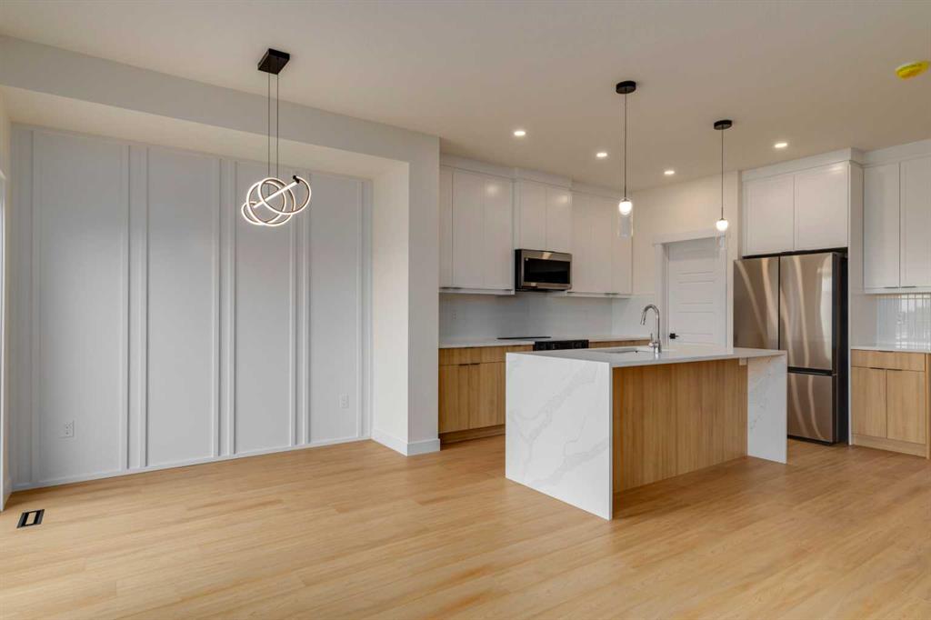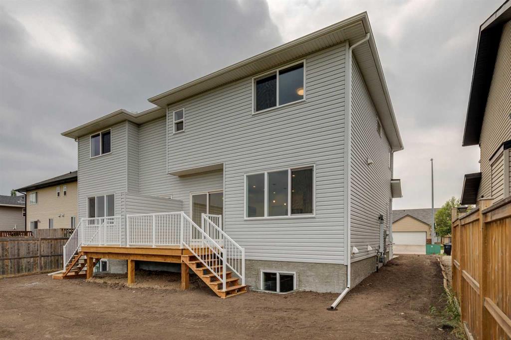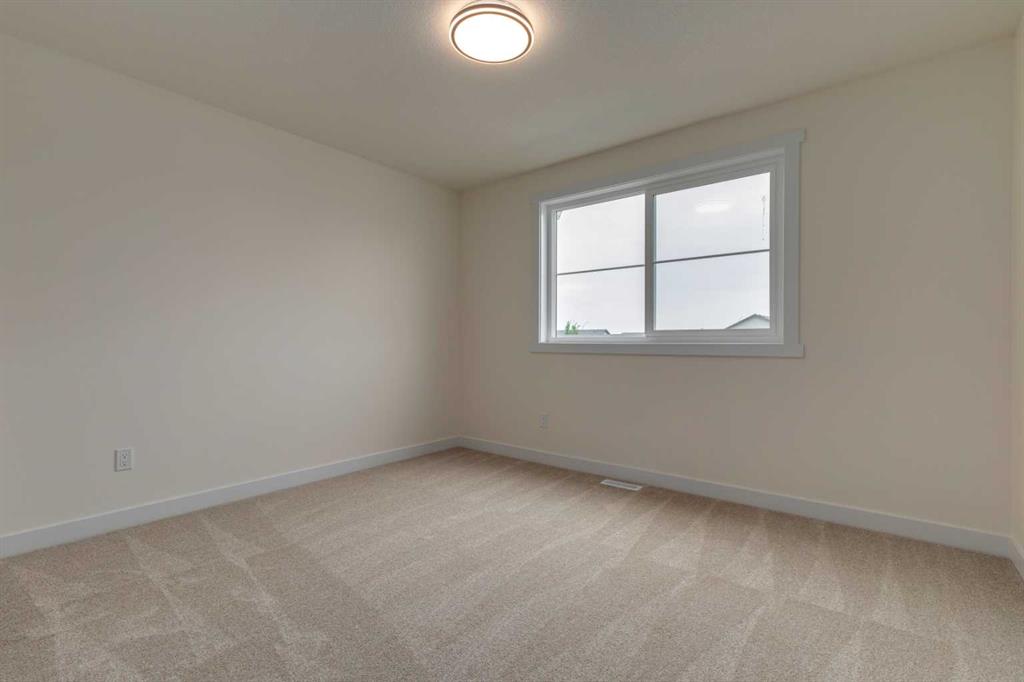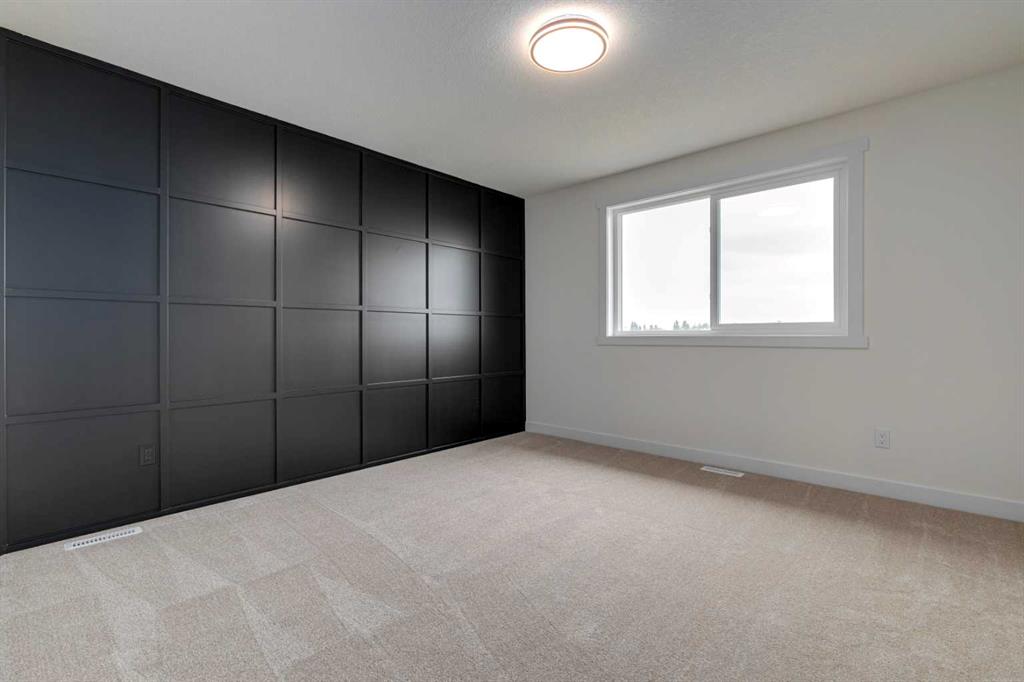 Welcome to this stunning newly built ½ duplex in the peaceful and growing town of Didsbury, where small-town charm meets modern living. Your new home was expertly constructed by Trailmark Homes, thoughtfully designed with no expense spared! This home is packed with high-end finishes, unique architectural touches, and smart construction upgrades that make it a standout in its class. Step inside and you’ll immediately notice the attention to detail. The main floor features beautiful 6.5mm luxury vinyl plank flooring, sleek black accents, spindle railing, and a wood feature wall in the dining area that adds warmth and character. The living room offers an inviting space with a striking electric linear fireplace surrounded by full-height tile. The spacious powder room includes a full vanity—an elevated and rare touch in similar homes. The designer kitchen is truly impressive, boasting quartz countertops with dramatic waterfall edges on the island, a stylish two-tone cabinet design with painted MDF uppers and melamine lowers, full-height cabinets, soft-close drawers and doors, and a massive walk-in pantry. High-end Samsung Bespoke AI Home appliances make this space as functional as it is beautiful. Upstairs, you’ll find three generously sized bedrooms. The primary suite includes a bold black wood feature wall, a large walk-in closet, and a luxurious ensuite with an oversized shower, dual vanities, and anti-fog, LED-lit multifunction mirrors. The additional two bedrooms are bright and well-sized, and the upper floor also features a full main bathroom and a convenient laundry area with Samsung Bespoke washer and dryer included. The basement is undeveloped and offers excellent potential for a future legal suite (subject to town approval). It includes a private side entrance, rough-ins for a bathroom and kitchenette, and full-span floor joists—meaning there are no posts, allowing for an open and functional layout when finished. This home also includes an Ecobee smart thermostat, upgraded carpet and underlay, Moen faucets throughout, and a driveway constructed with fiberglass rebar to help reduce the chance of cracking. The backyard is spacious and backs onto the high school field, offering a peaceful view and extra privacy. A back deck is already built and includes a gas line, you also get a $500 landscaping credit. The home is also covered by full new home warranty for added peace of mind. Located just 40 minutes north of Calgary, Didsbury is a welcoming and well-serviced community offering schools, shopping, parks, medical facilities, and a golf course—all with the feel of a close-knit town. Whether you’re a first-time buyer, investor, or looking for a stylish new home with future suite potential (subject to town approval), this property offers unmatched value, functionality, and style. Don’t miss your chance to own a thoughtfully built, beautifully finished new home in one of Alberta’s most charming small towns. Book your private showing today!