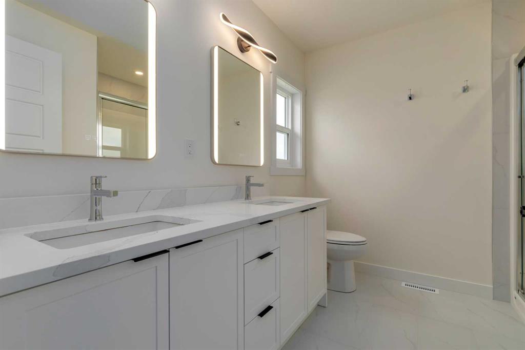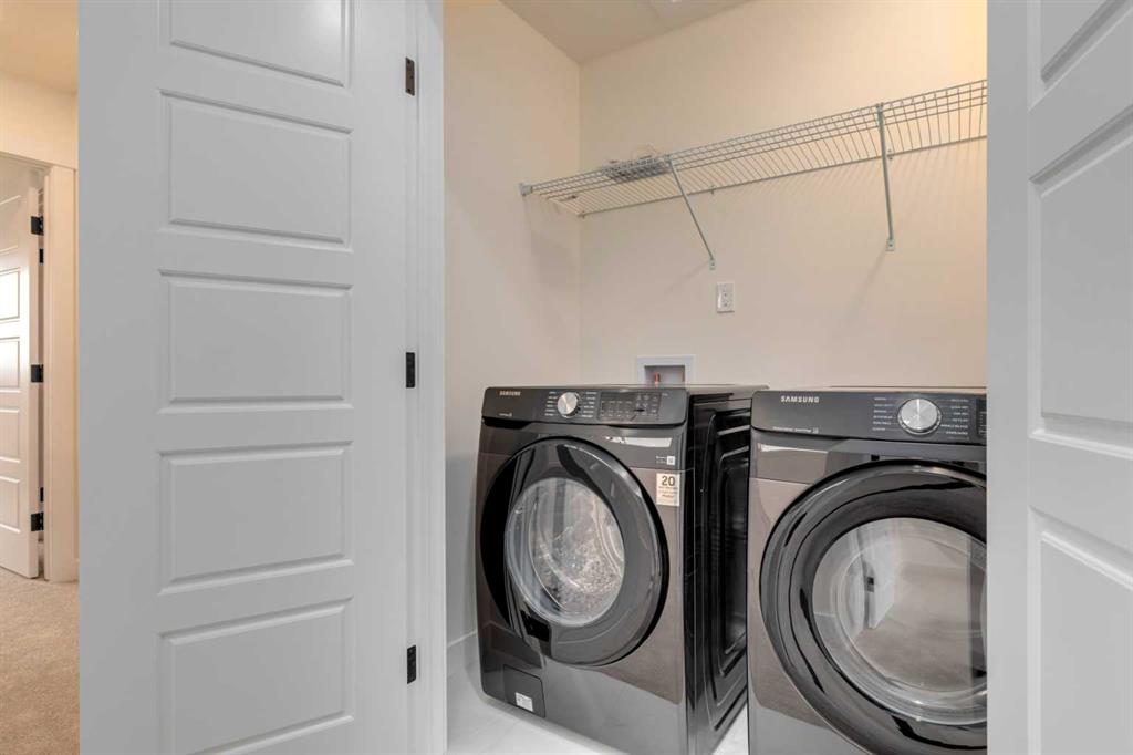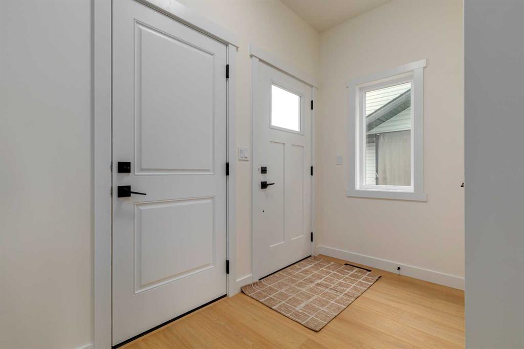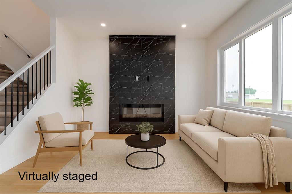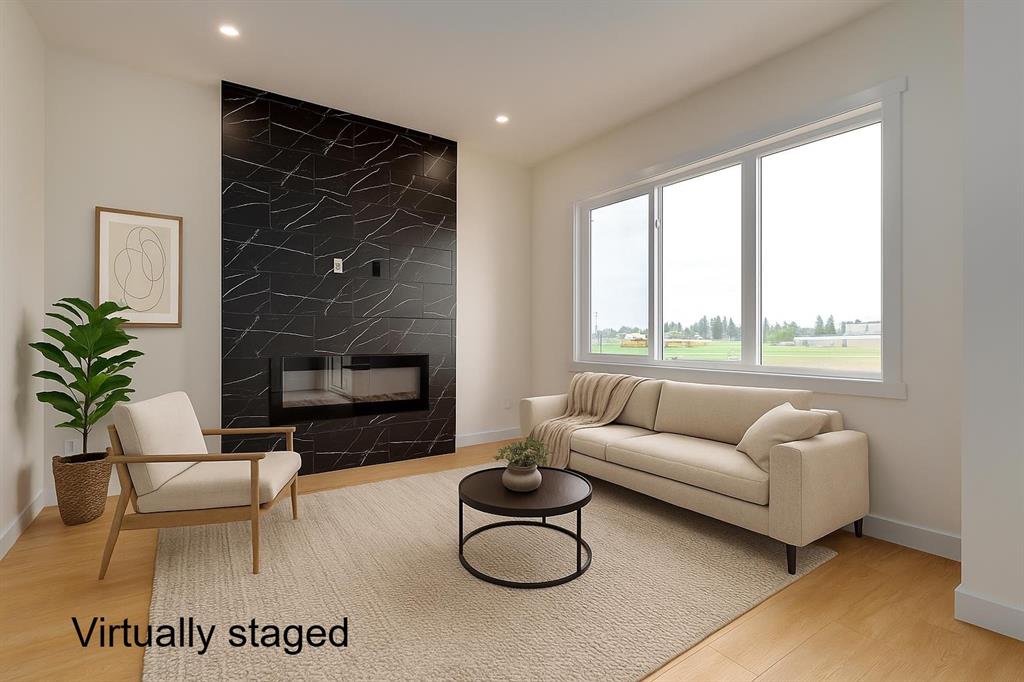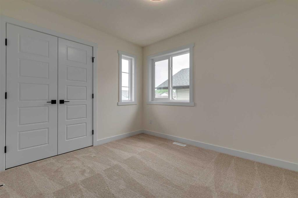 Welcome to this stunning newly built ½ duplex in the peaceful and growing town of Didsbury, where small-town charm meets modern living. Your new home was expertly constructed by Trailmark Homes, thoughtfully designed with no expense spared! This home is packed with high-end finishes, unique architectural touches, and smart construction upgrades that make it a standout in its class. Step inside and you’ll immediately notice the attention to detail. The main floor features beautiful 6.5mm luxury vinyl plank flooring, sleek black accents, spindle railing, and a wood feature wall in the dining area that adds warmth and character. The living room offers an inviting space with a striking electric linear fireplace surrounded by full-height tile. The spacious powder room includes a full vanity—an elevated and rare touch in similar homes. The designer kitchen is truly impressive, boasting quartz countertops with dramatic waterfall edges on the island, a stylish two-tone cabinet design with painted MDF uppers and melamine lowers, full-height cabinets, soft-close drawers and doors, and a massive walk-in pantry. High-end Samsung Bespoke AI Home appliances make this space as functional as it is beautiful. Upstairs, you’ll find three generously sized bedrooms. The primary suite includes a bold black wood feature wall, a large walk-in closet, and a luxurious ensuite with an oversized shower, dual vanities, and anti-fog, LED-lit multifunction mirrors. The additional two bedrooms are bright and well-sized, and the upper floor also features a full main bathroom and a convenient laundry area with Samsung Bespoke washer and dryer included. The basement is undeveloped and offers excellent potential for a future legal suite (subject to town approval). It includes a private side entrance, rough-ins for a bathroom and kitchenette, and full-span floor joists—meaning there are no posts, allowing for an open and functional layout when finished. This home also includes an Ecobee smart thermostat, upgraded carpet and underlay, Moen faucets throughout, and a driveway constructed with fiberglass rebar to help reduce the chance of cracking. The backyard is spacious and backs onto the high school field, offering a peaceful view and extra privacy. A back deck is already built and includes a gas line, you also get a $500 landscaping credit. The home is also covered by full new home warranty for added peace of mind. Located just 40 minutes north of Calgary, Didsbury is a welcoming and well-serviced community offering schools, shopping, parks, medical facilities, and a golf course—all with the feel of a close-knit town. Whether you’re a first-time buyer, investor, or looking for a stylish new home with future suite potential (subject to town approval), this property offers unmatched value, functionality, and style. Don’t miss your chance to own a thoughtfully built, beautifully finished new home in one of Alberta’s most charming small towns. Book your private showing today!