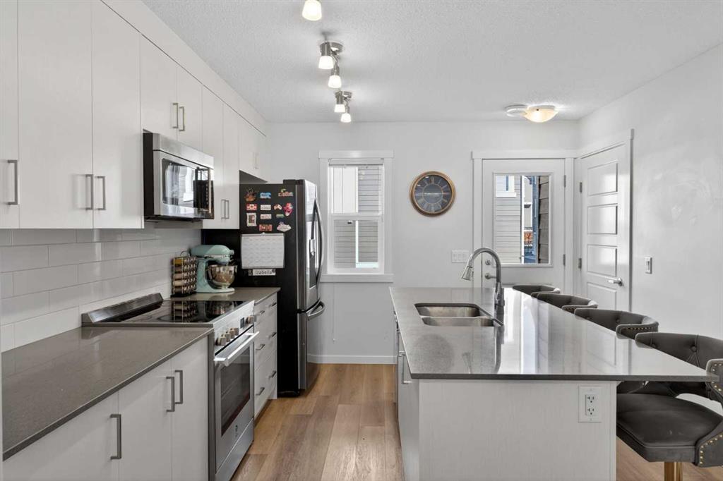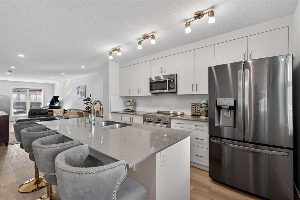 **Open House Sunday April 24th 12-3PM** Welcome to Riverstone in Cranston, where nature, lifestyle, and thoughtful design come together in one of Calgary’s most beautiful and sought-after communities. This stunning three-storey executive townhome offers 1,500+ sq. ft. of stylish living space & stands out with features that are truly hard to find in townhome living, including a separate fenced yard, low condo fees, and an exceptional third-level bonus room with rooftop deck. Located in the highly desirable lower portion of Cranston, just moments from the Bow River, scenic walking paths, parks, and playgrounds, this is a home that offers so much more than just great square footage, it offers a lifestyle. Riverstone is beloved for its peaceful setting, easy access to nature, and incredible outdoor amenities, making it a perfect fit for buyers who want both convenience and connection to the outdoors. Inside, the main floor is bright, open, and welcoming, designed for both everyday living and entertaining. The spacious living and dining areas flow seamlessly into the beautifully appointed kitchen, where a massive quartz island with breakfast bar becomes the natural gathering place for family and guests alike. Timeless white cabinetry, classic subway tile, stainless steel appliances, and direct access out to your own private backyard make this kitchen as functional as it is attractive—perfect for everything from daily routines to summer BBQs and easy indoor-outdoor living. Upstairs on the second level, you’ll find two generous bedrooms, including a spacious primary retreat that easily fits a king-sized bed and features its own private 3-piece ensuite. The second bedroom is equally well-sized and filled with natural morning light, while a full 4-piece bathroom located just outside the bedroom adds comfort and convenience for family members or guests. What truly sets this home apart, however, is the incredible third-floor bonus room—a rare and versatile space seldom found in townhomes. Whether you envision a home office, media room, fitness area, guest retreat, playroom, or creative studio, this upper-level flex space offers endless possibilities. Even better, it opens onto your private rooftop deck, creating the perfect spot to enjoy morning coffee, unwind in the evening, or soak in the fresh air above it all. This combination of bonus room plus rooftop outdoor space is an absolute standout. Another rare feature is the separate fenced yard—ideal for a dog owner, young family, or anyone who appreciates having a private outdoor area for BBQs, relaxing in the sun, or enjoying a bit of extra space that many townhomes simply do not offer. With sunny west exposure, this yard is a true extension of the home. Also included is a designated parking stall conveniently located just steps from the front door. You’ll also enjoy access to Century Hall and all of Cranston’s exceptional amenities, including skating, hockey, tennis courts, a splash park, skate park, gymnasium, and more.